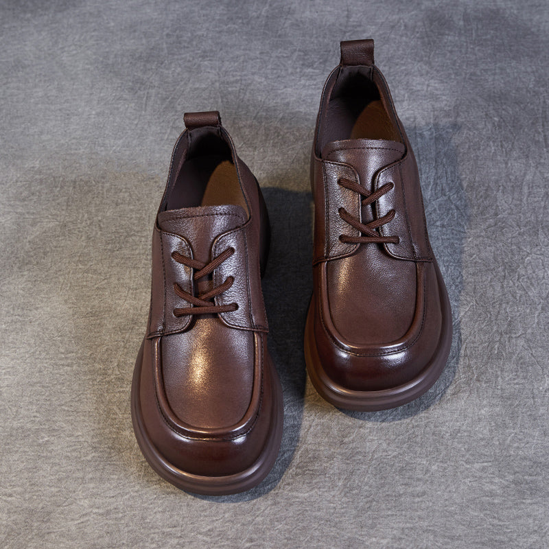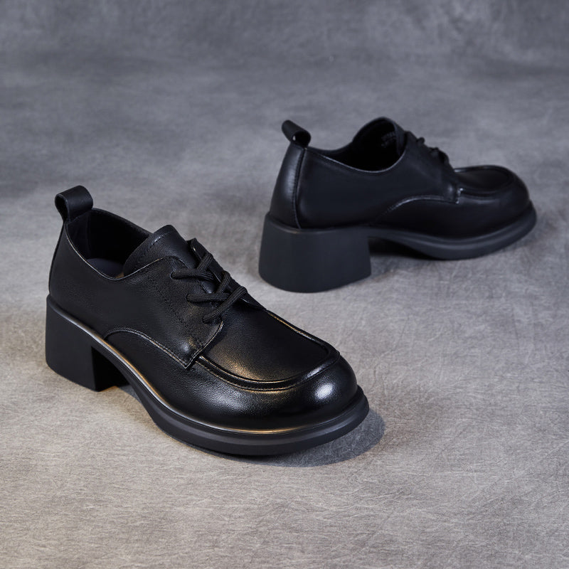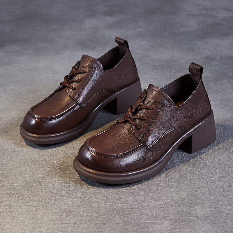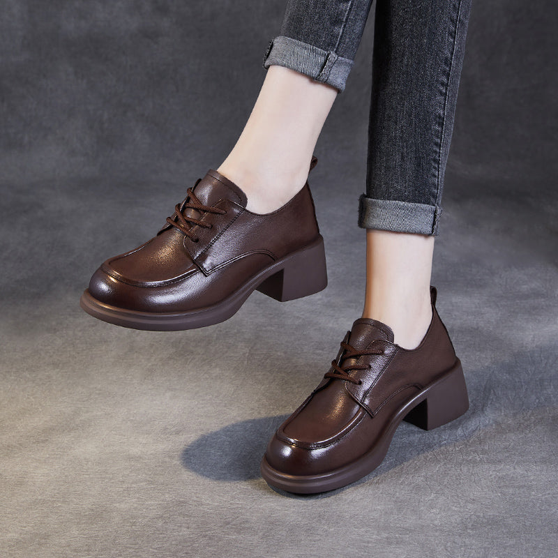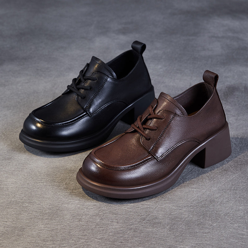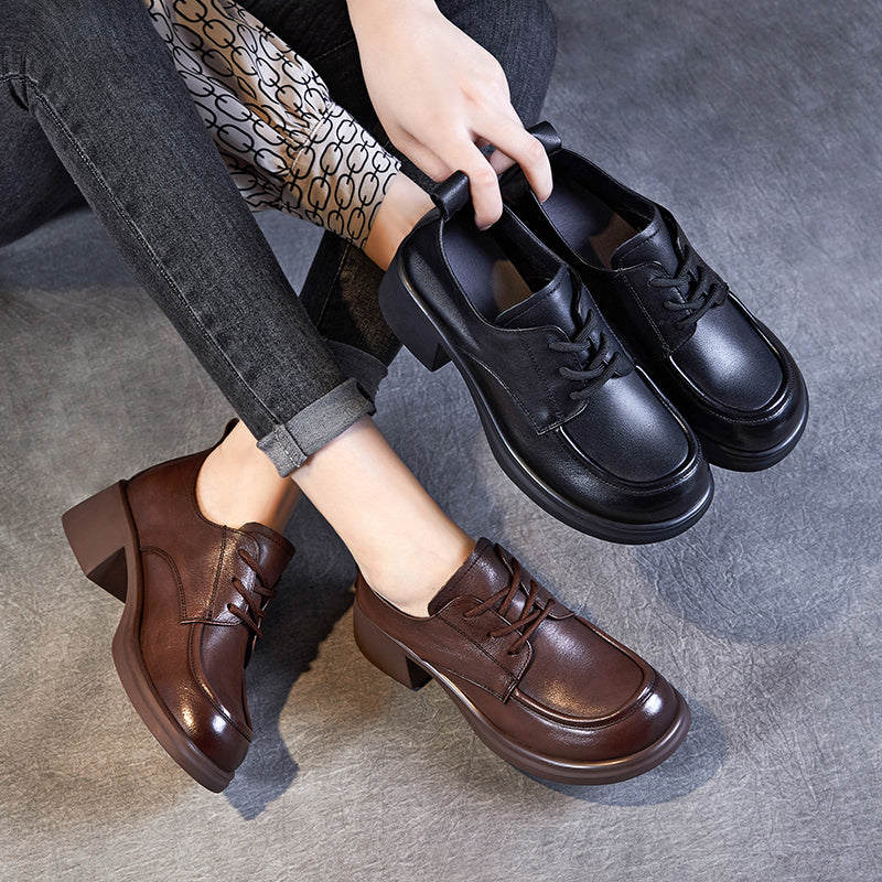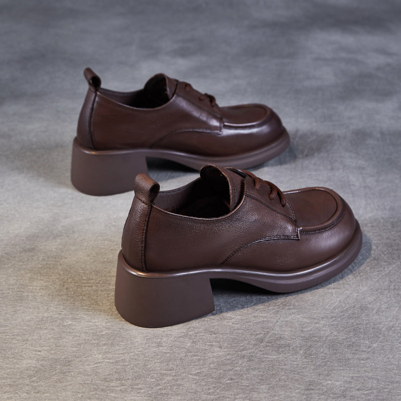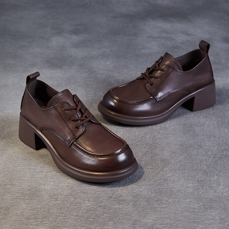 Women's Leather Comfortable Low Heel Block Oxford Shoes