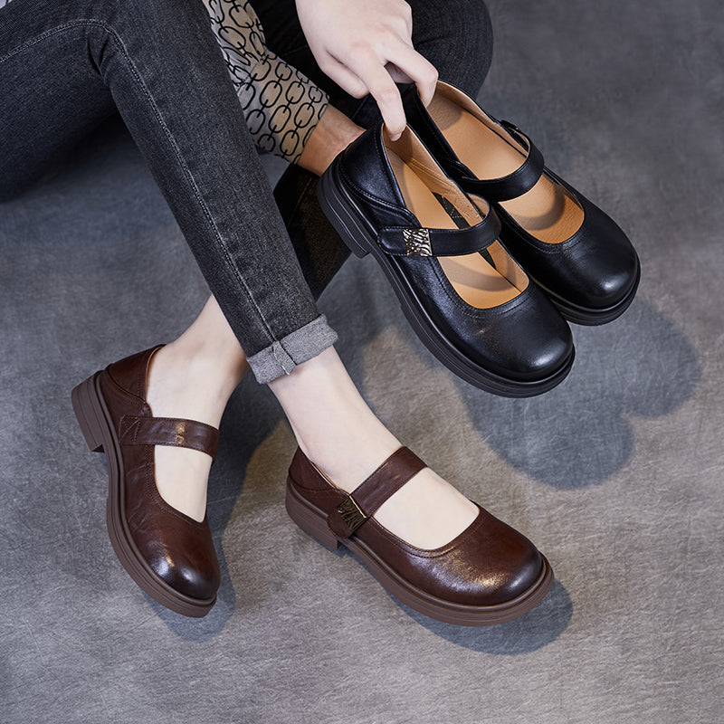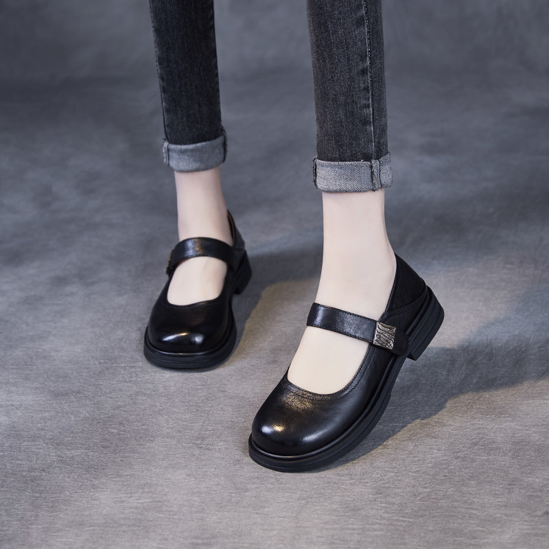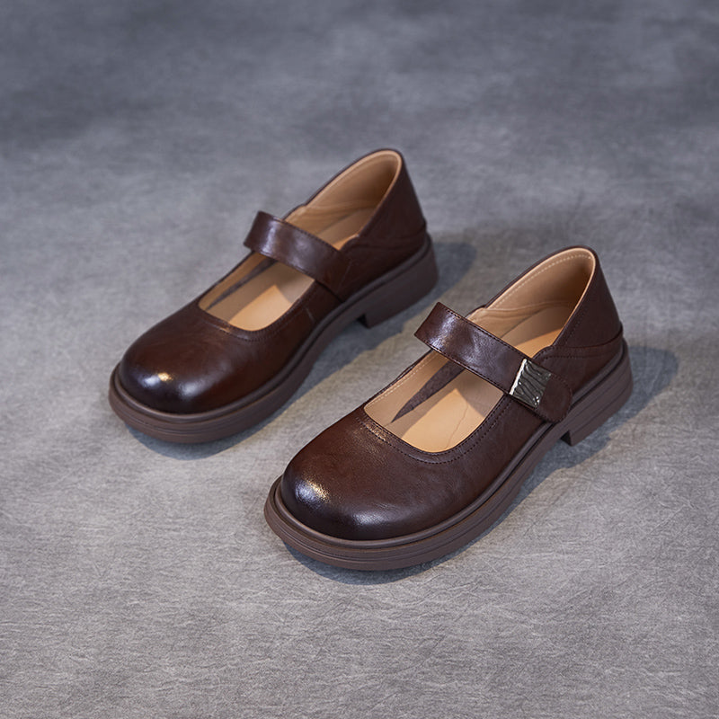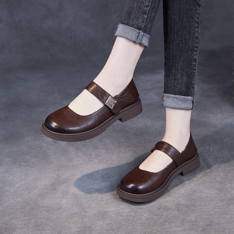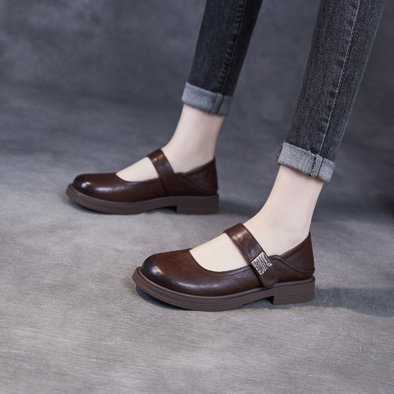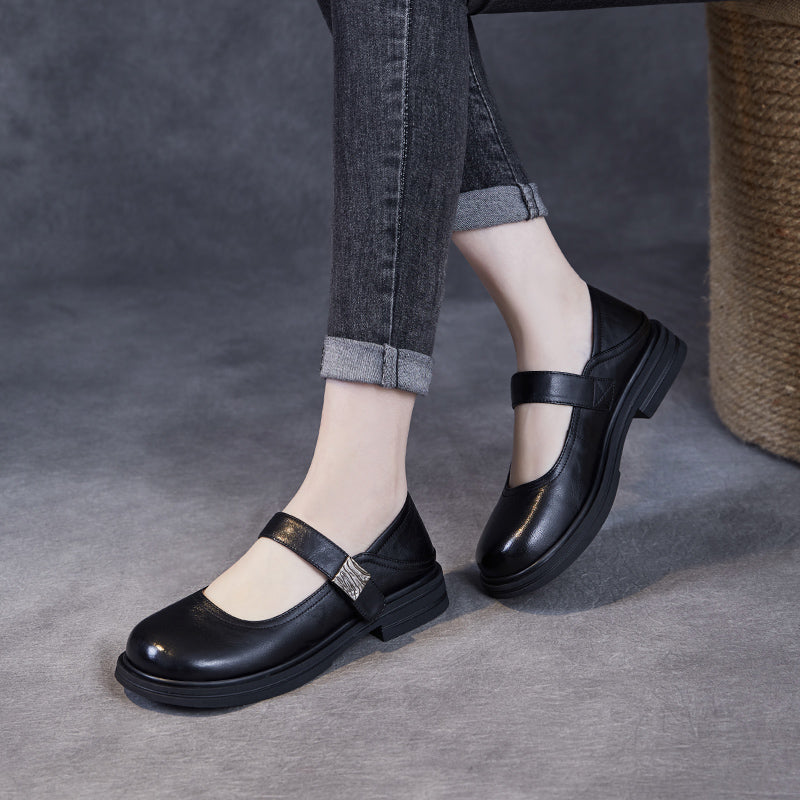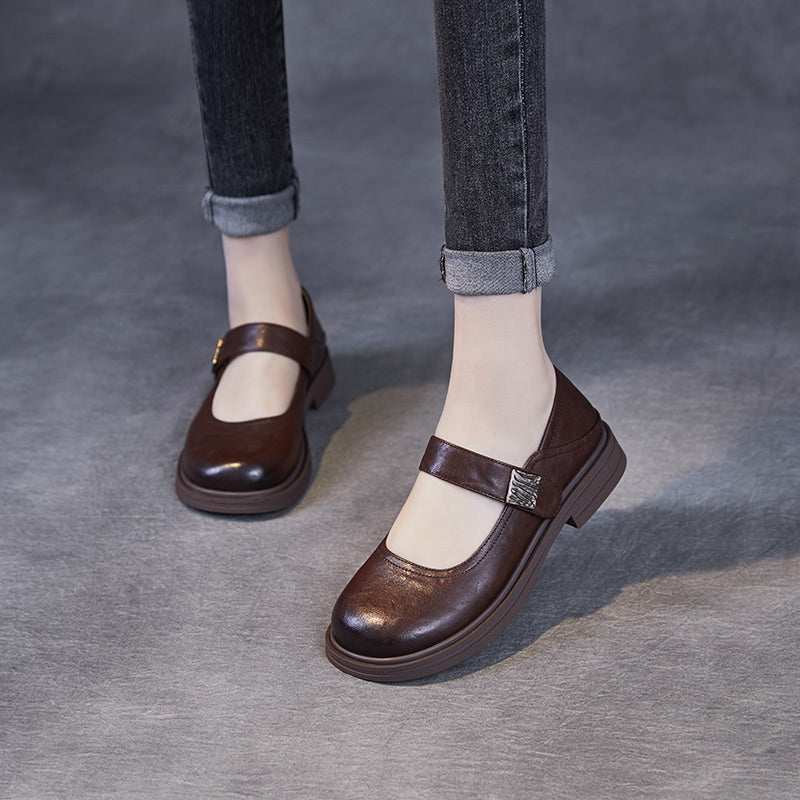 Women's Leather Comfortable Low Heel Mary Jane Shoes