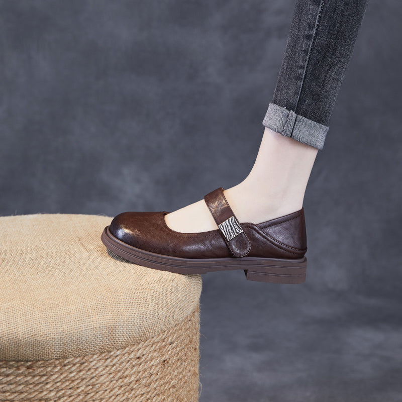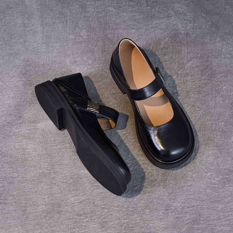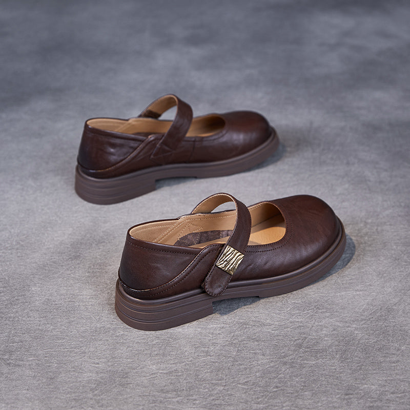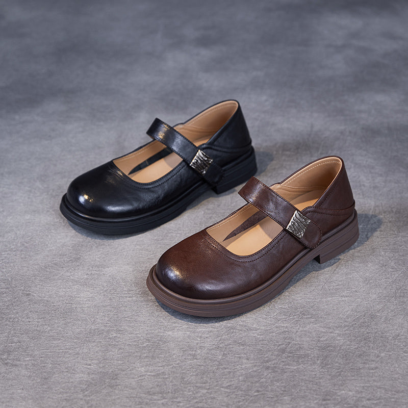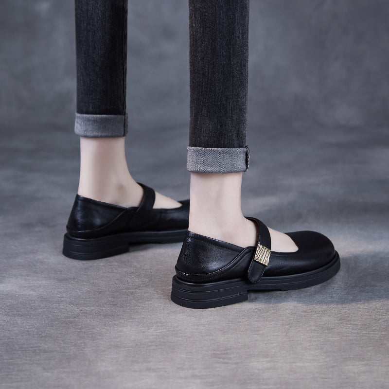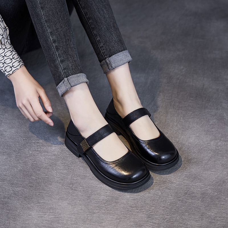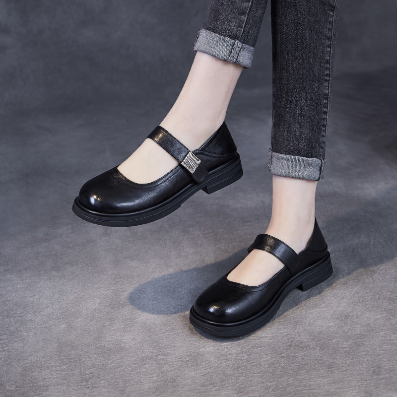 Women's Leather Comfortable Low Heel Mary Jane Shoes