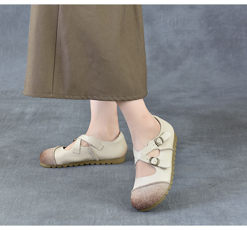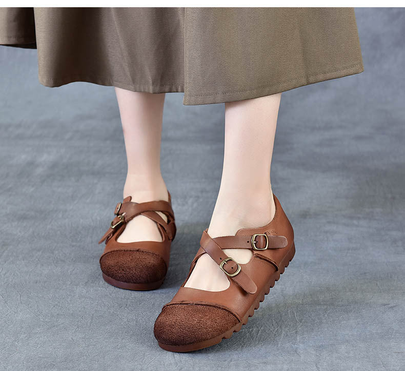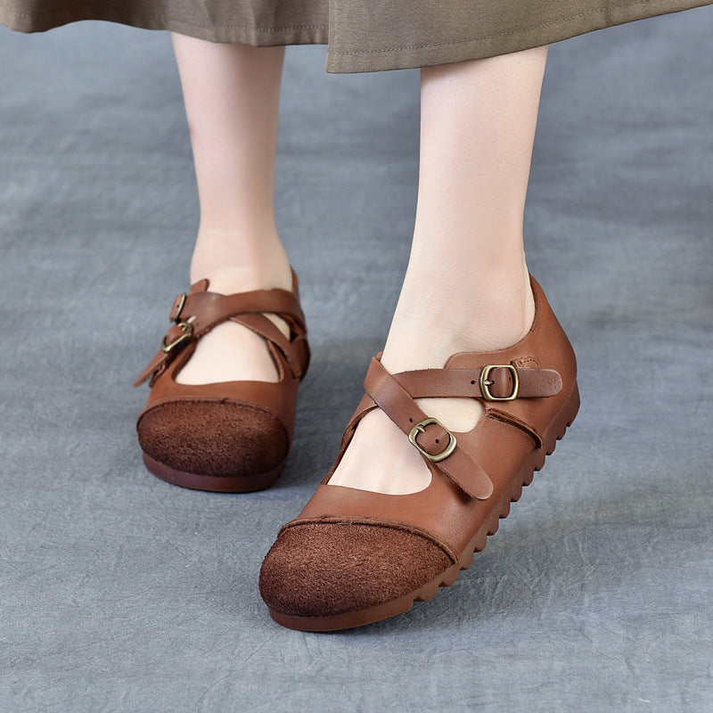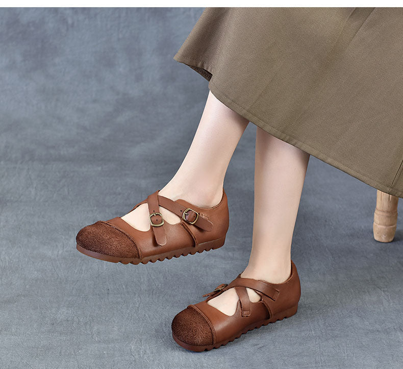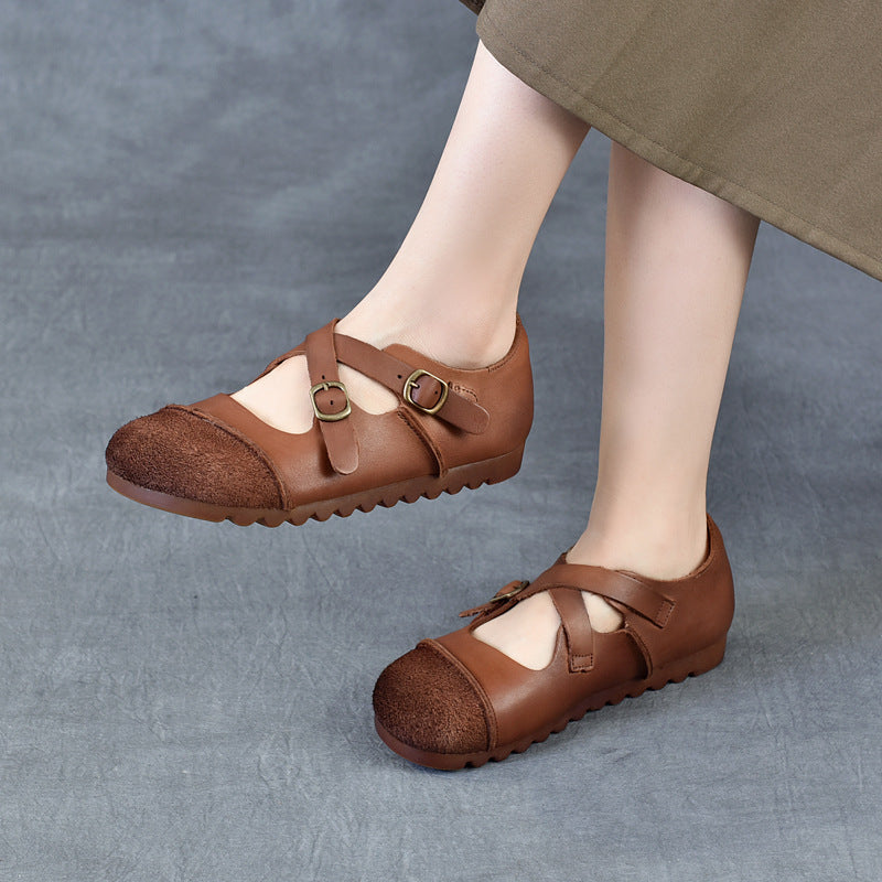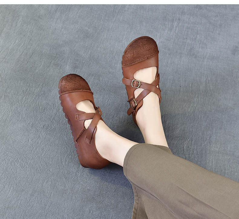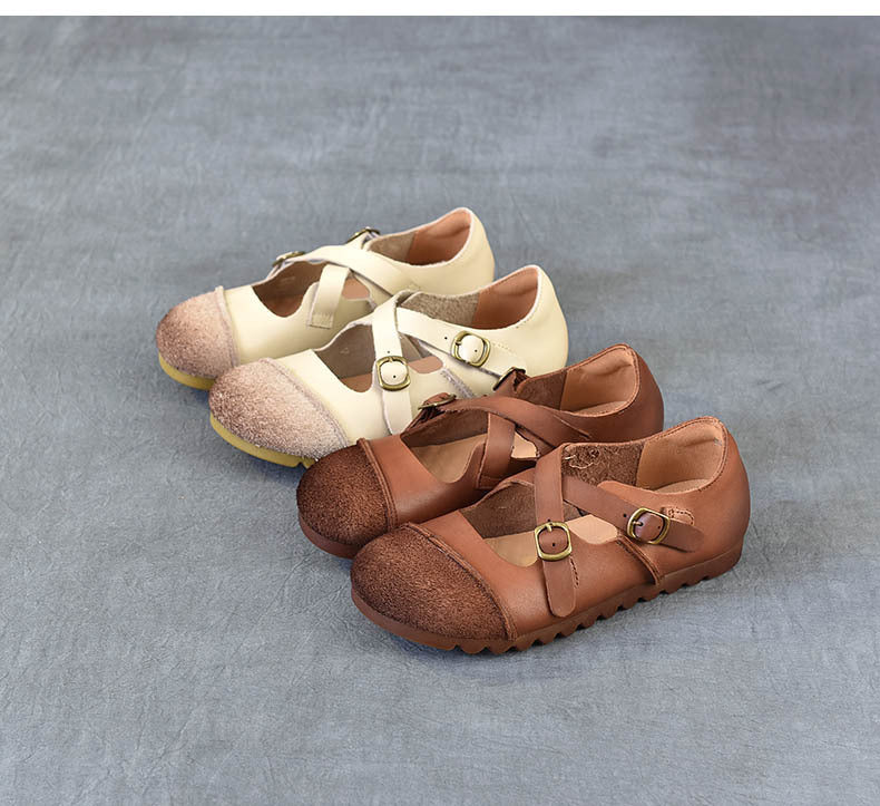 Women's Leather Cintage Patchwork Flat Cross Strap Casual Shoes