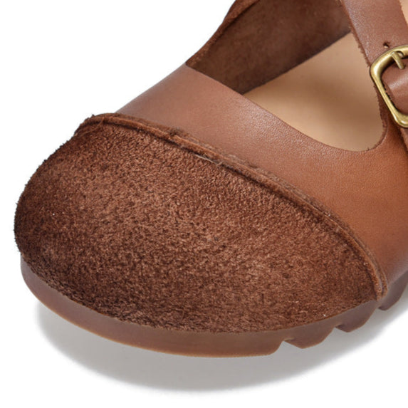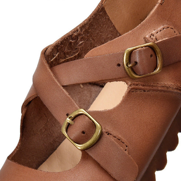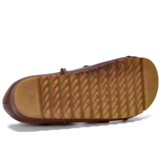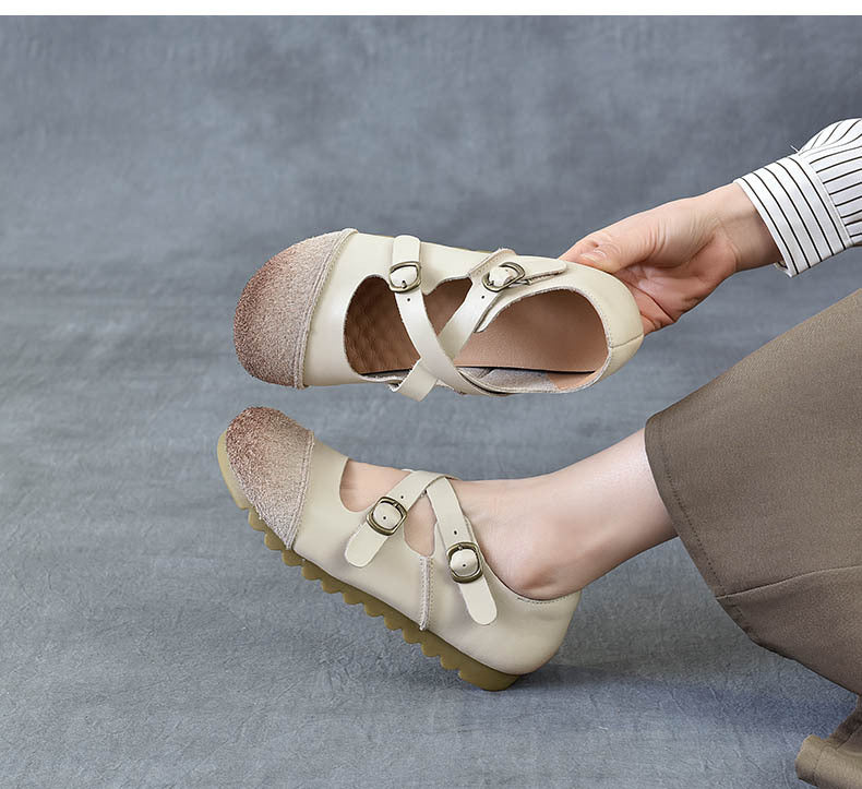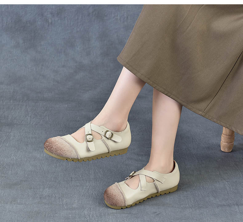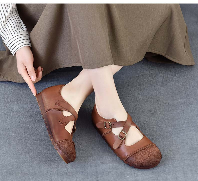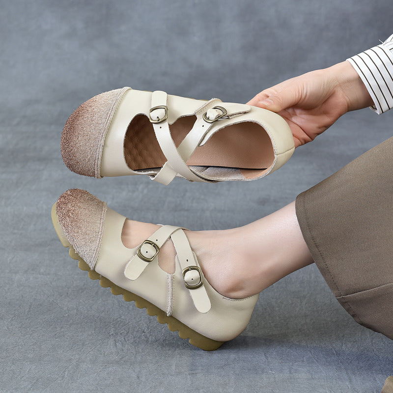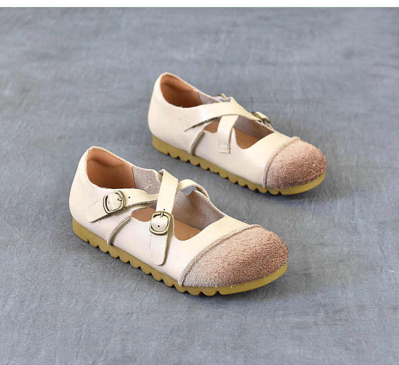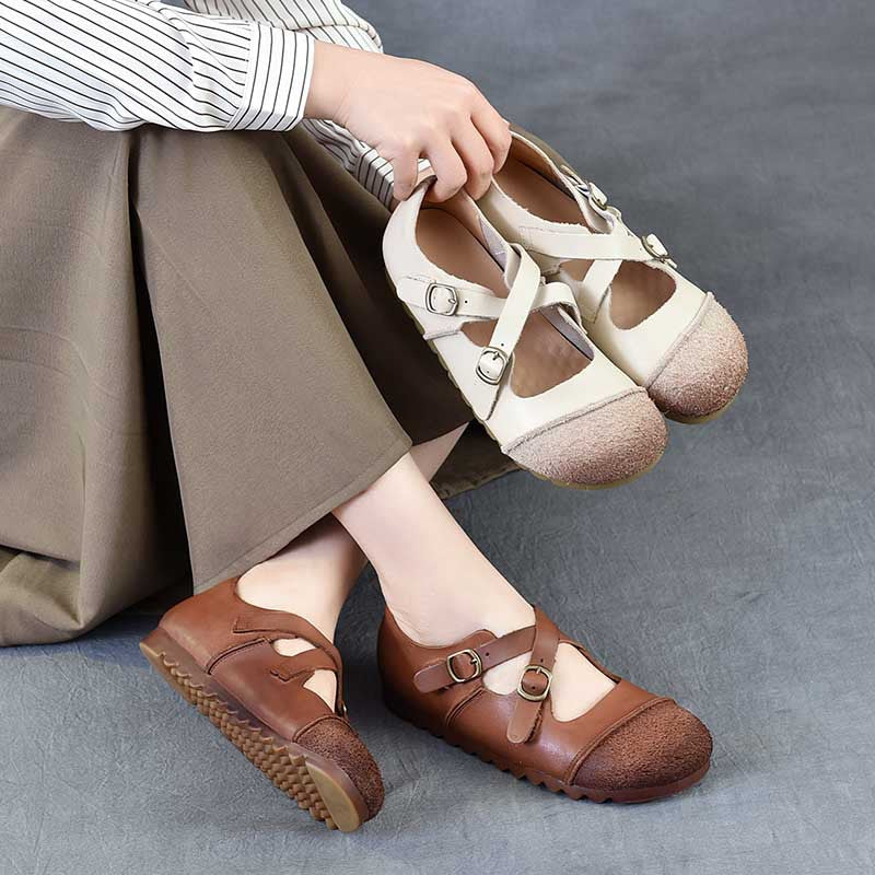 Women's Leather Cintage Patchwork Flat Cross Strap Casual Shoes