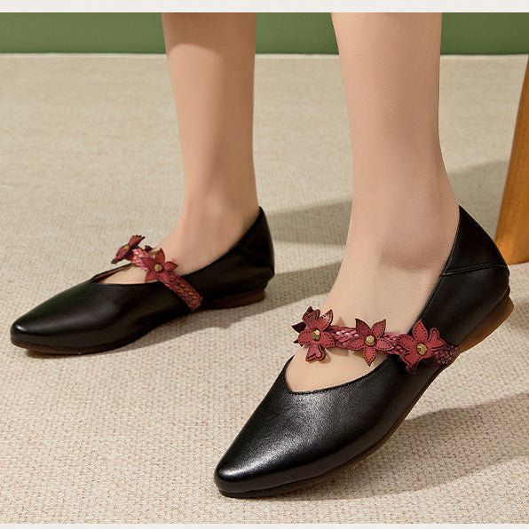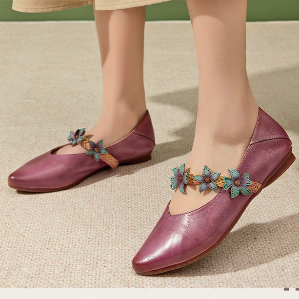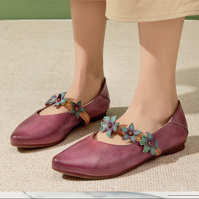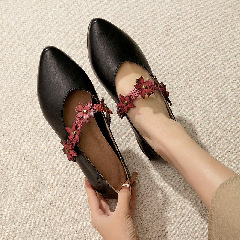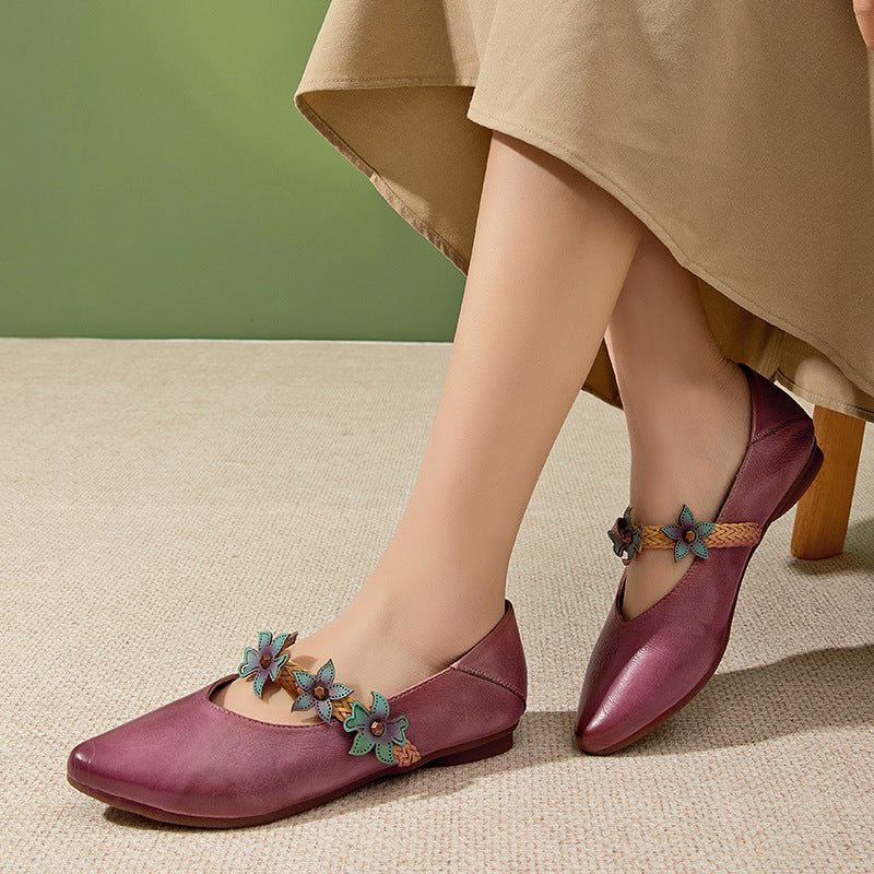 Women's Leather Handmade Forest Fairy Flower Collection Mary Jane Shoes