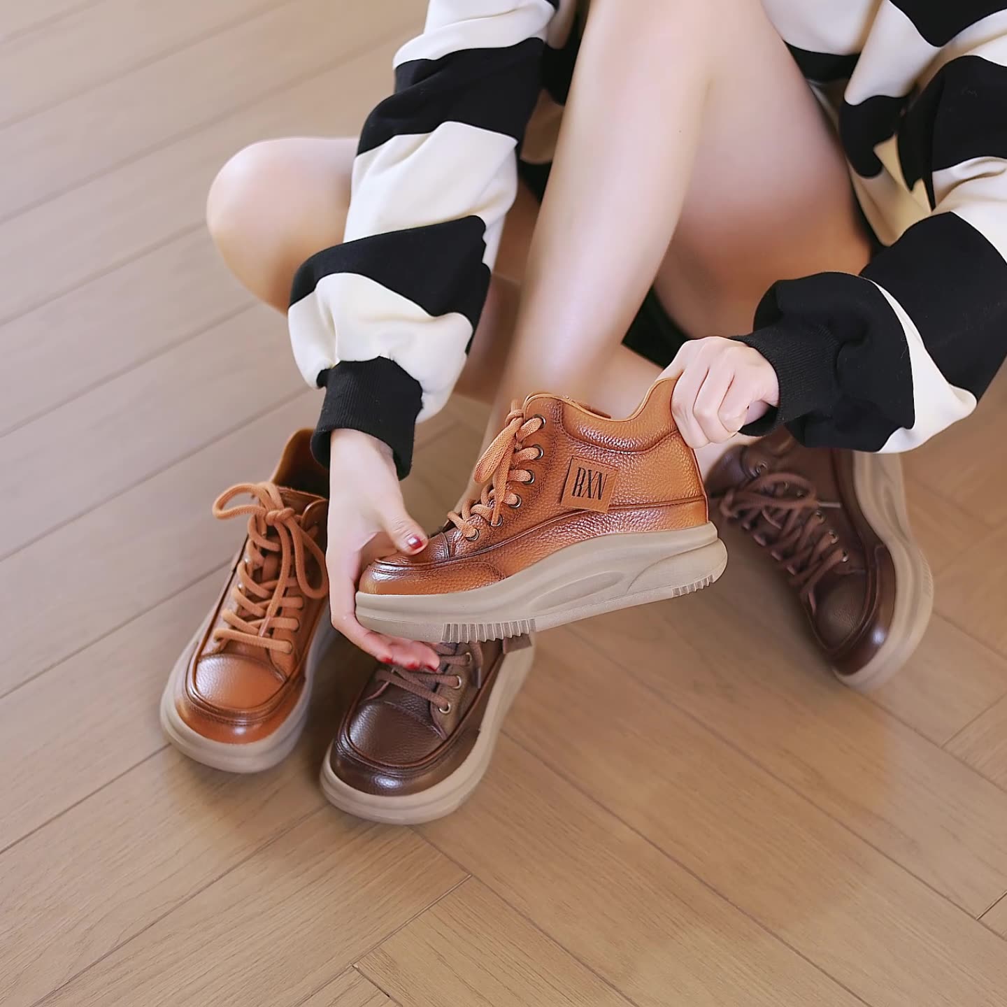 # Shoes are stored in dark, ventilated and dry places and avoid stacking with other leather products.