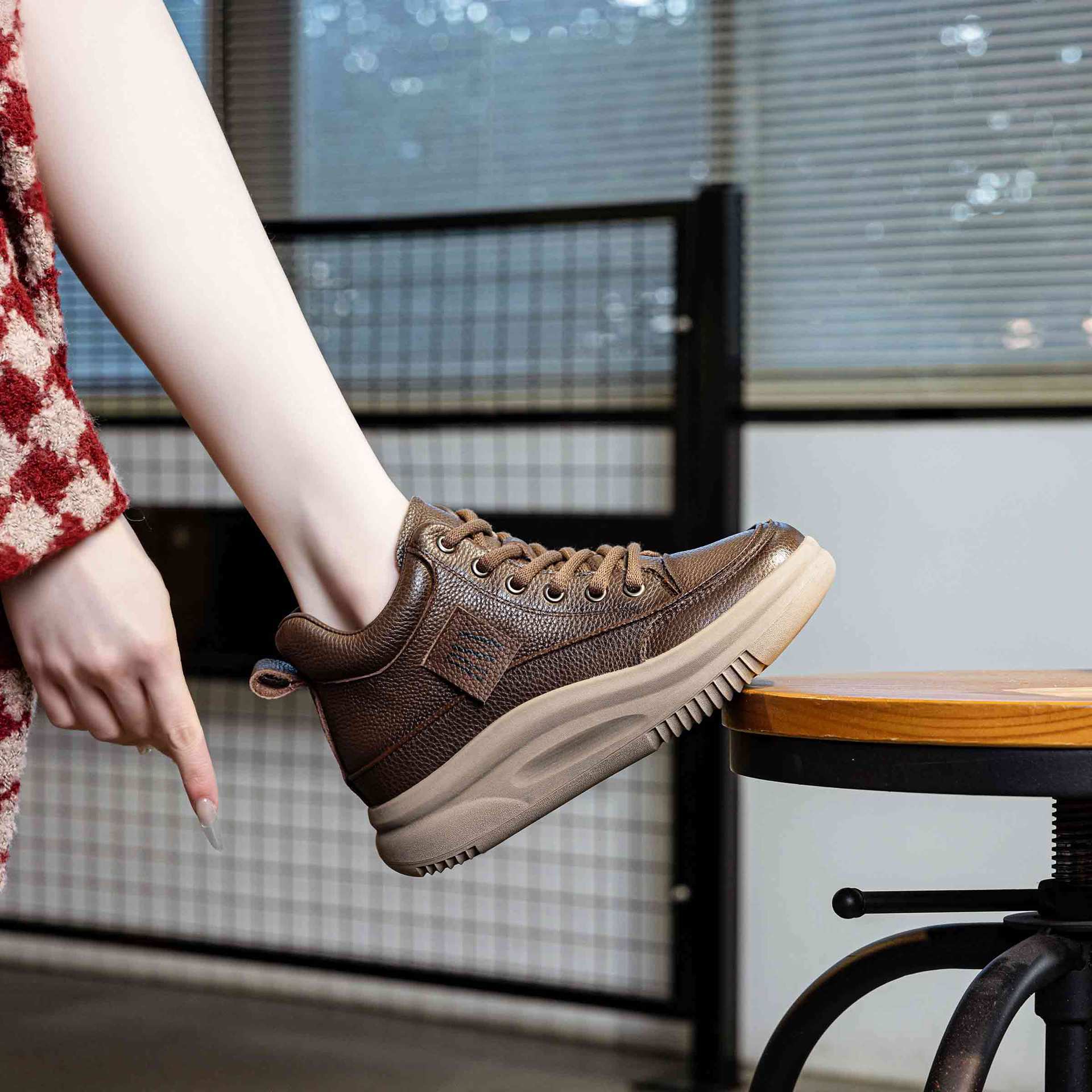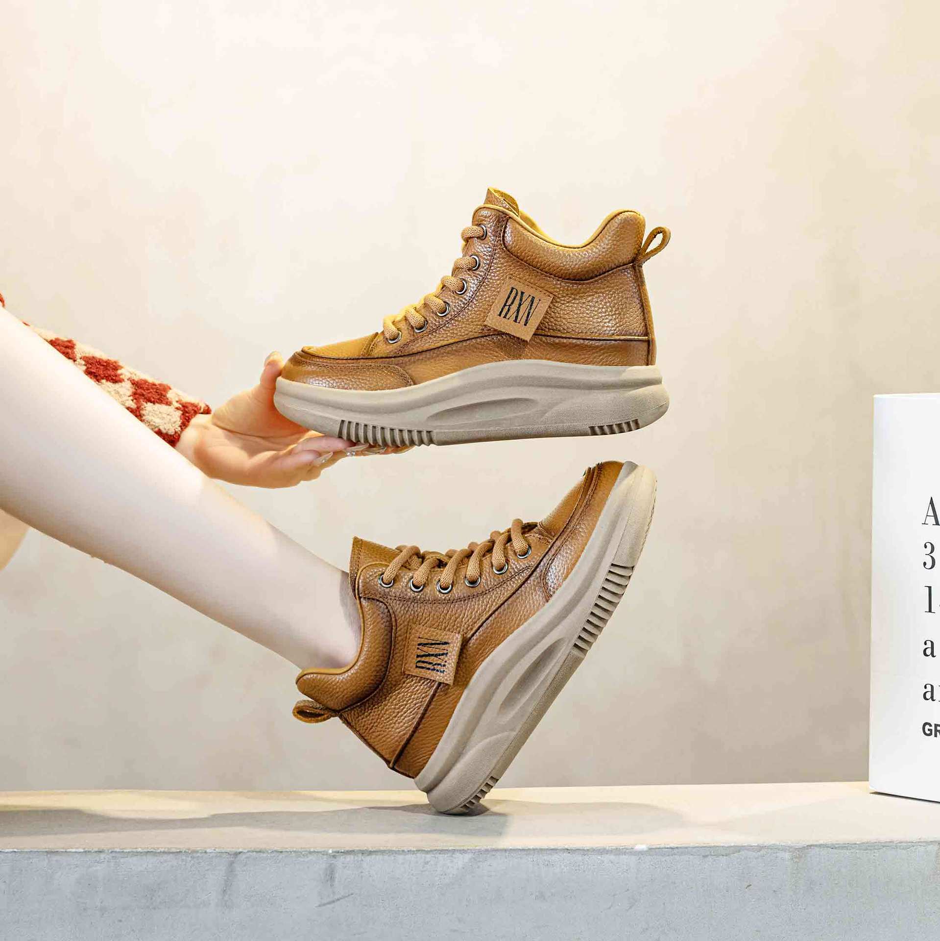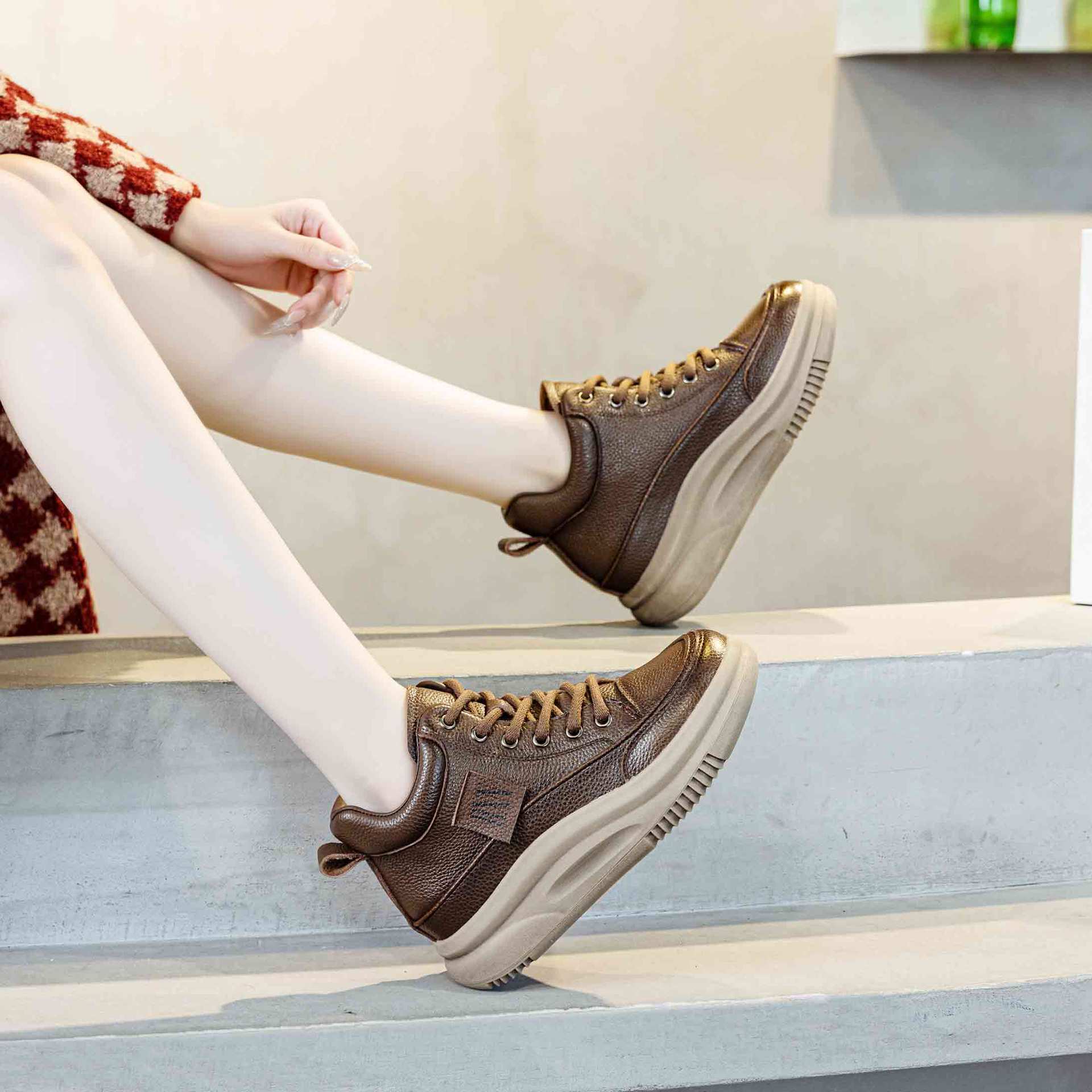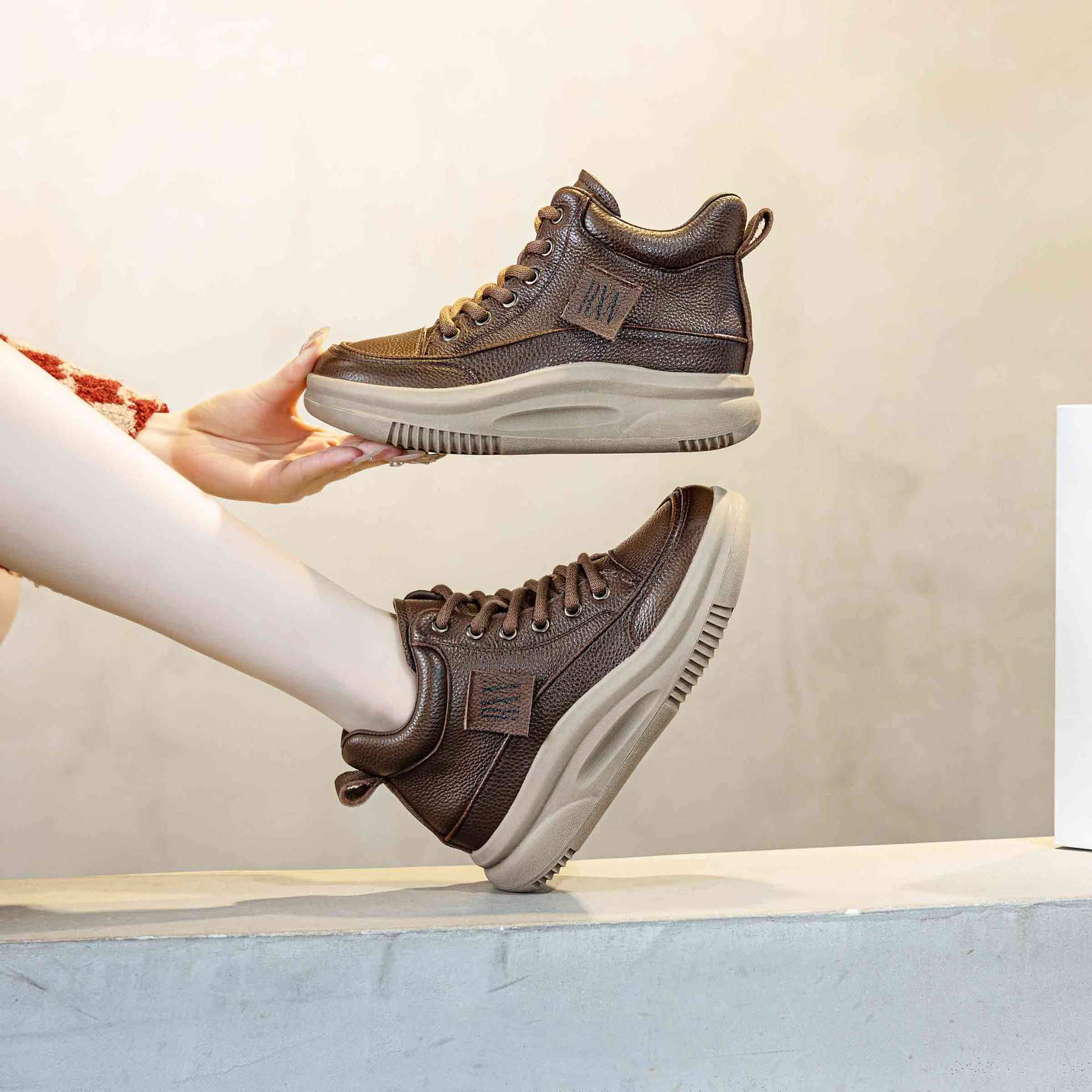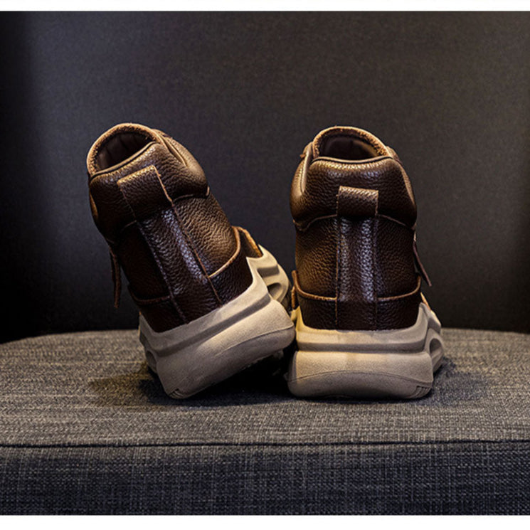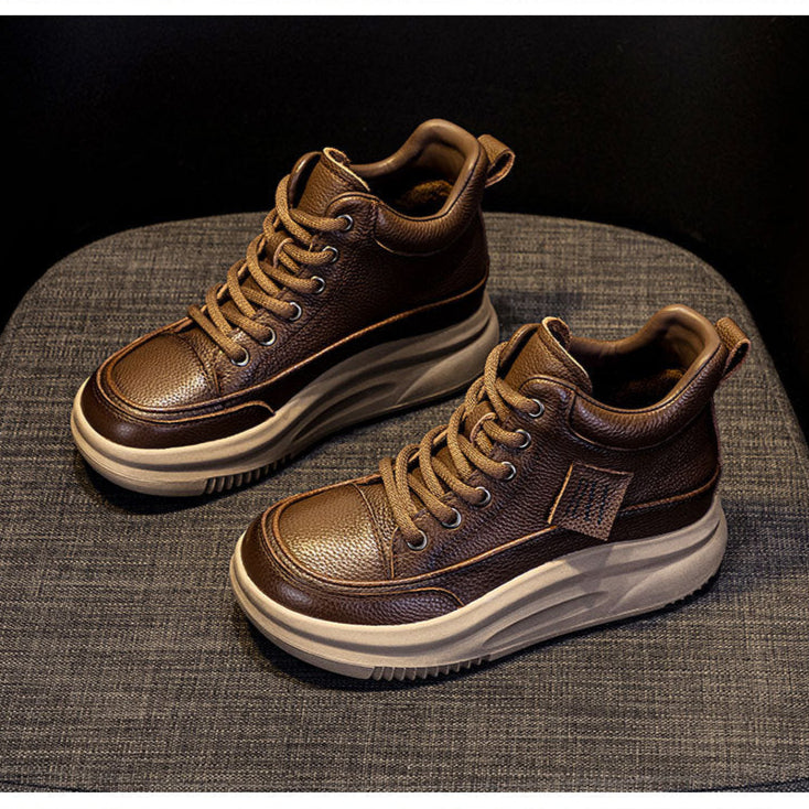 Women's Leather Lace-up Casual Platform Walking Shoes High-top Sneakers