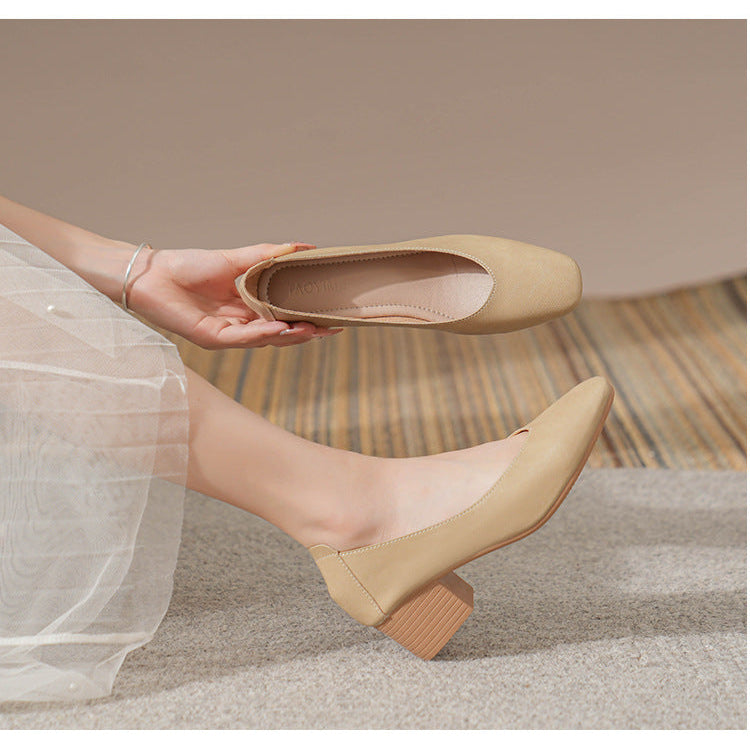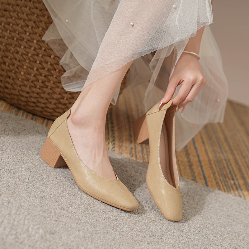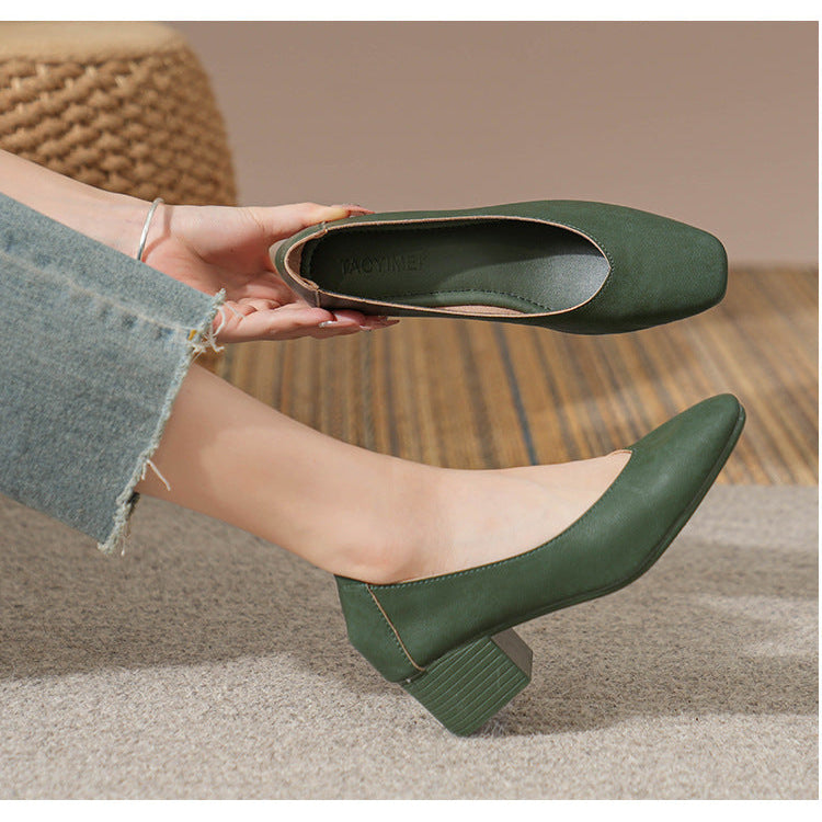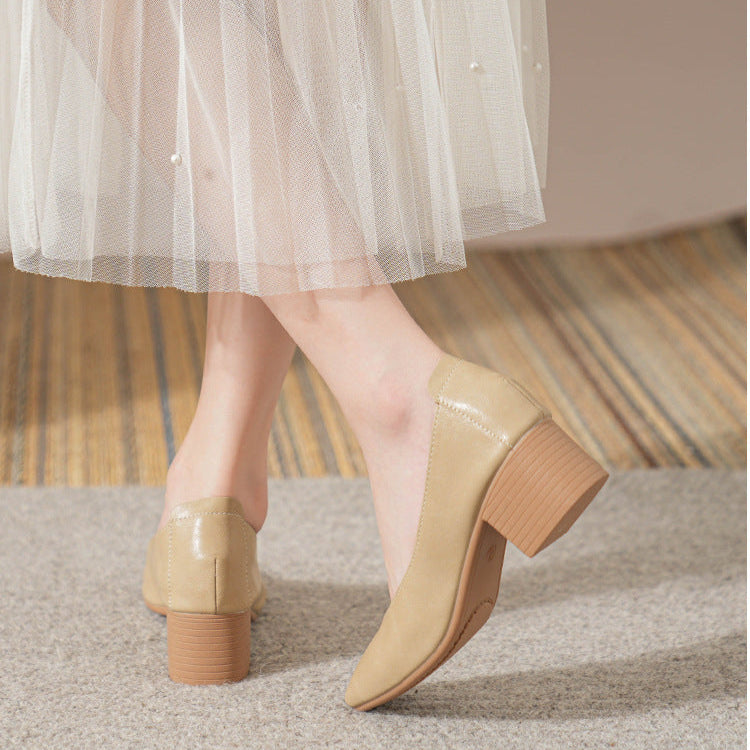 Women's Leather Mid Heel Multicolor Slip On Comfortable Glove Shoes