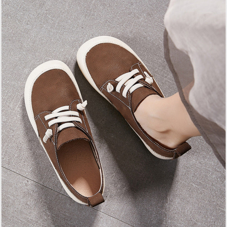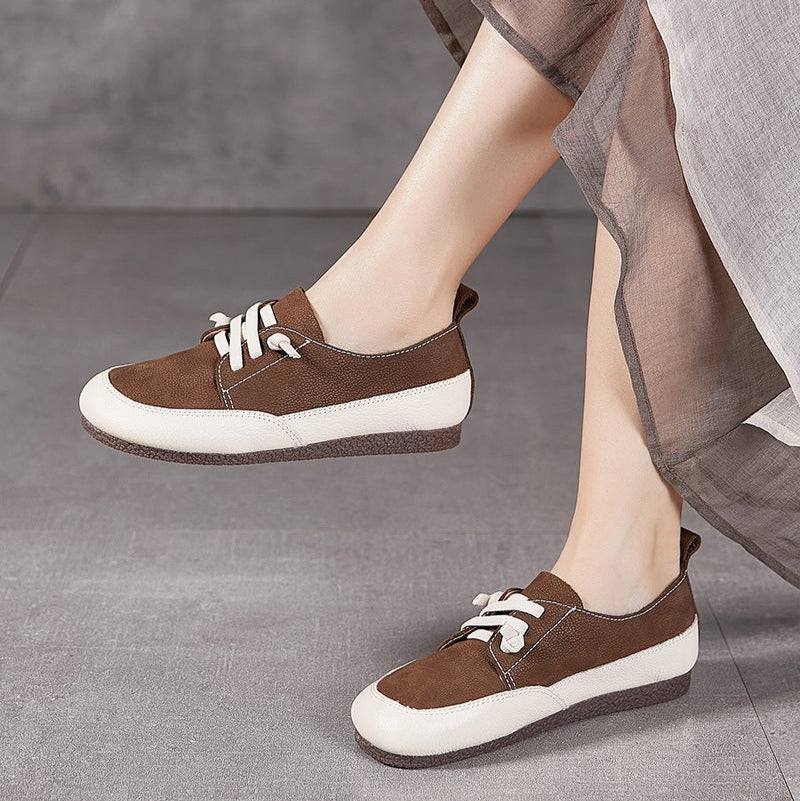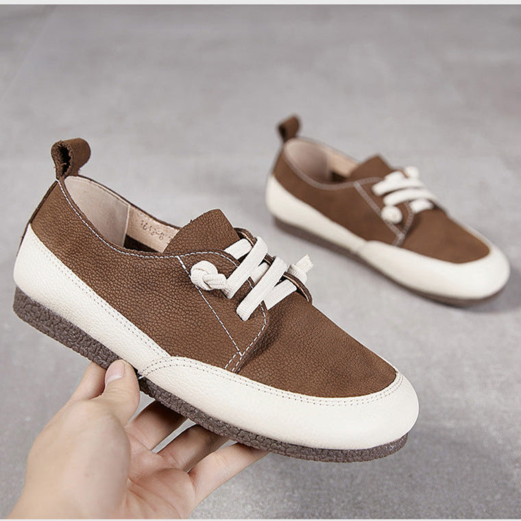 Women's Handmade Leather Patchwork Sneakers – Vintage Comfort & Style