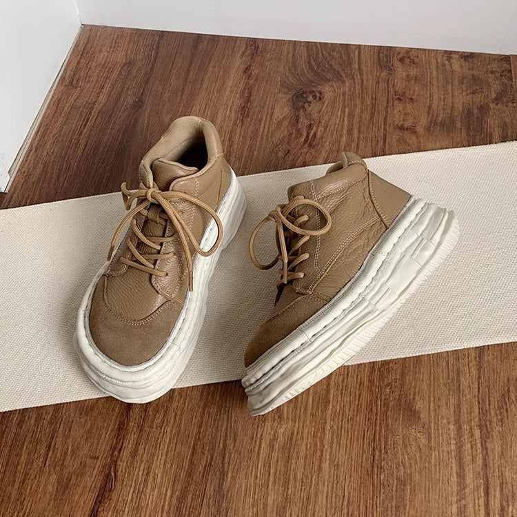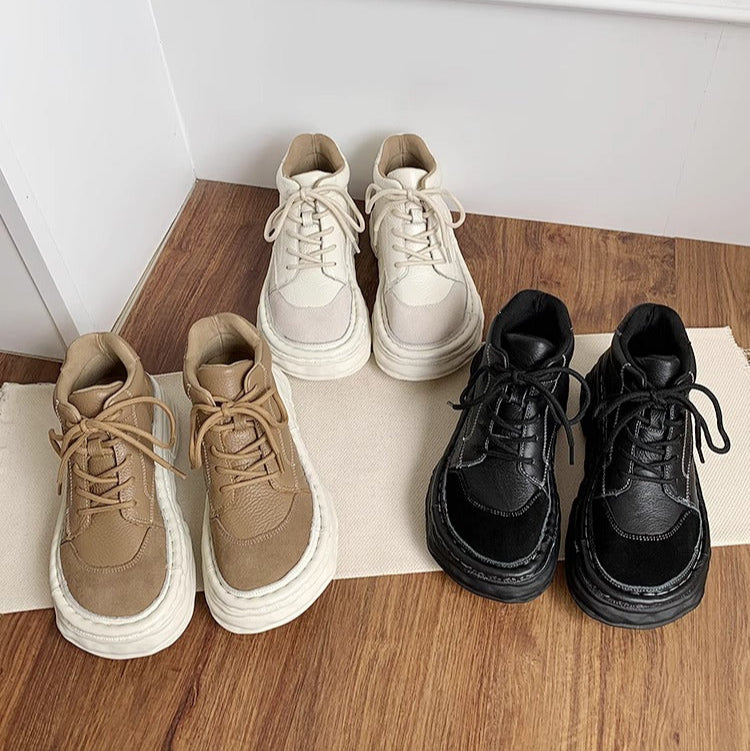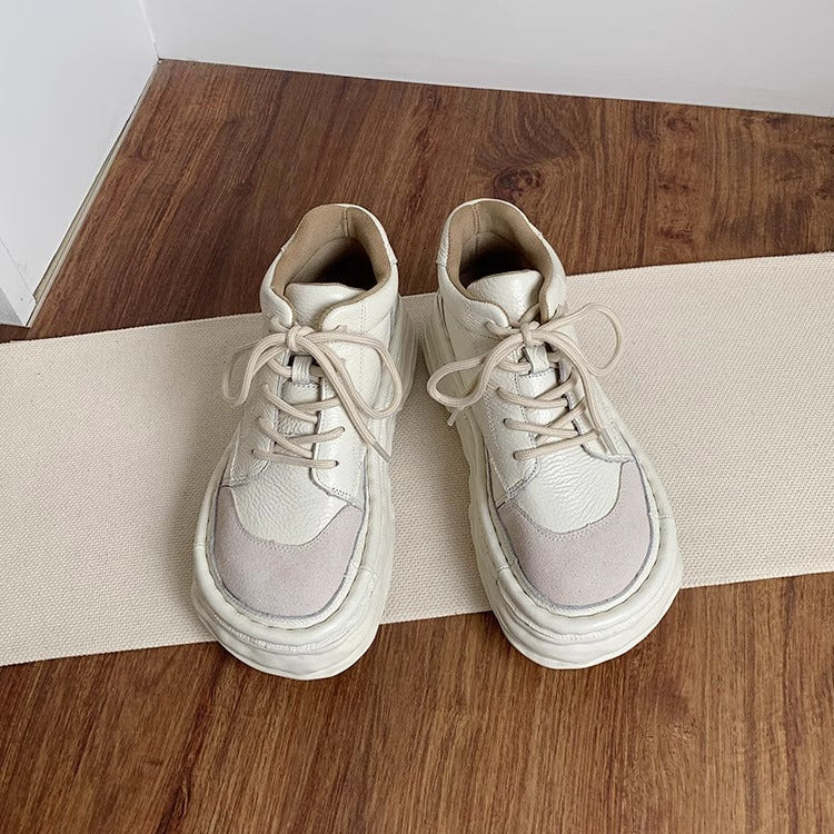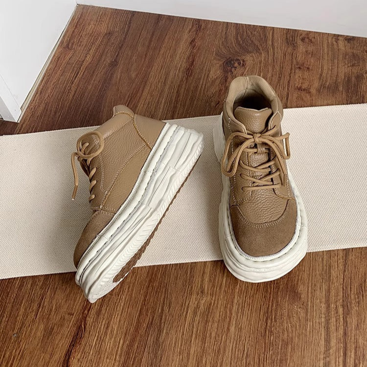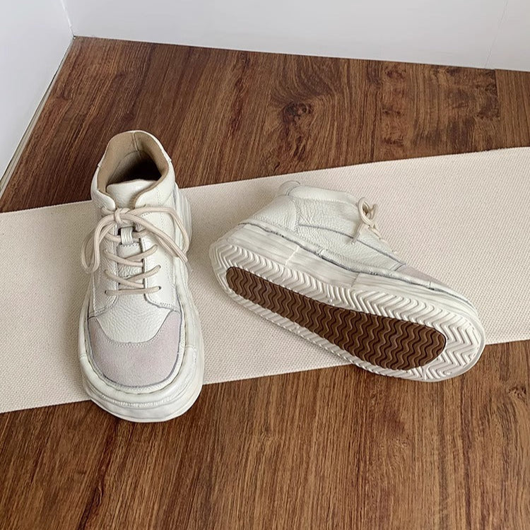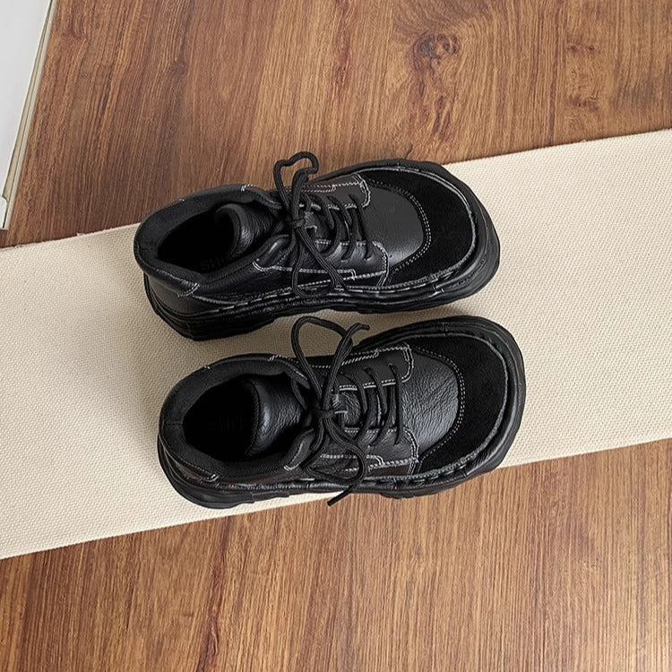 Women's Leather Patchwork High-Top Lace-Up Casual Sneakers – Ugly-Cute Style