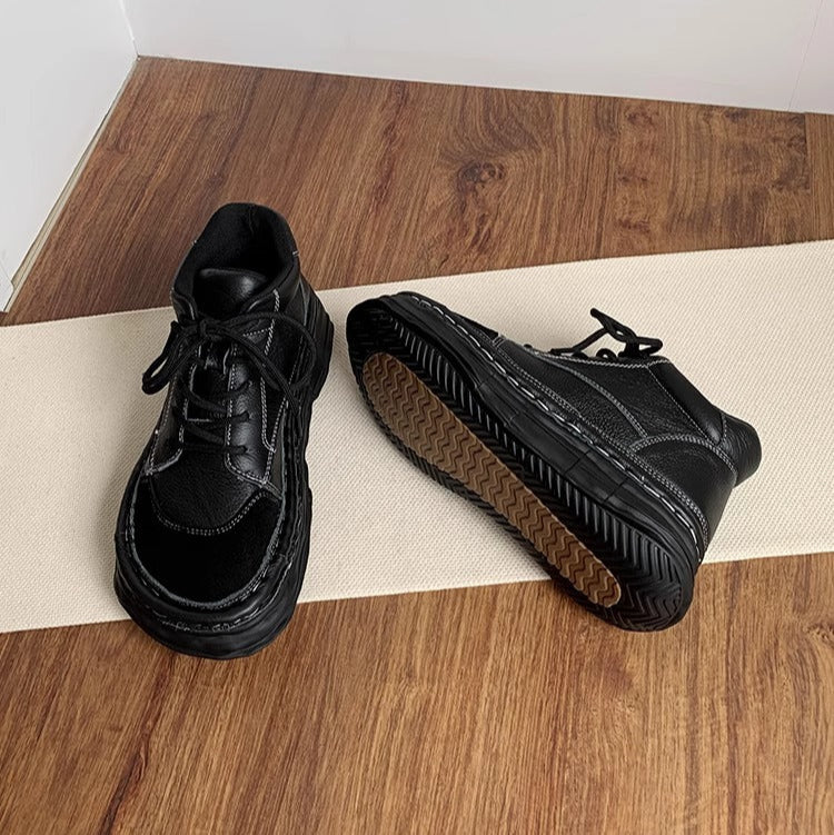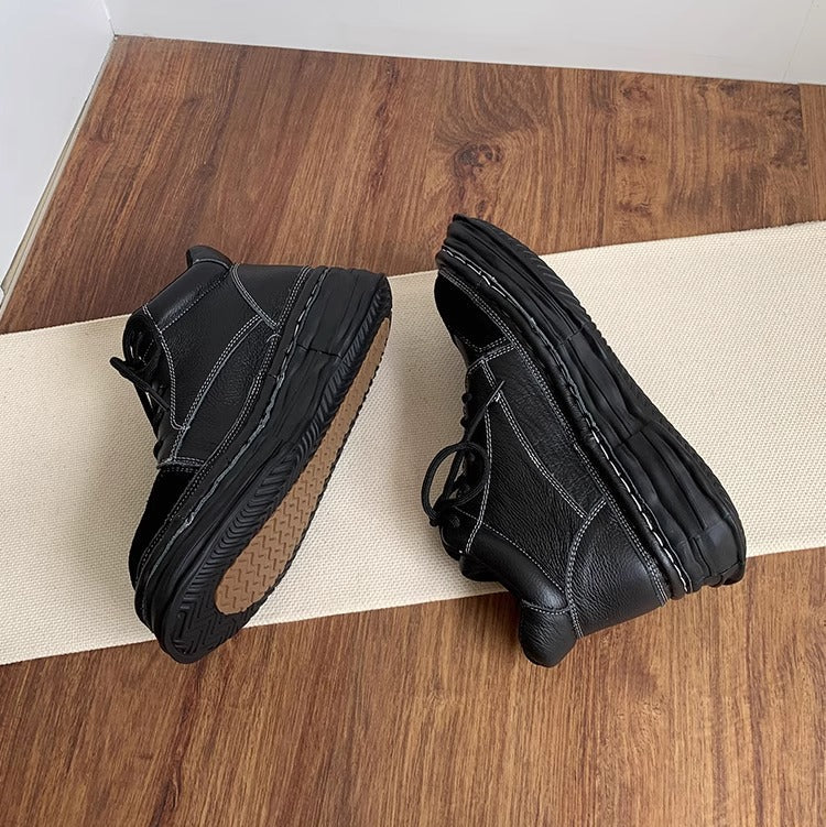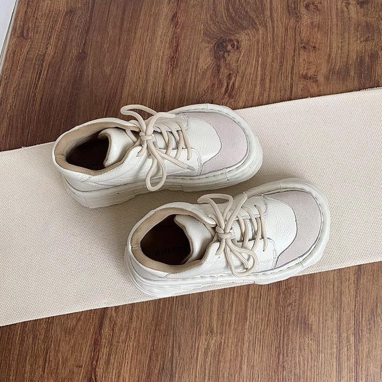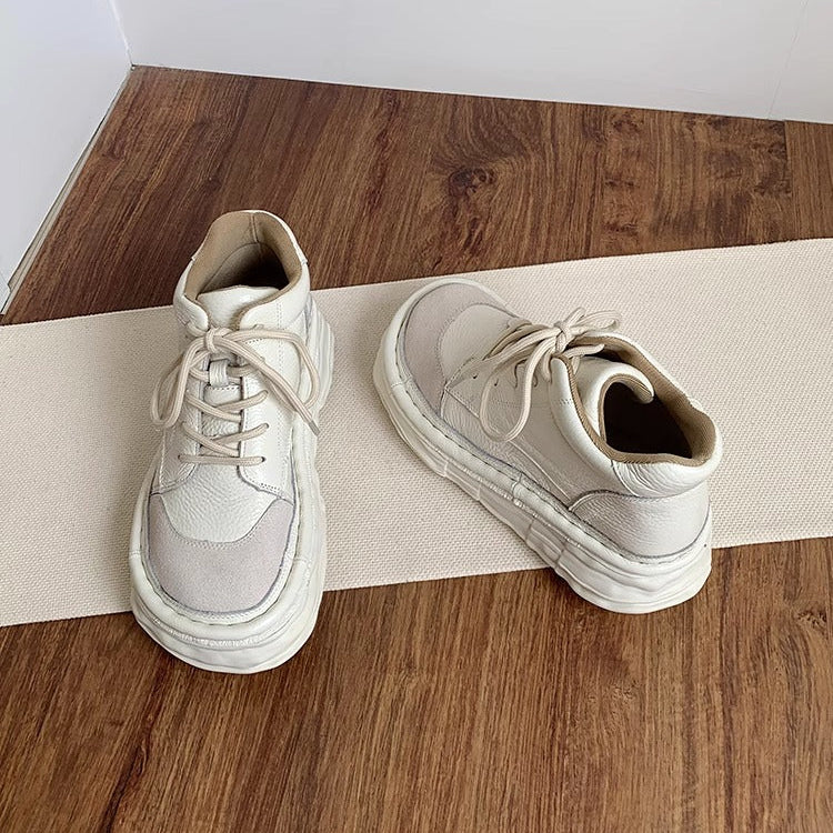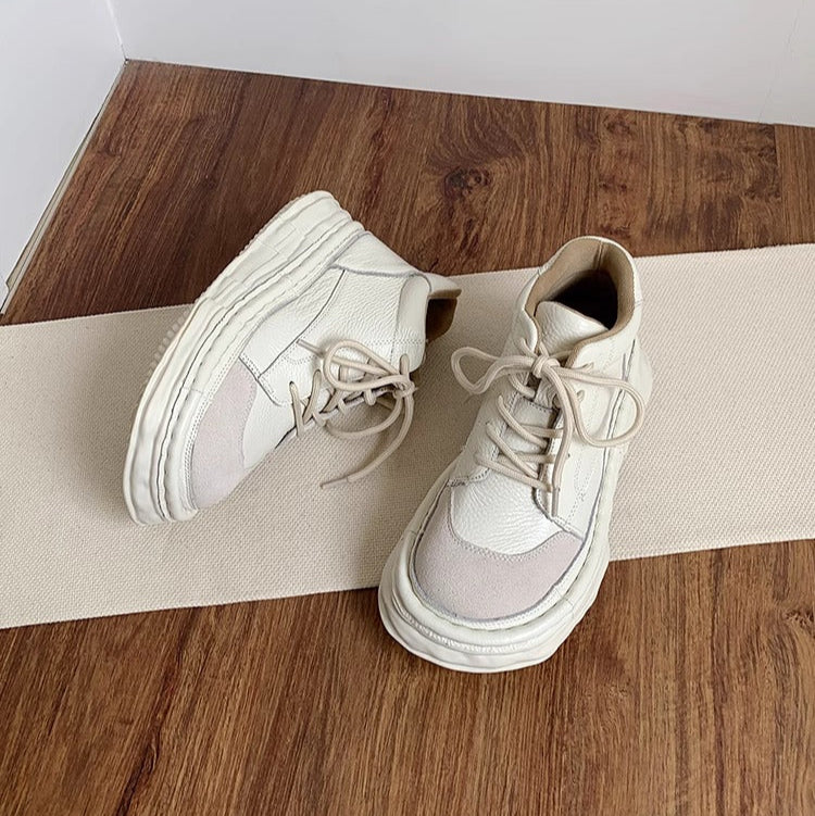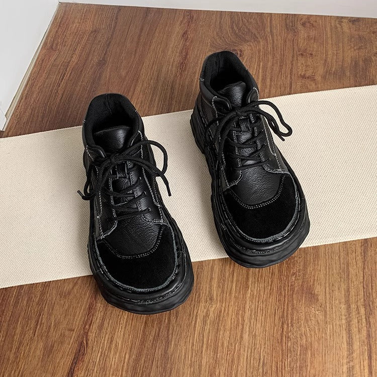 Women's Leather Patchwork High-Top Lace-Up Casual Sneakers – Ugly-Cute Style