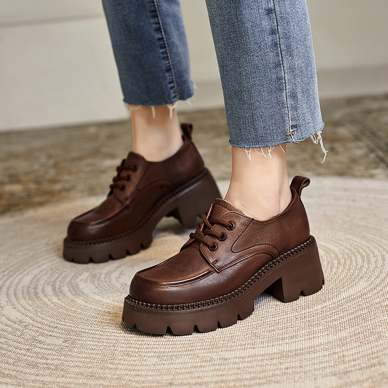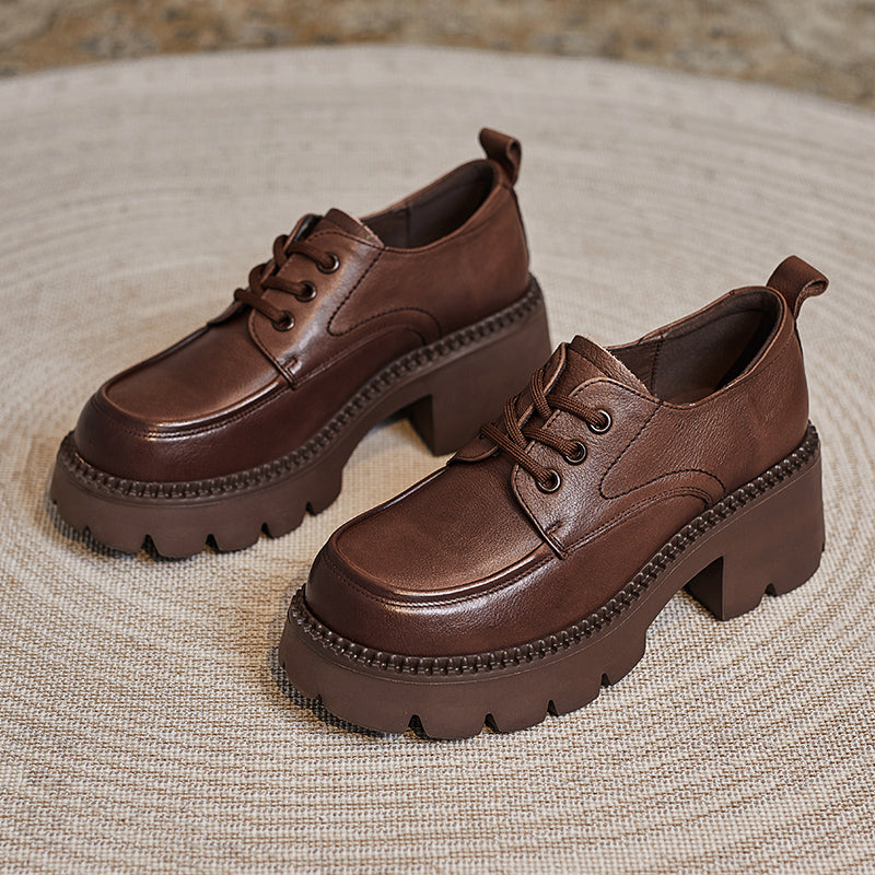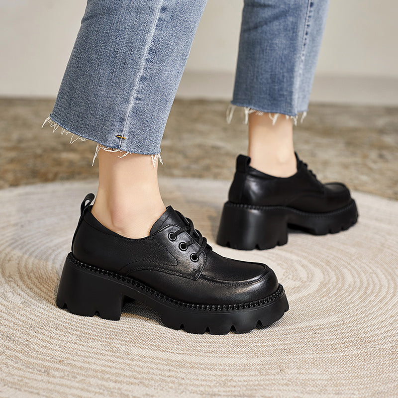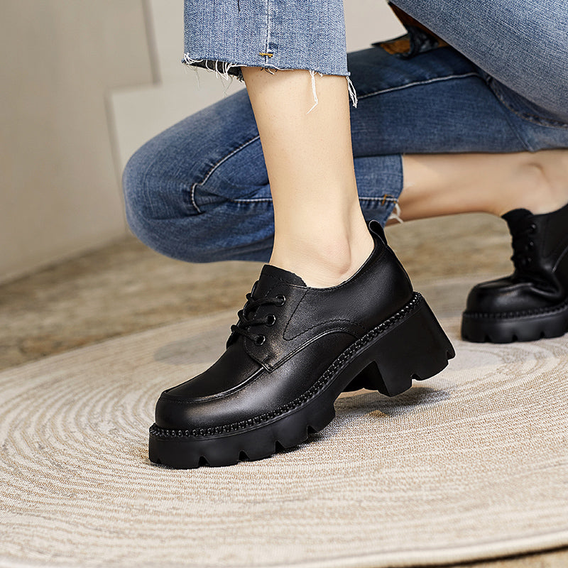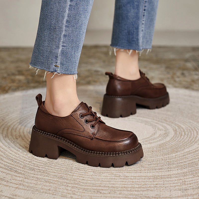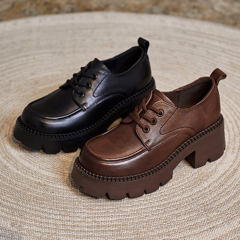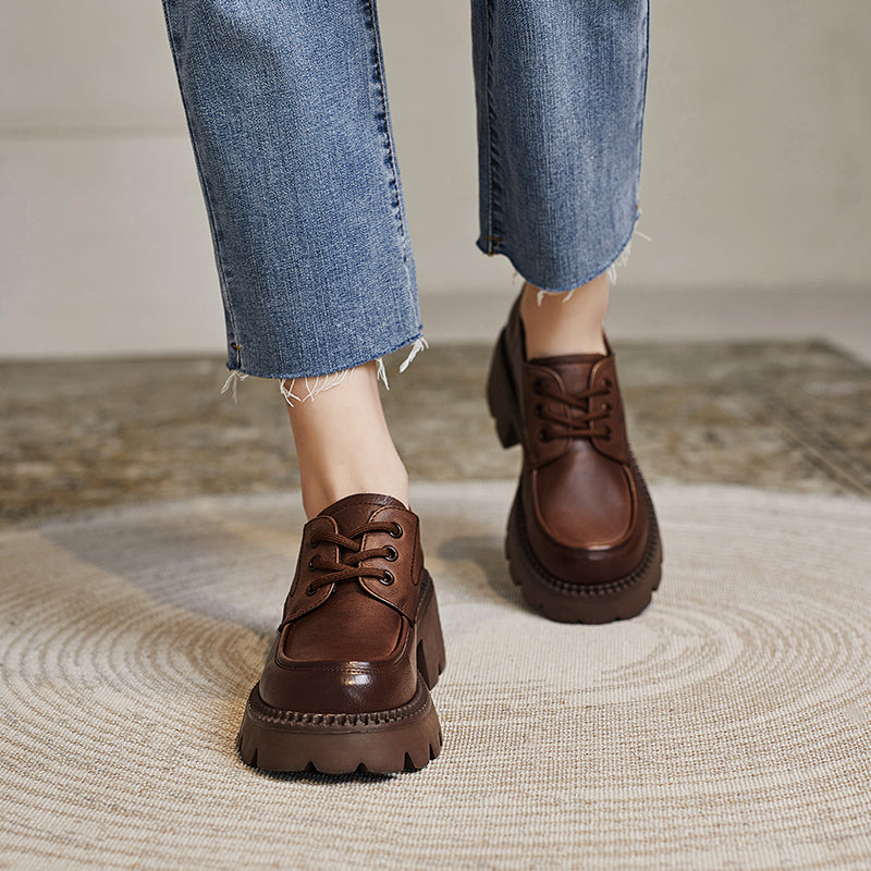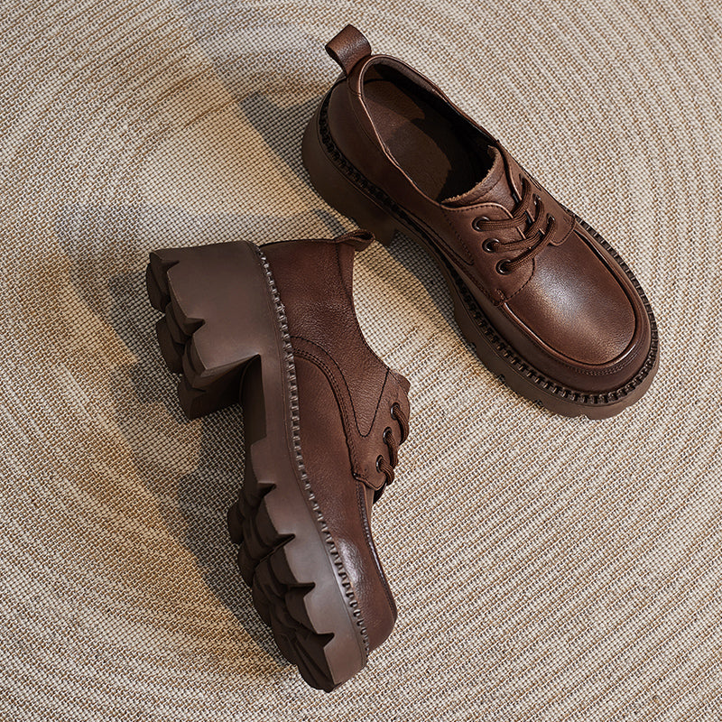 Elevate your style with our Women's Leather Platform Casual Lace-Up Oxfords. These lace-up oxfords are made with high-quality leather and feature a platform sole, providing both comfort and a fashion-forward look. Perfect for everyday wear or dressing up for a night out.