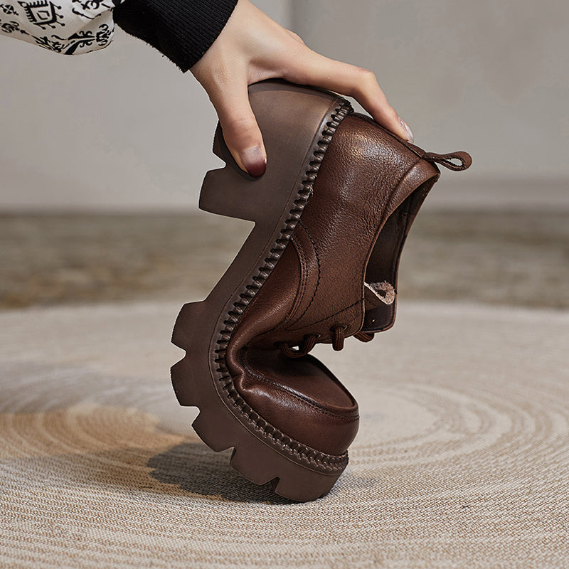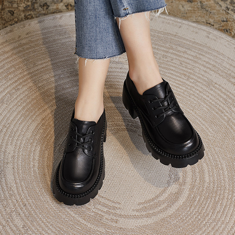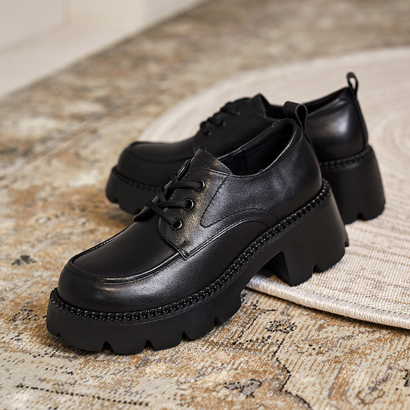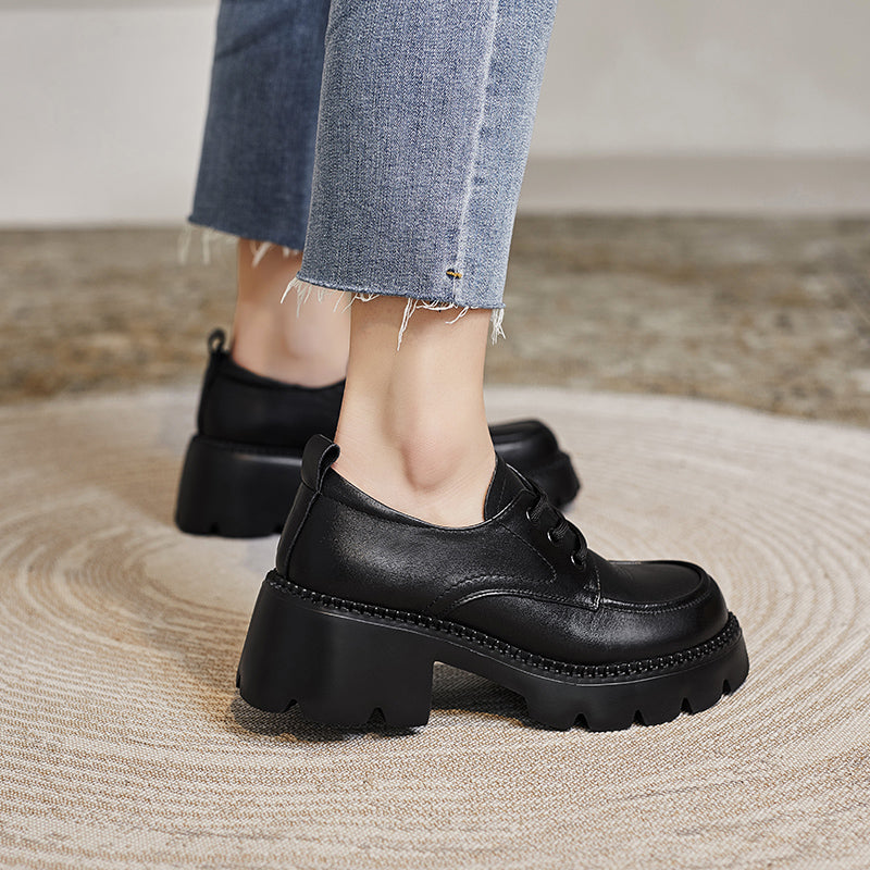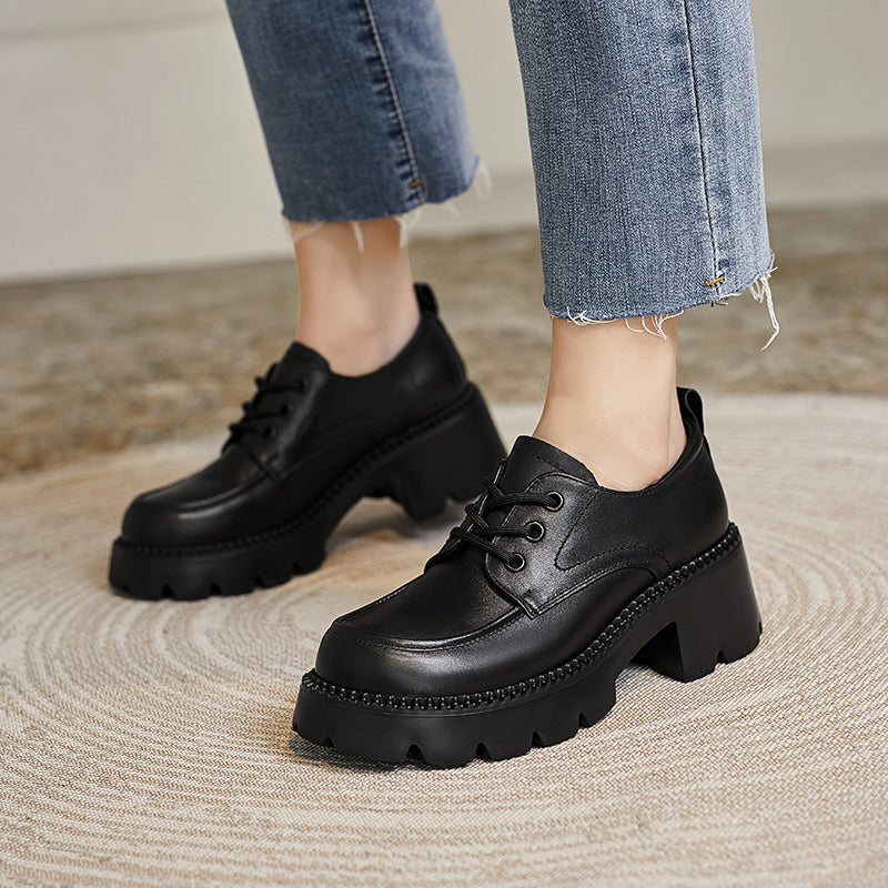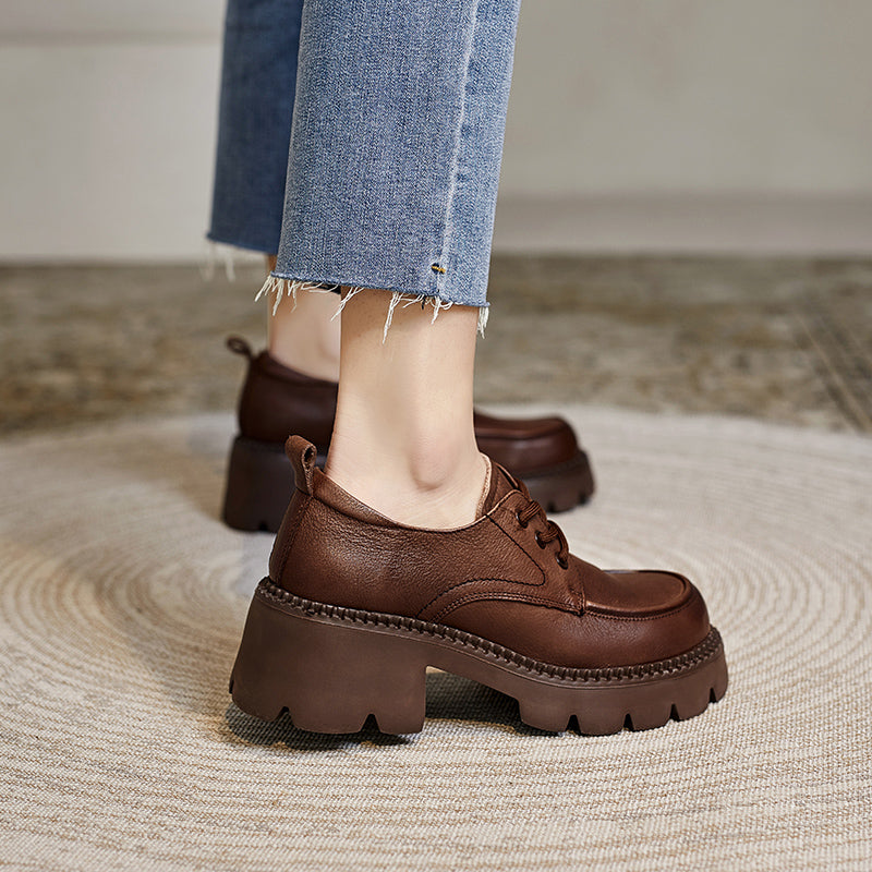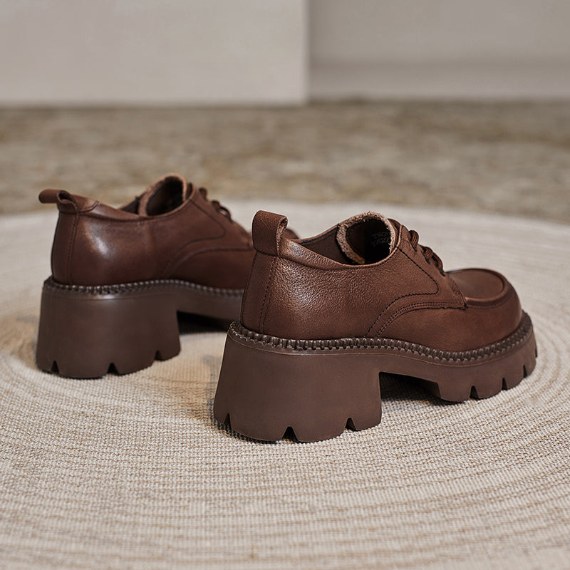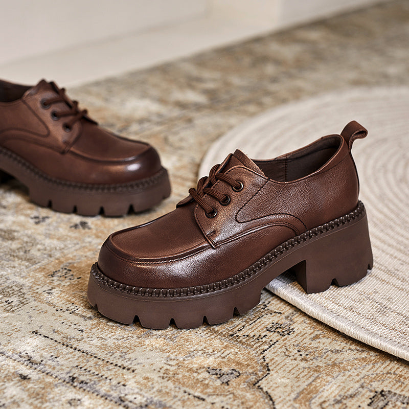 Elevate your style with our Women's Leather Platform Casual Lace-Up Oxfords. These lace-up oxfords are made with high-quality leather and feature a platform sole, providing both comfort and a fashion-forward look. Perfect for everyday wear or dressing up for a night out.