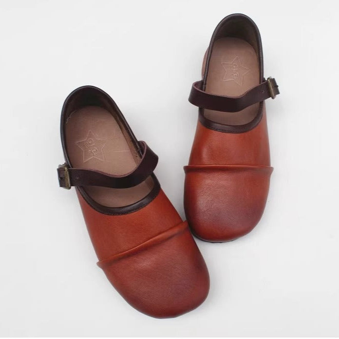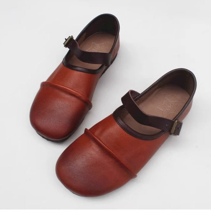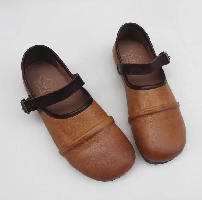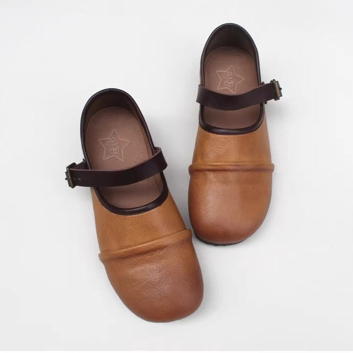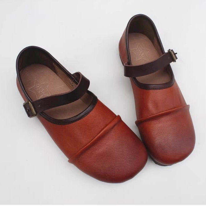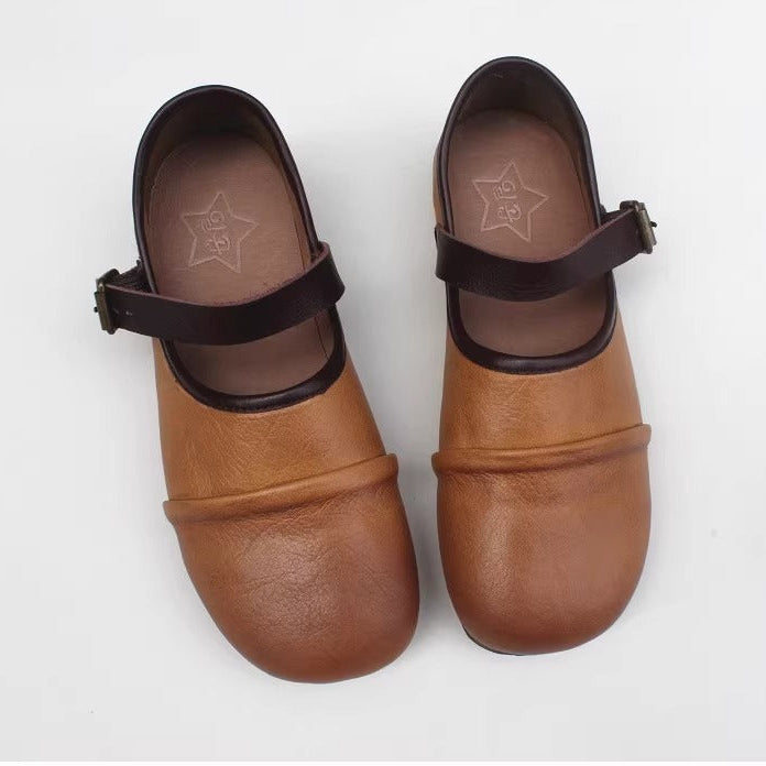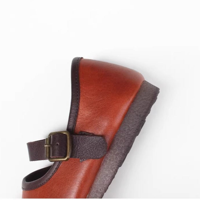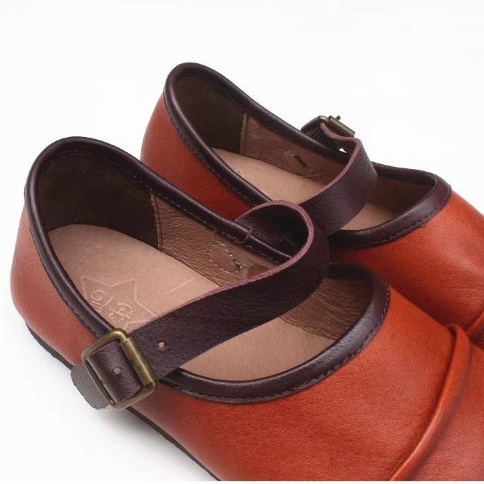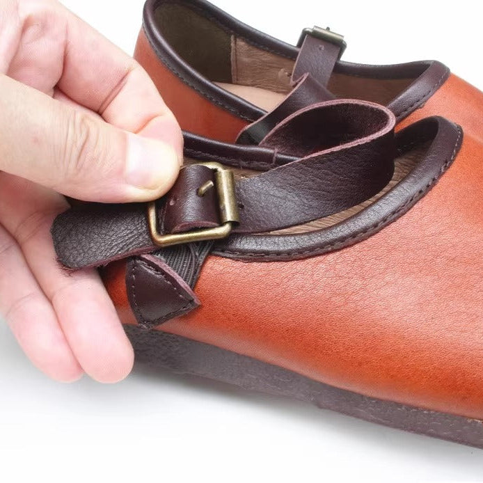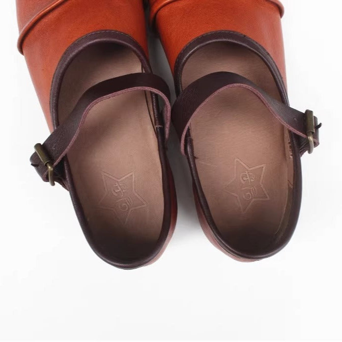 Women's Leather Round Toe Buckle High-vamp Mary Jane Shoes