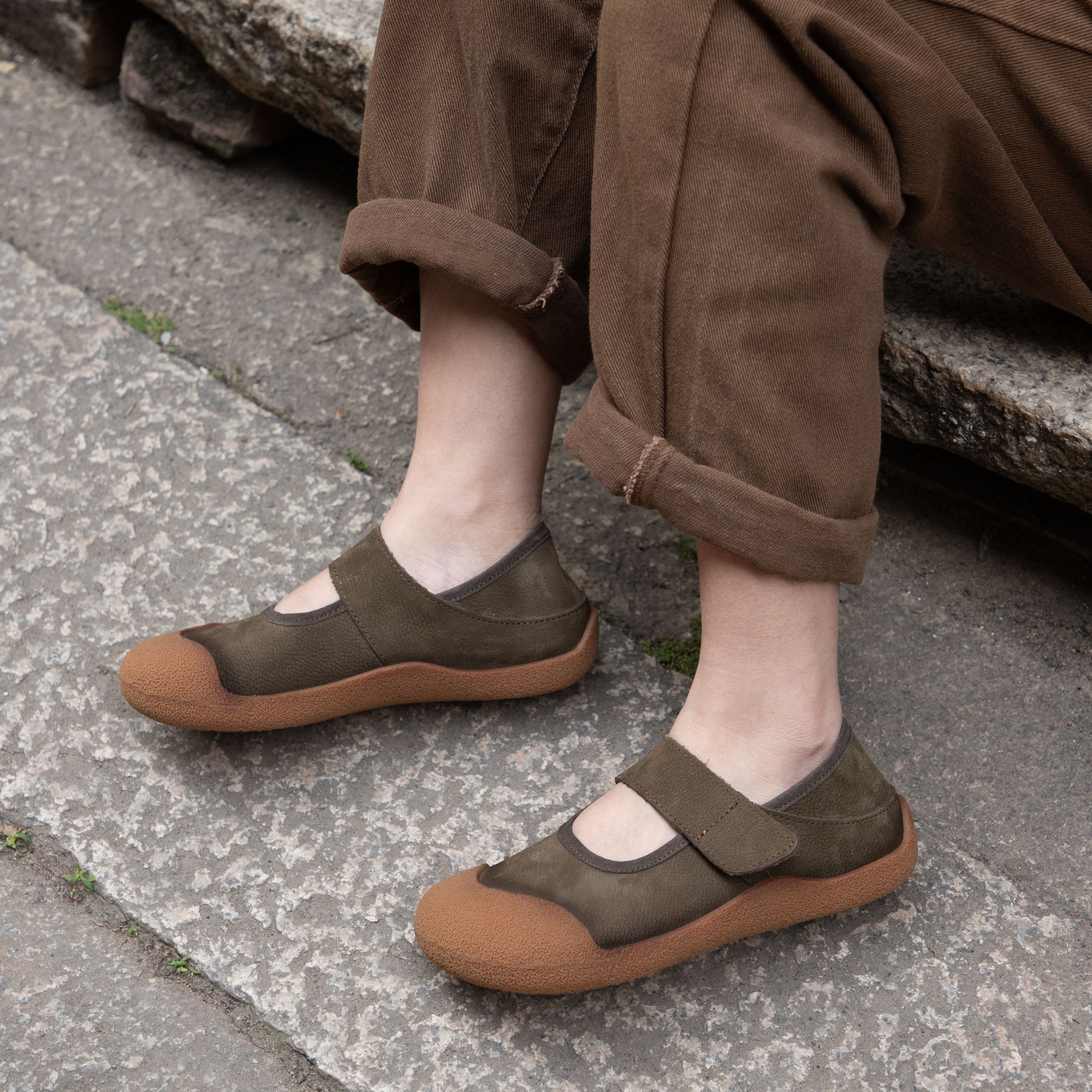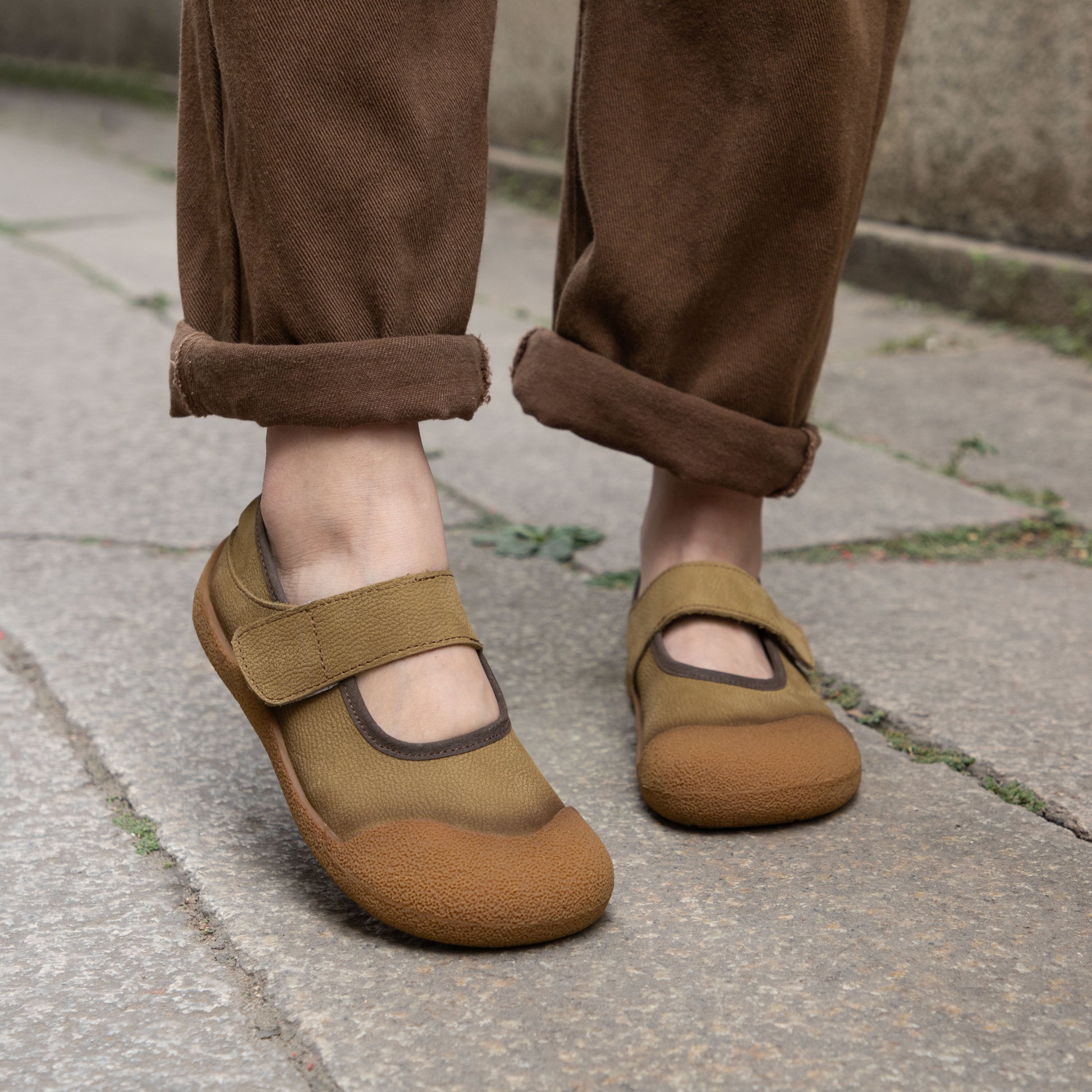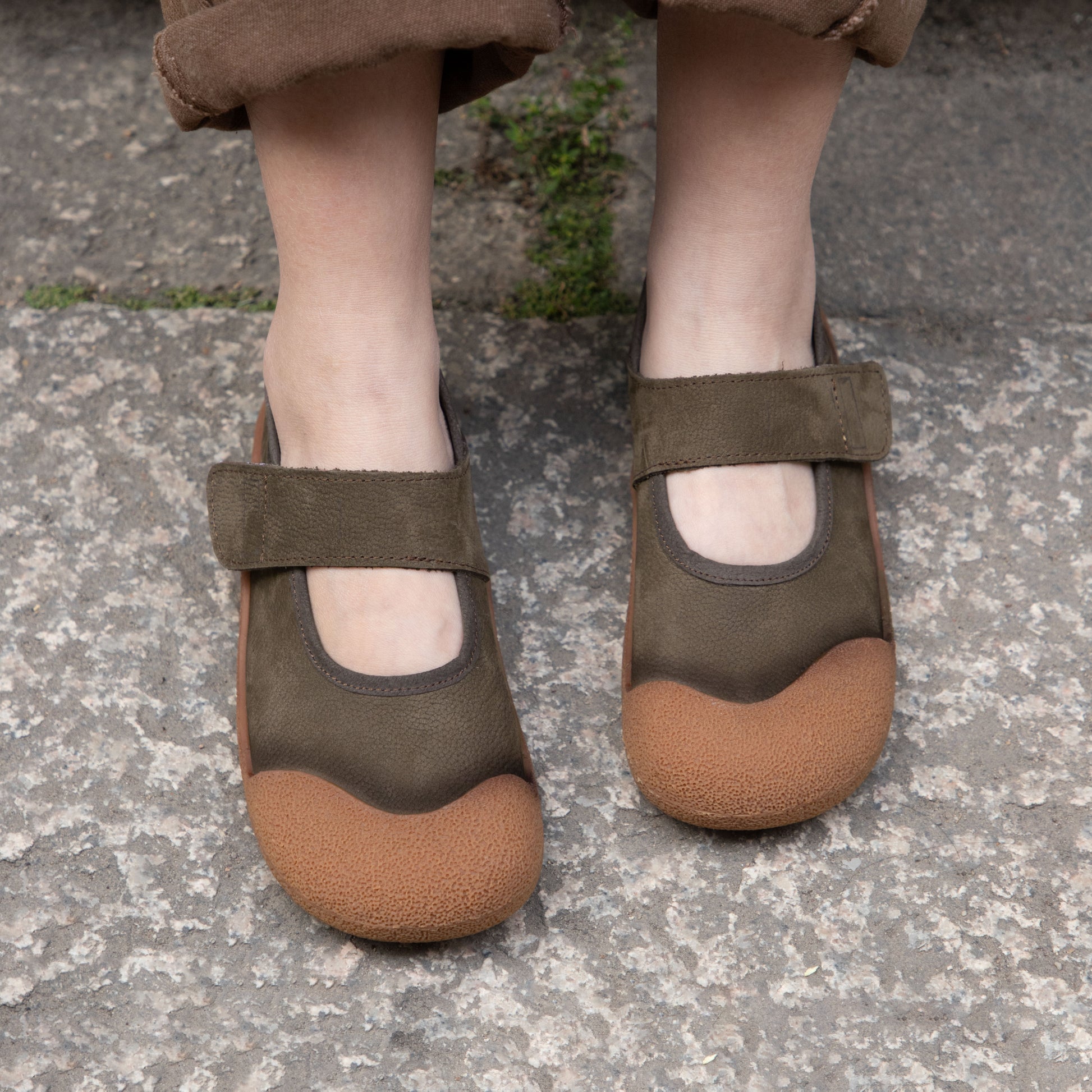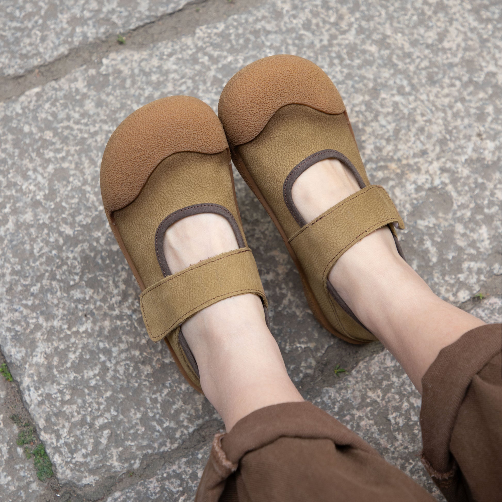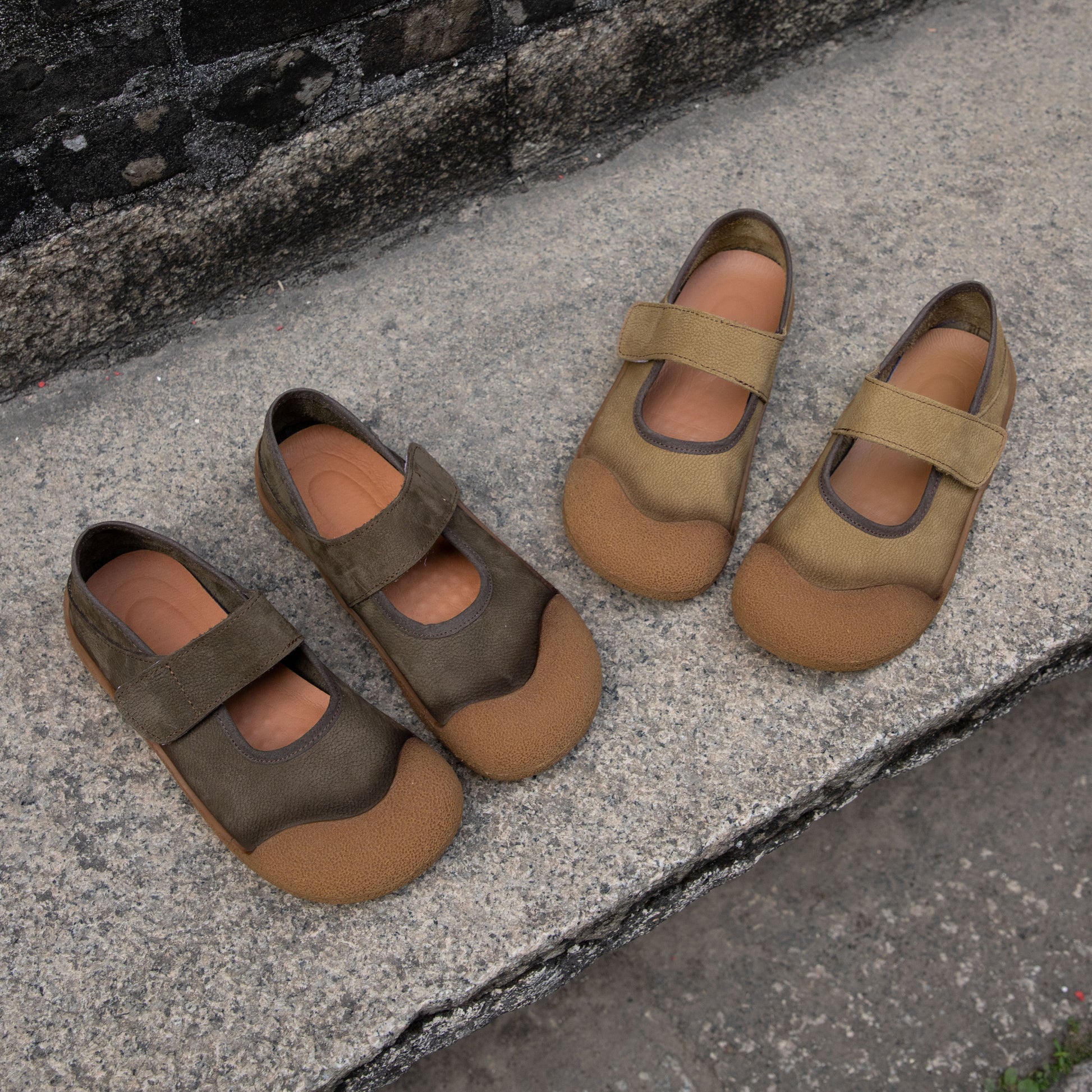 Women's Leather Round Toe Casual Velcro Flat Shoes