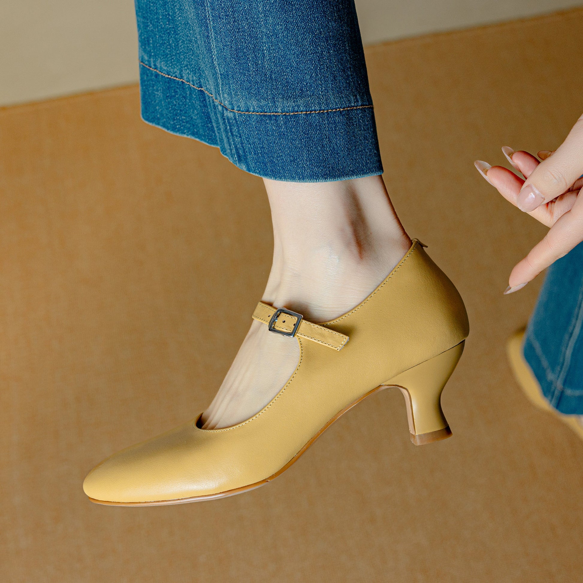 The ClassicStep MaryJane is a versatile women's pump that combines timeless style with everyday comfort. Crafted from premium first layer cowhide, this elegant design features a breathable pigskin lining and soft sheepskin insole for all-day wearability. The 3cm kitten heel and flexible TPR sole provide subtle elevation with stable support, while the round toe and adjustable buckle strap offer classic Mary Jane charm.