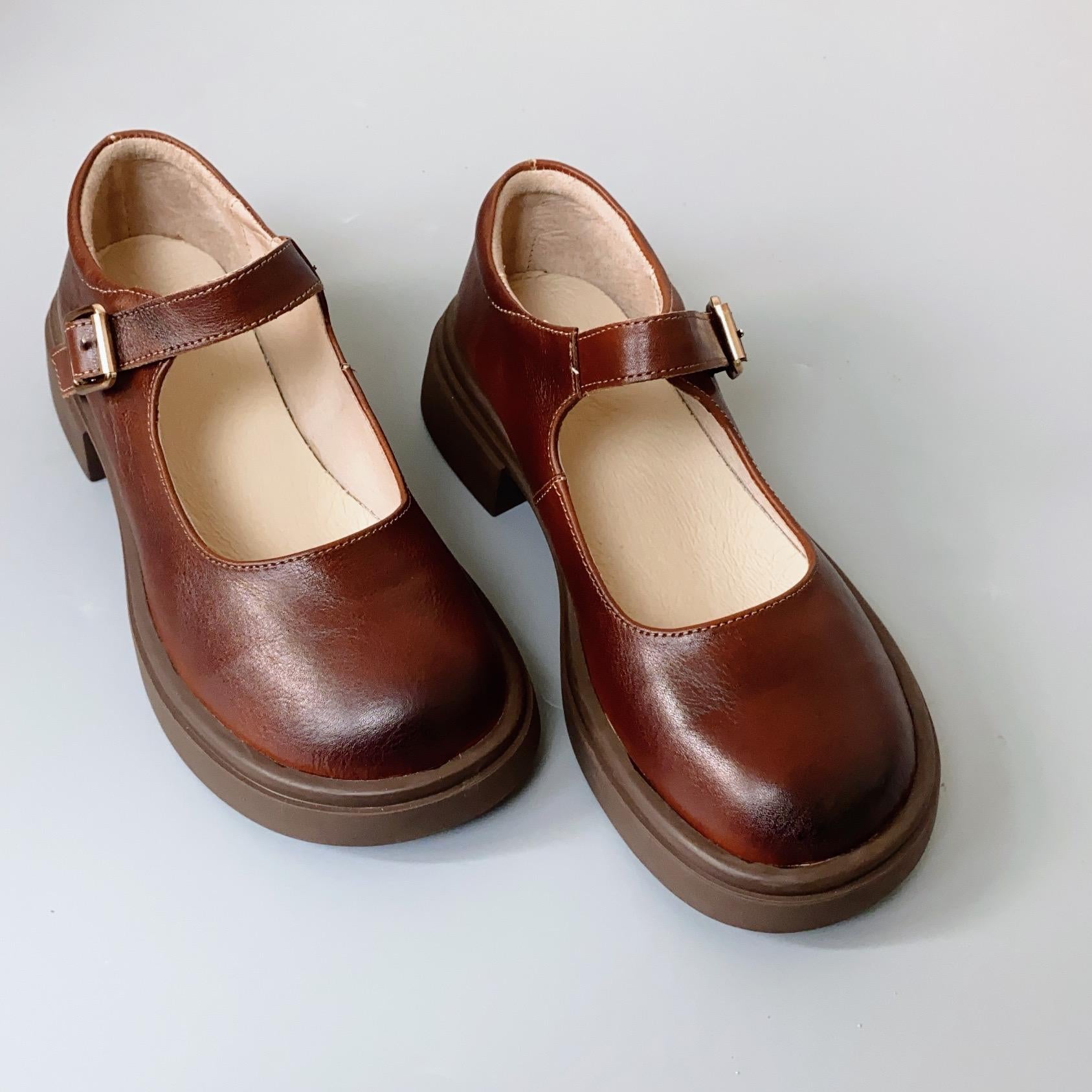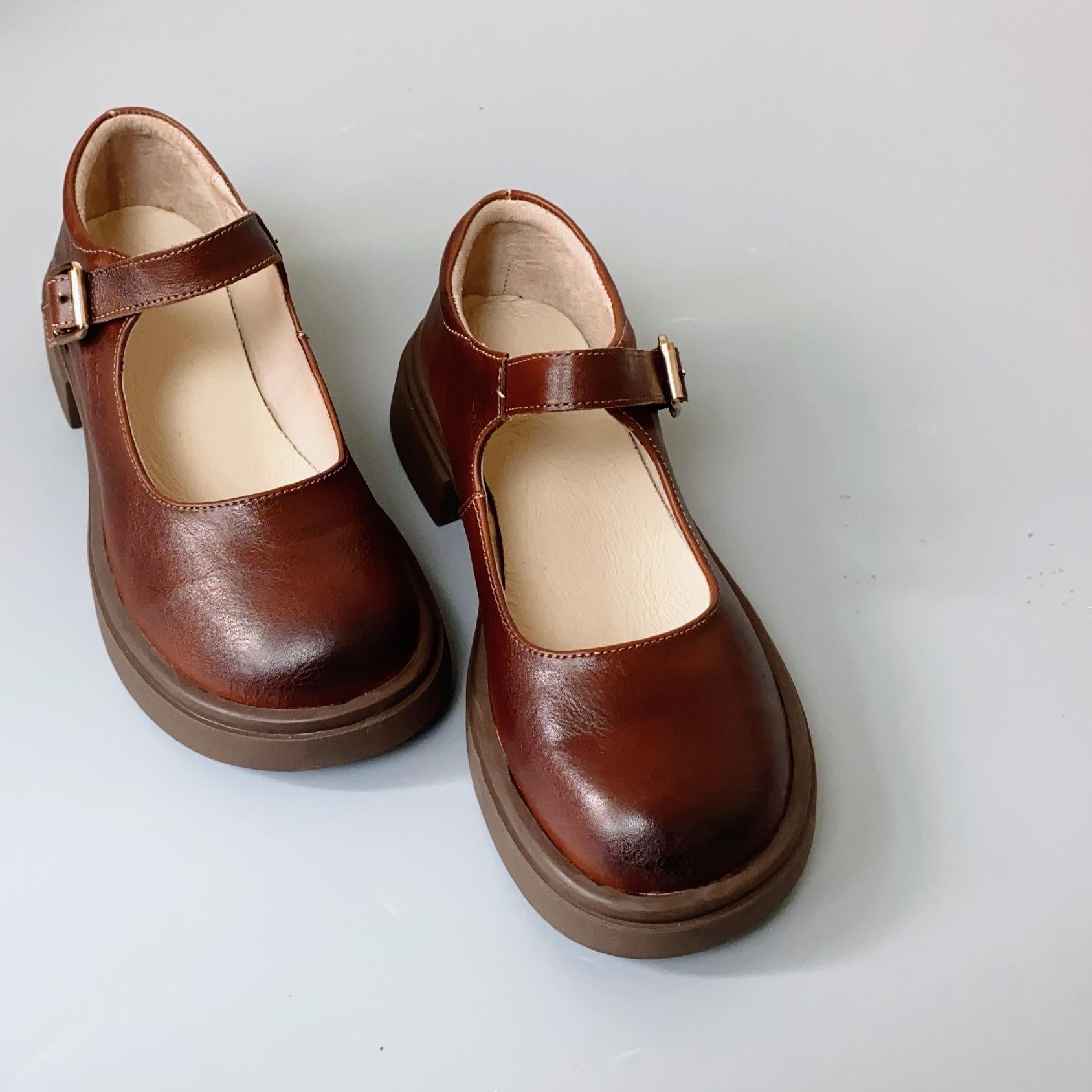 Take a trip back in time with our Women's Leather Round Toe Retro Buckle Mary Jane Shoes! With their low heel and chunky design, these shoes offer both comfort and style. Made with high quality leather and featuring a charming buckle, they are perfect for any occasion. Step into a world of vintage charm with these one-of-a-kind shoes!