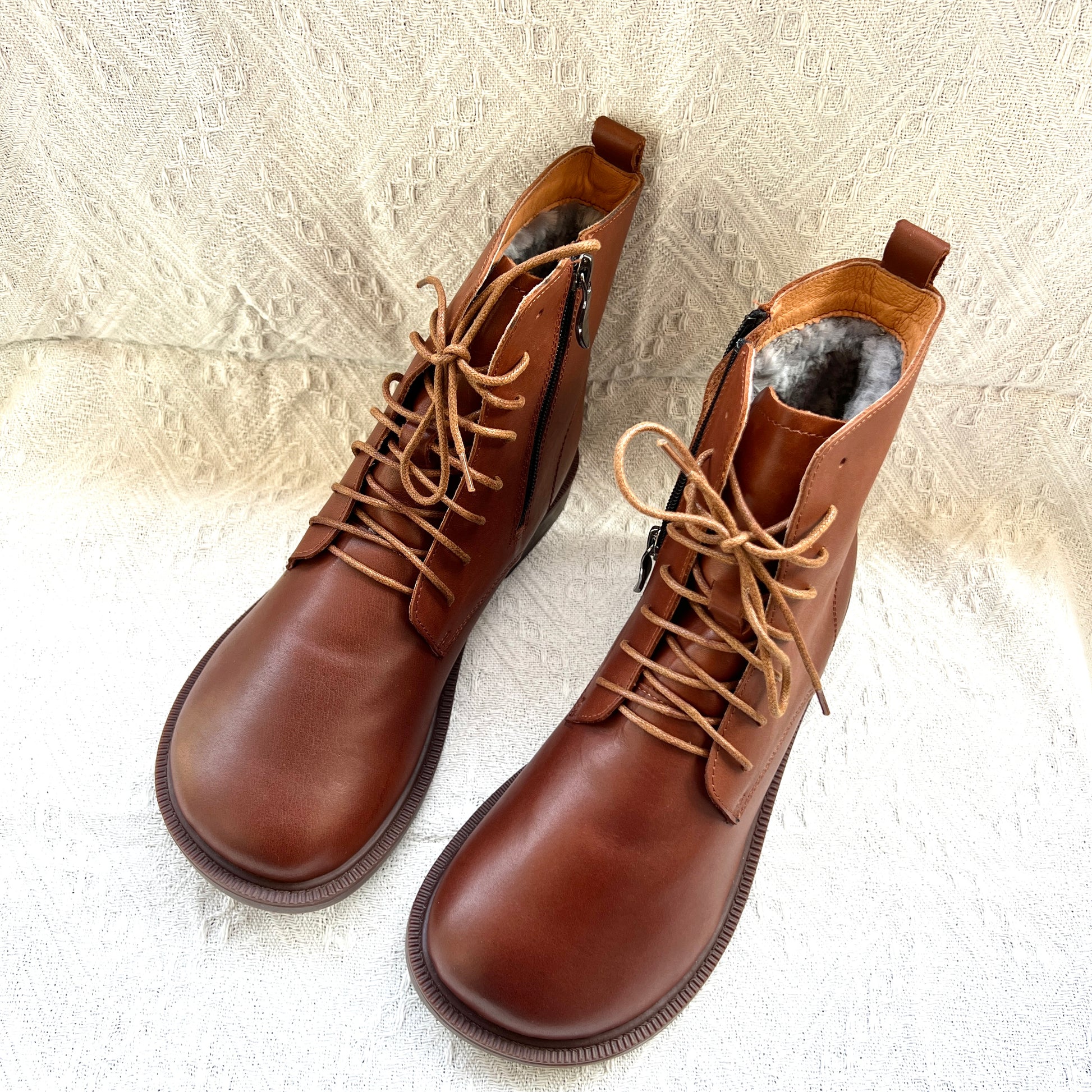 Women's Leather Shearling Ankle Boots – Wide Toe Winter Warm Boots