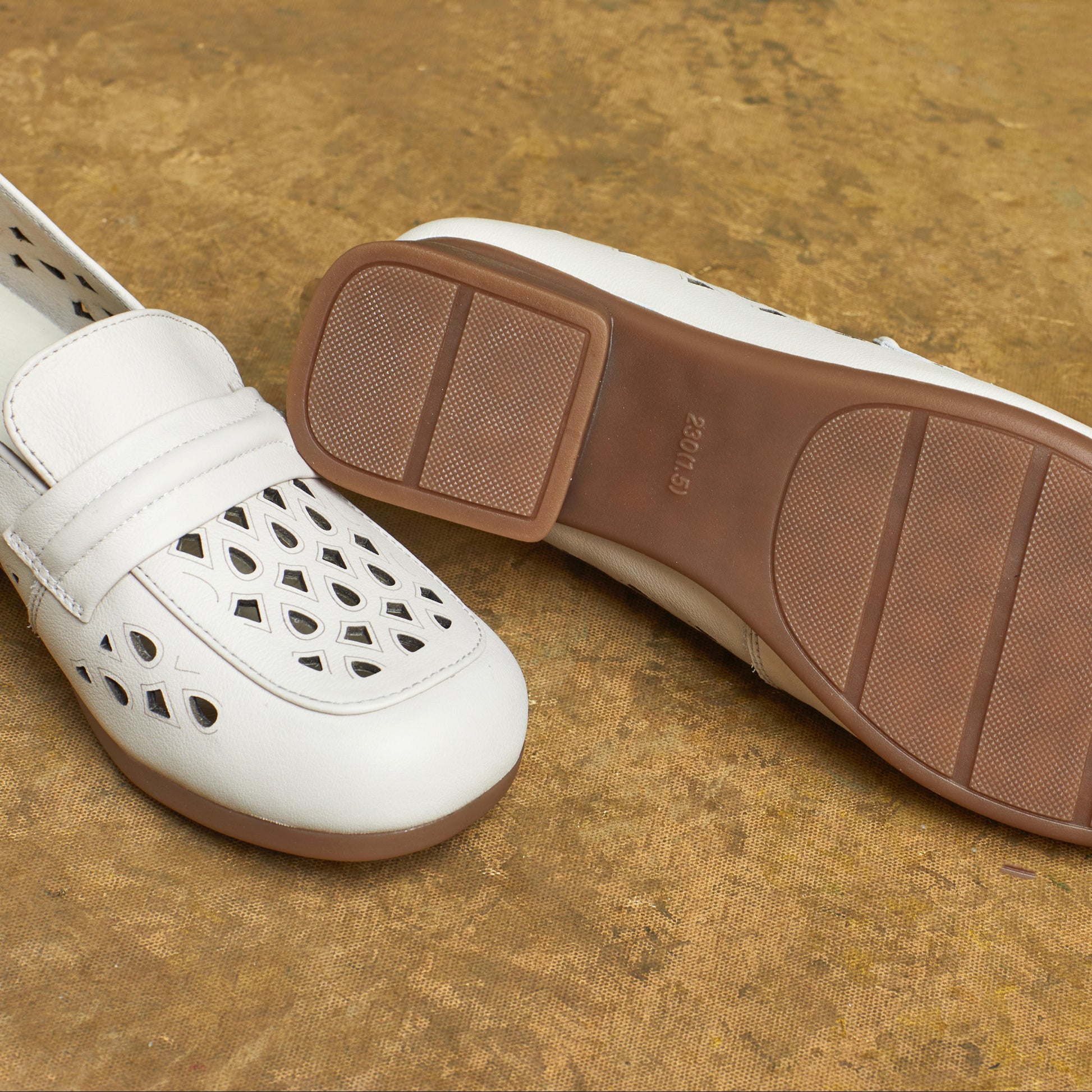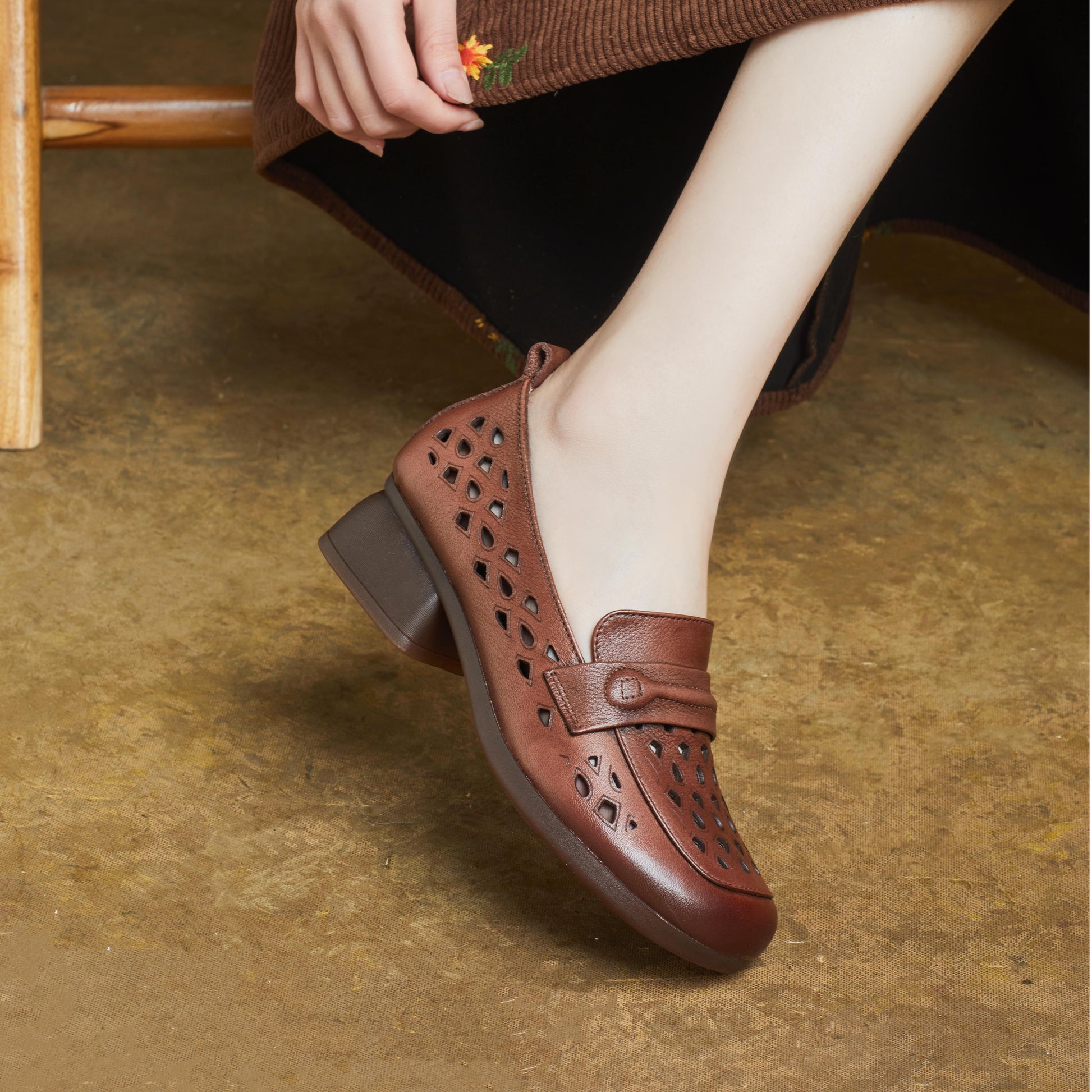 Women's Leather Summer Hollow Out Closed Toe Block Heel Sandals Loafers