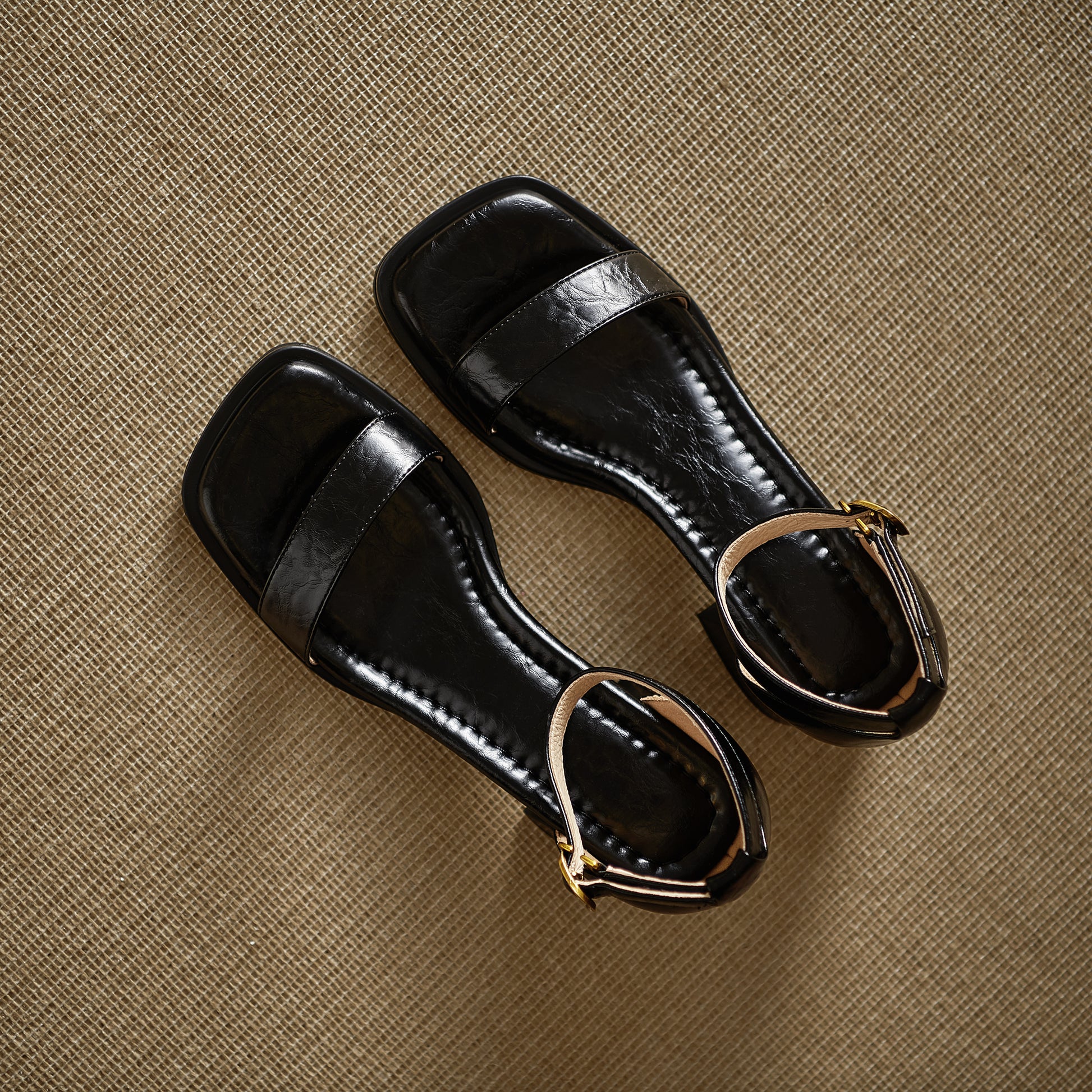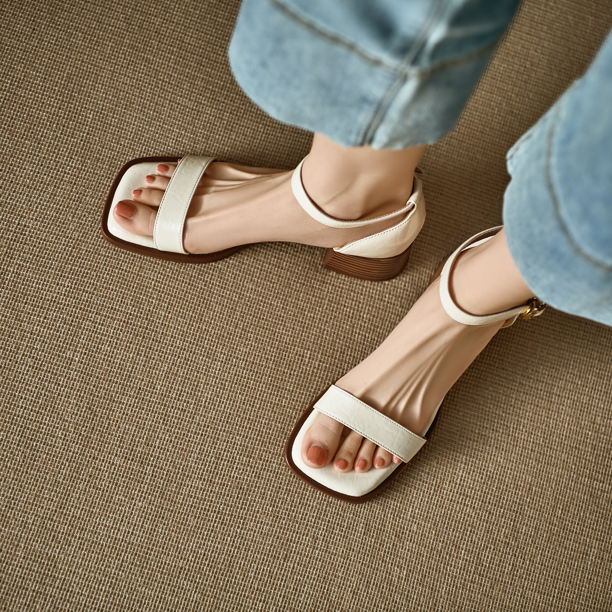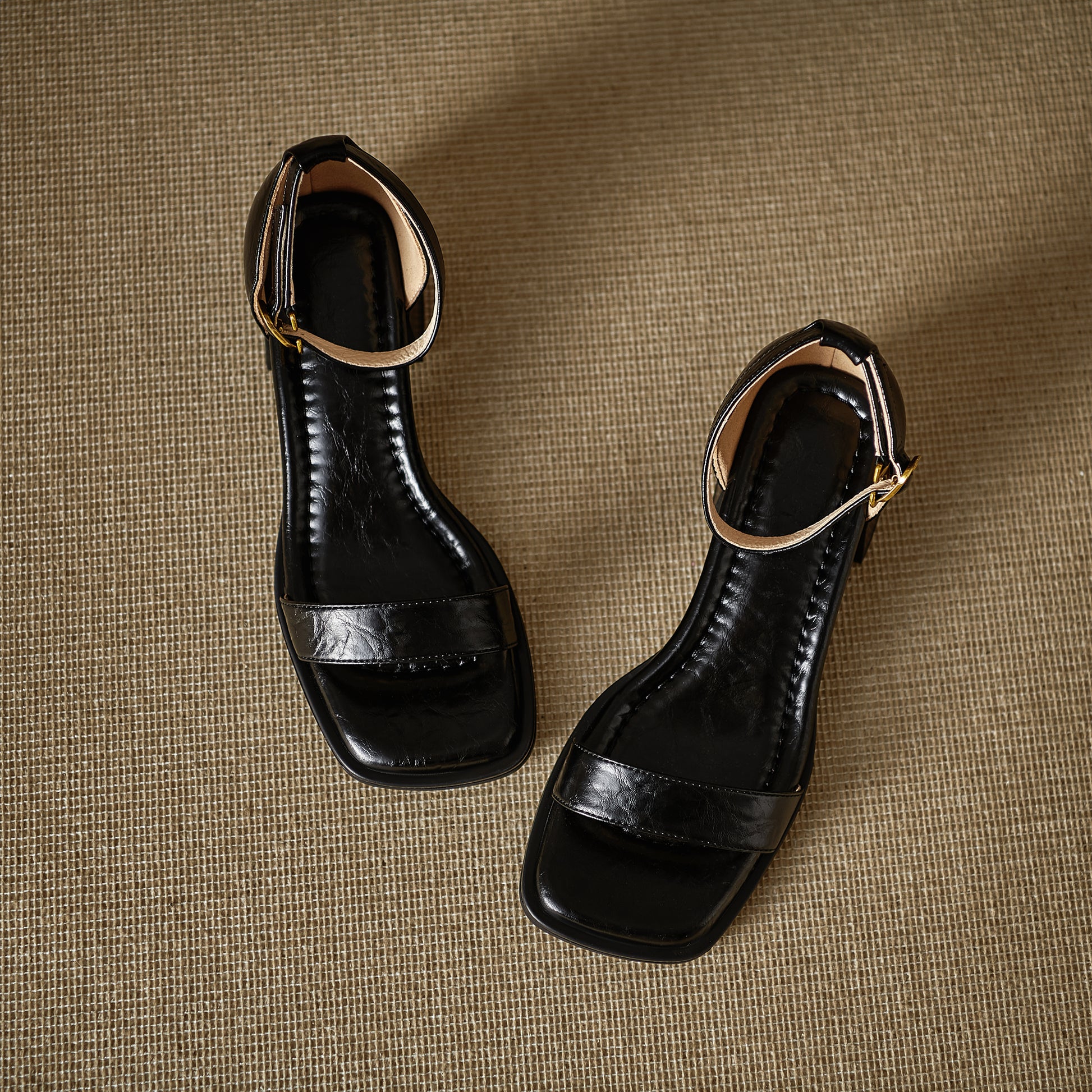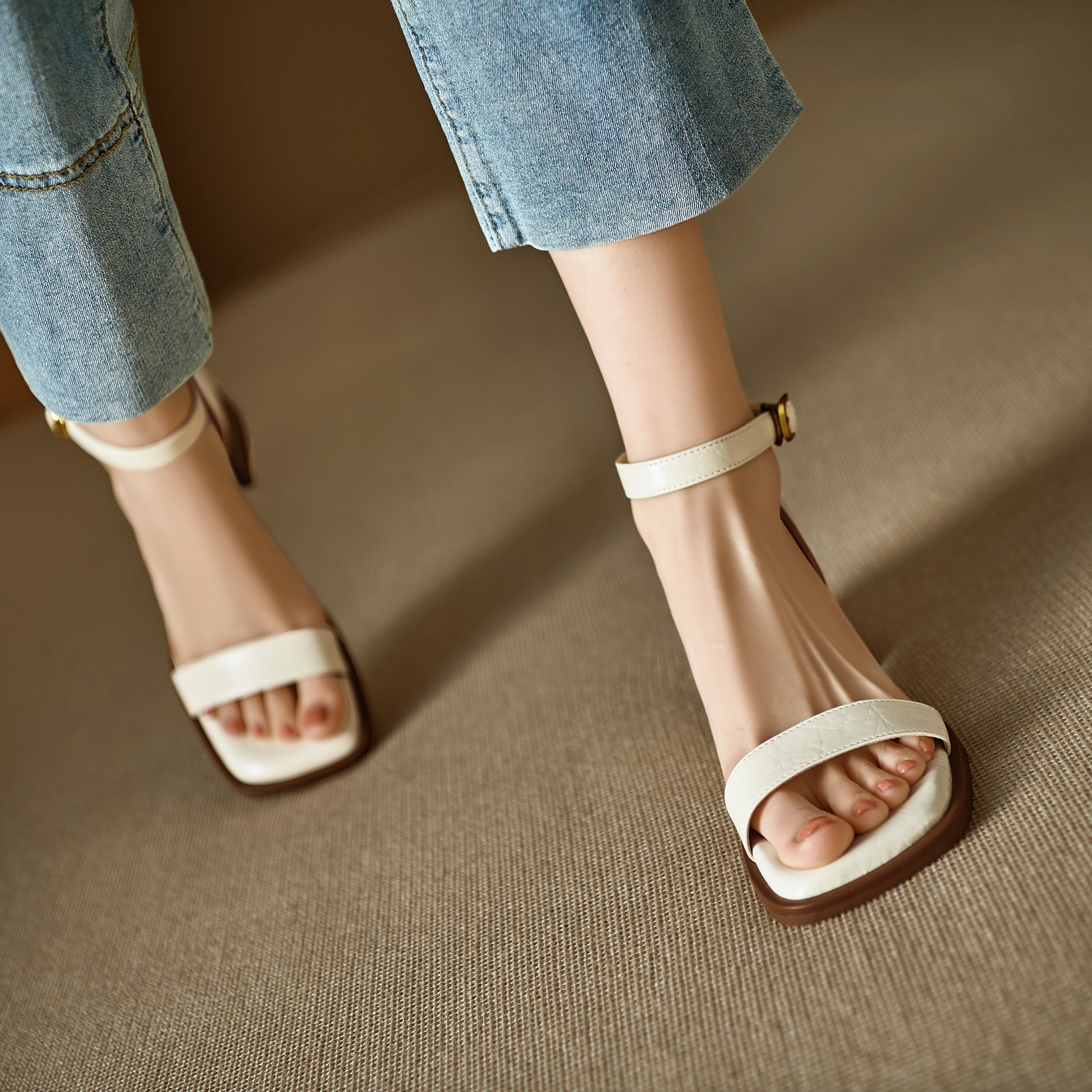 Women's Leather Summer Sandals – Chic & Secure Ankle Strap Design