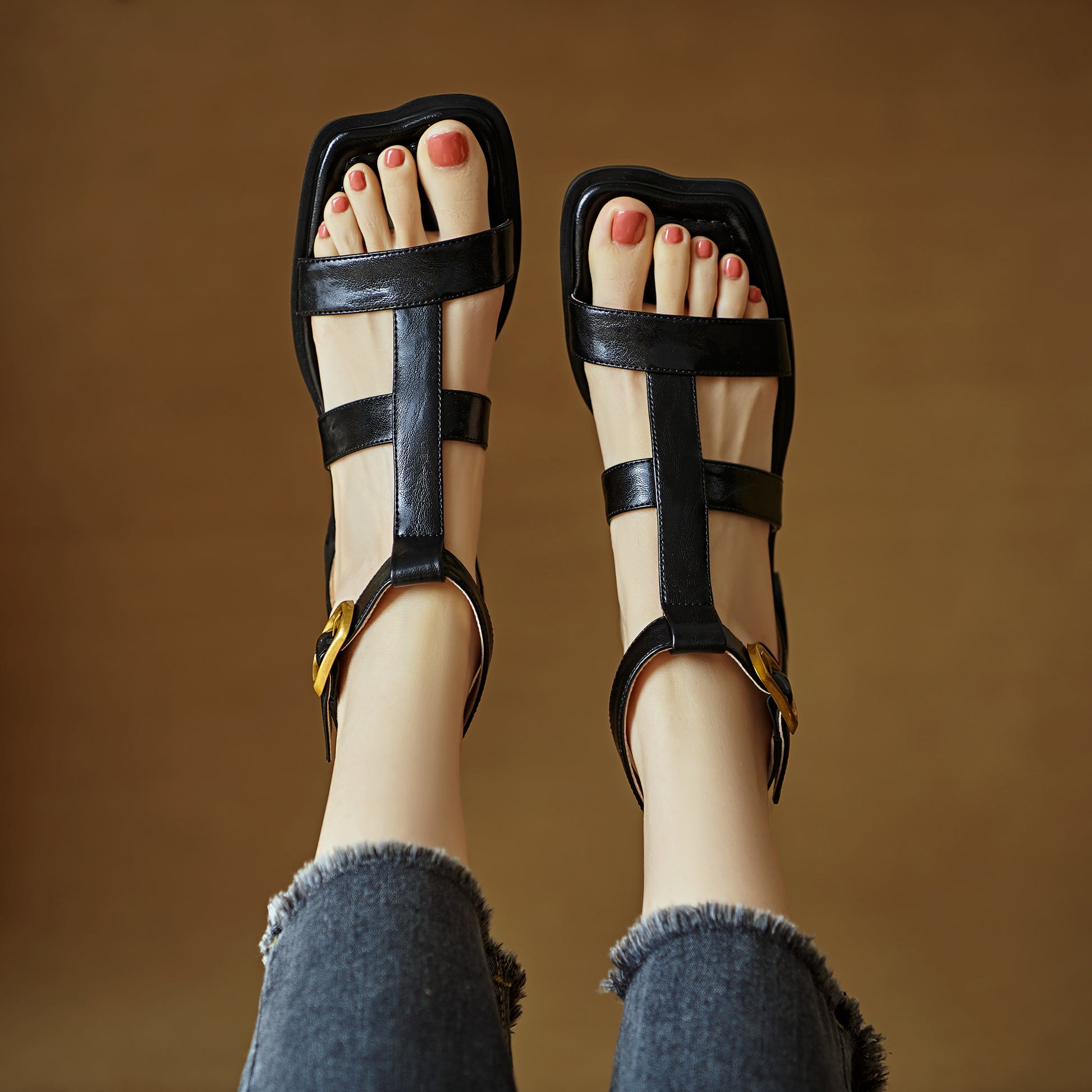 Women's Leather Summer Sandals – Secure & Stylish Strappy Design