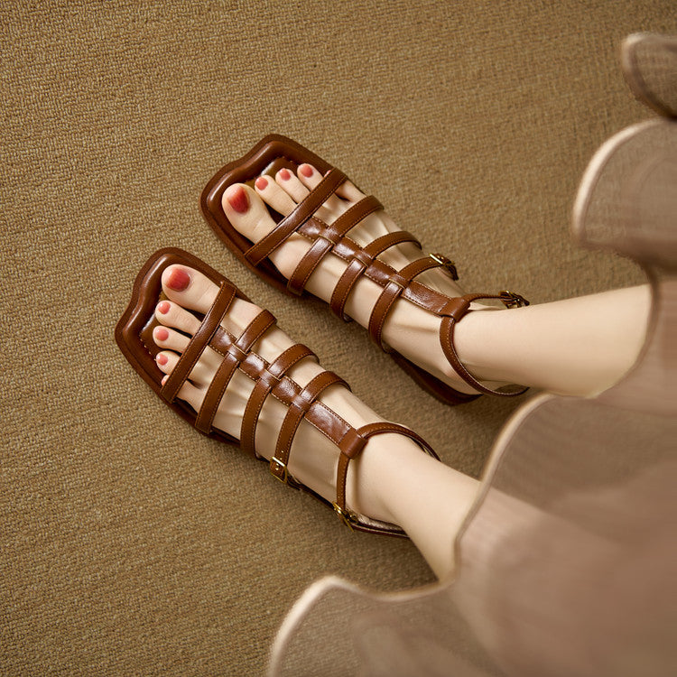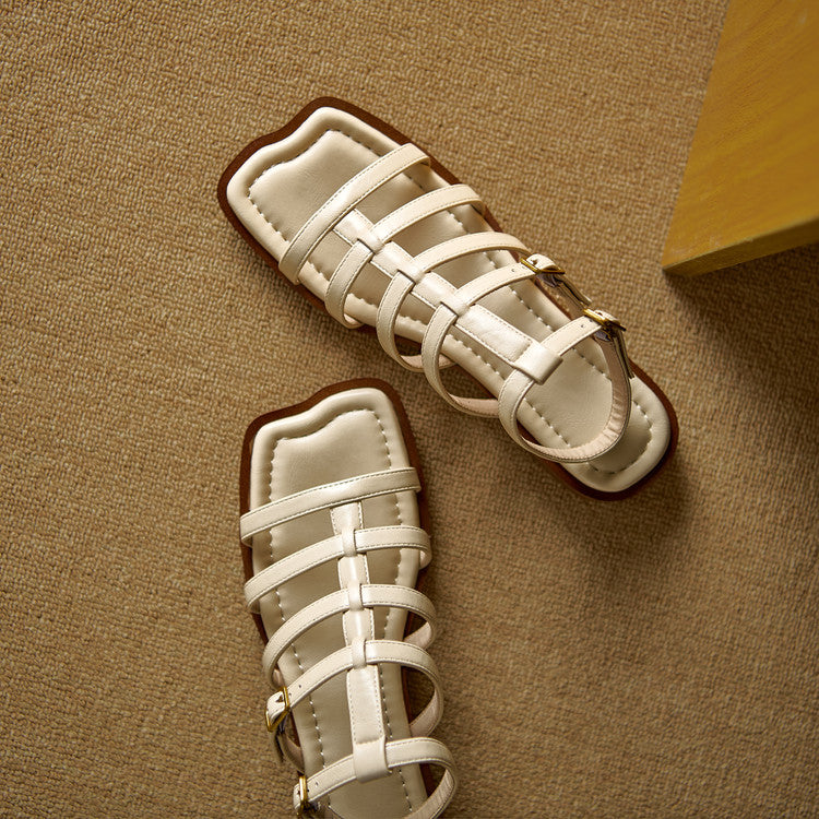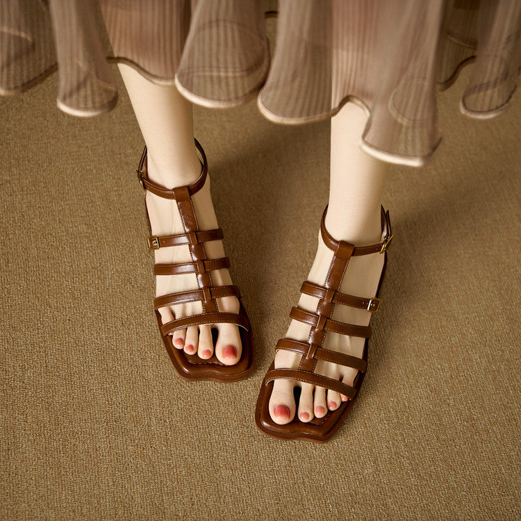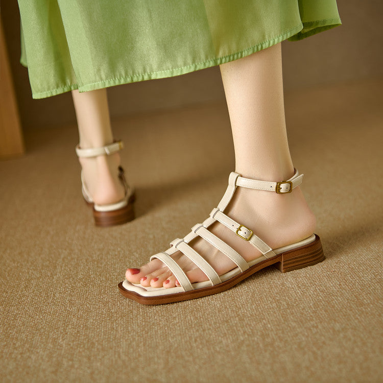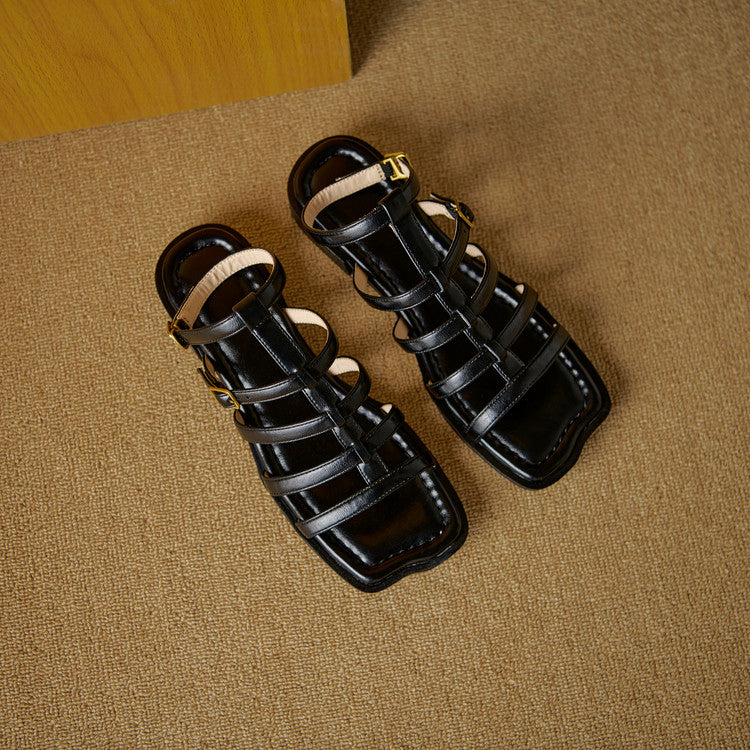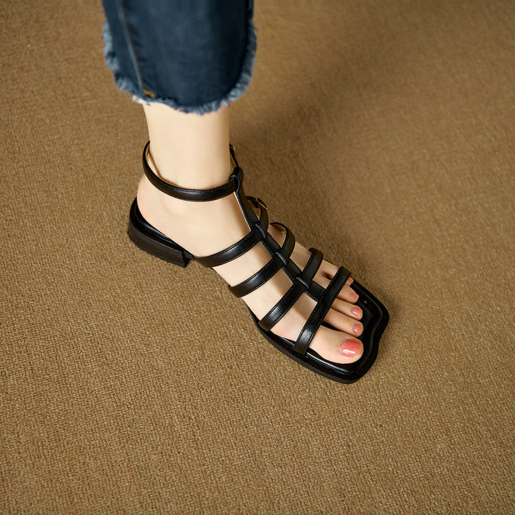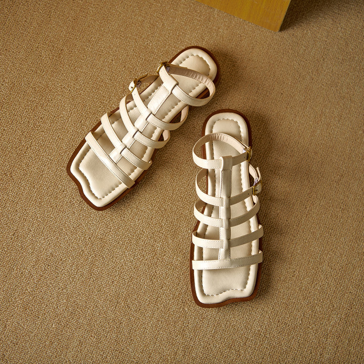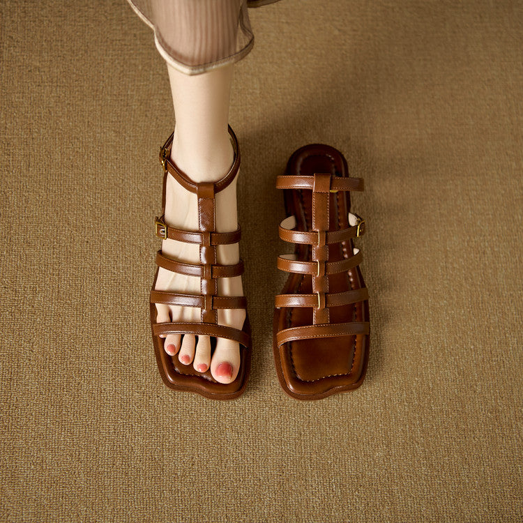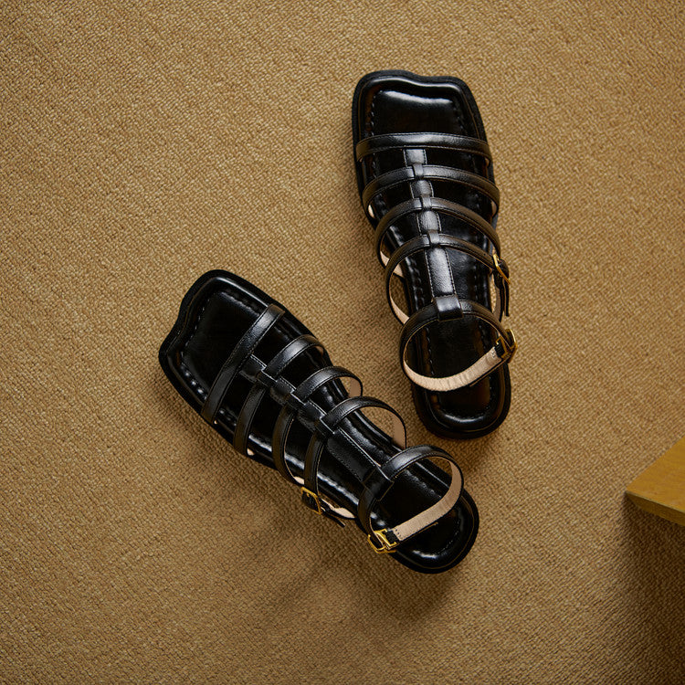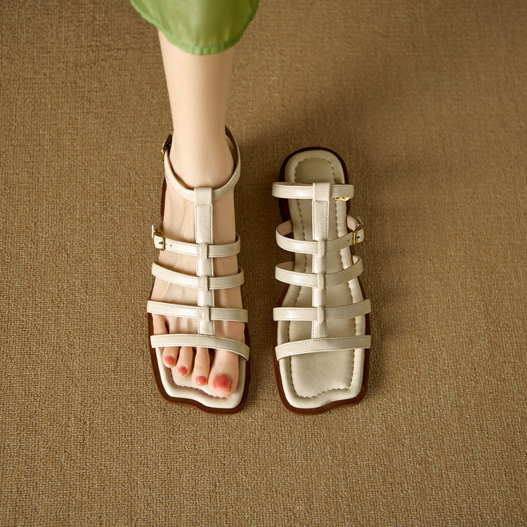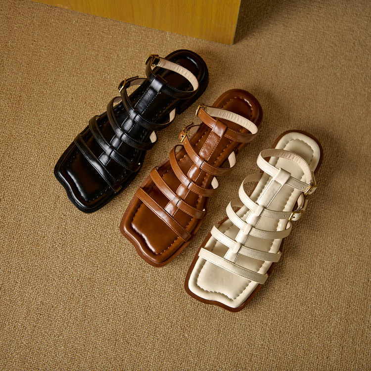 Women's Leather Summer Roman Style Comfortable Ankle Buckle Sandals