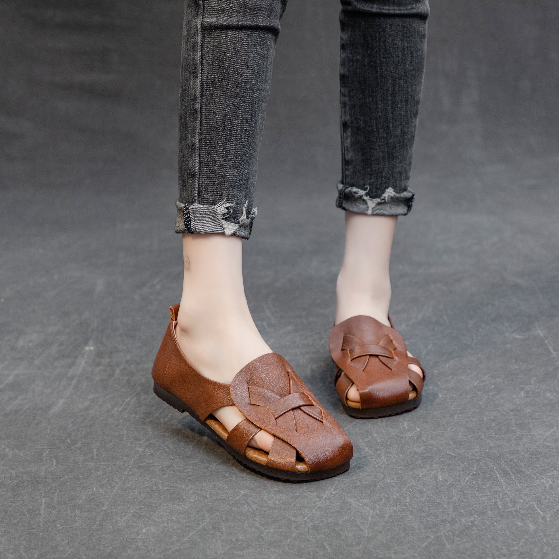 Women's Leather Summer Woven Hollow Out Flat Breathable Sandals