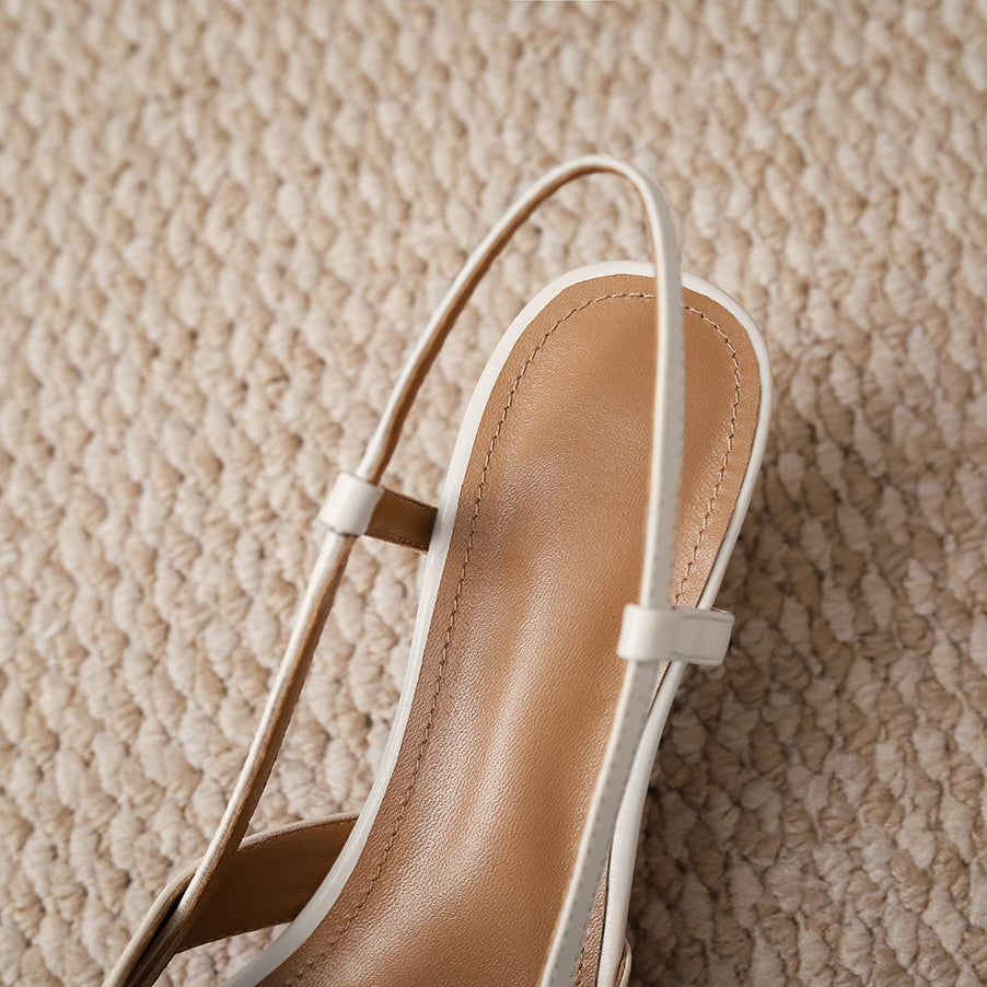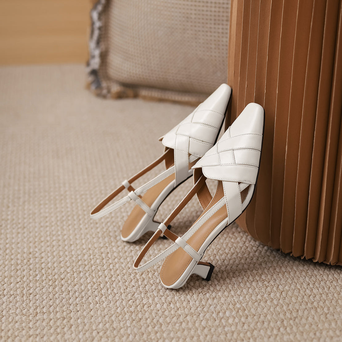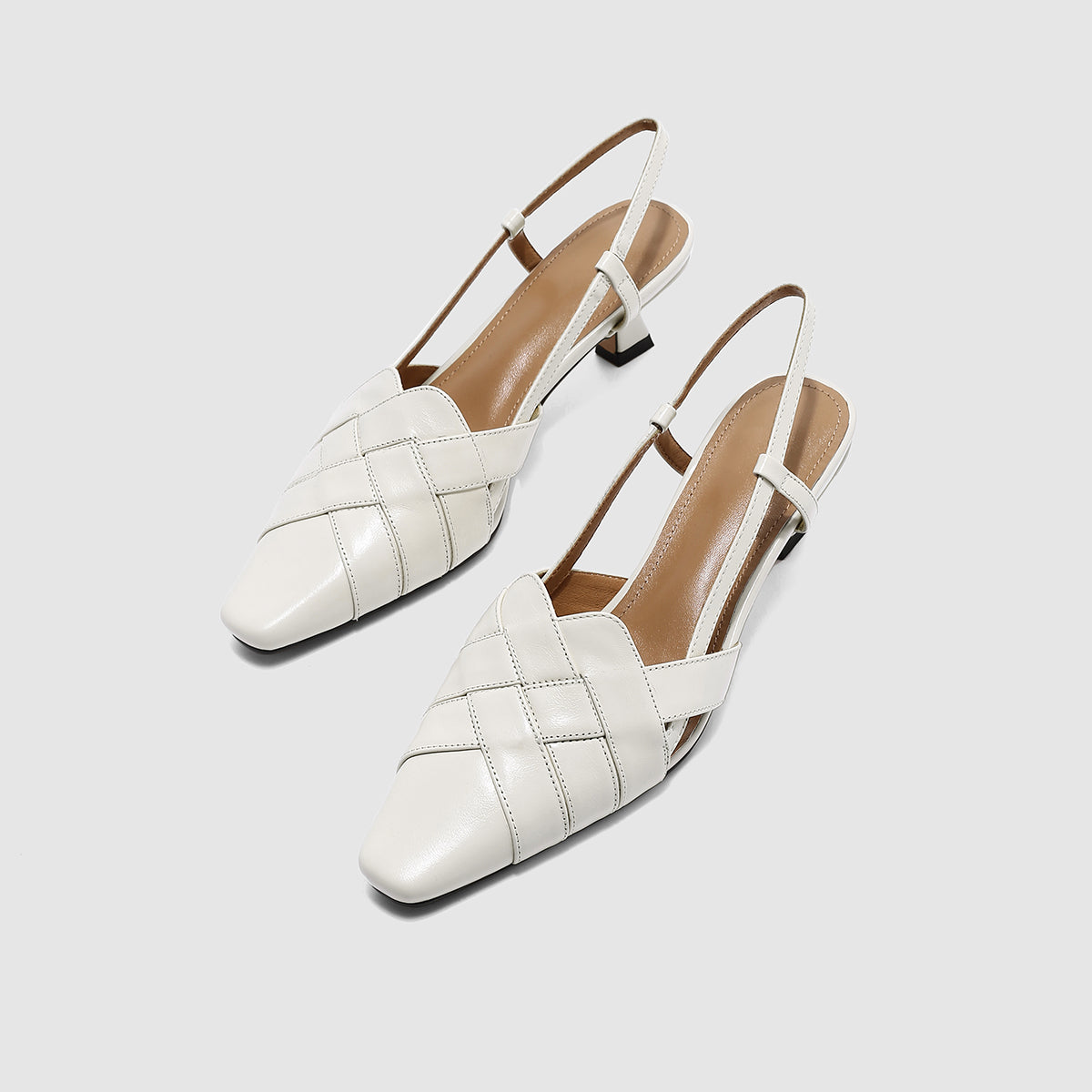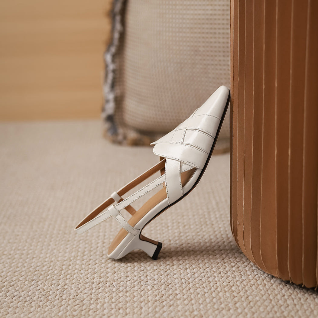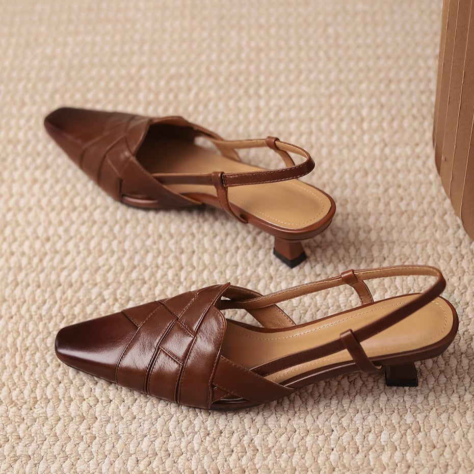 Women's Leather Woven Closed Toe Slingback Kitten Heel Sandals