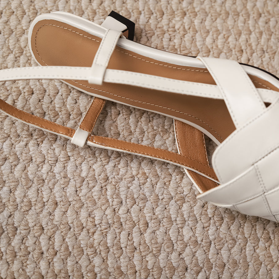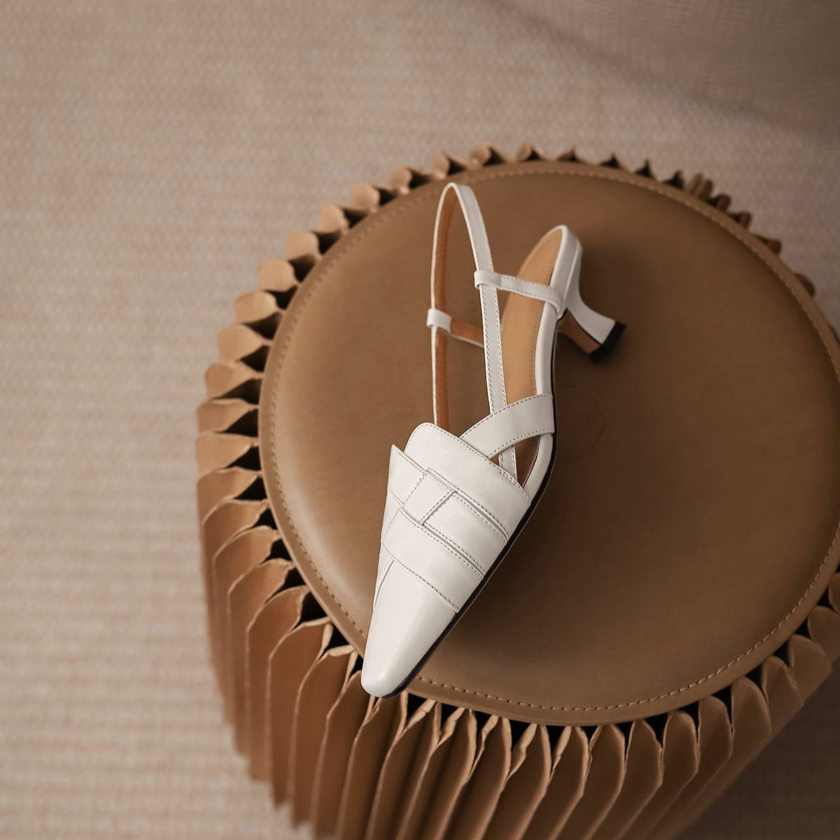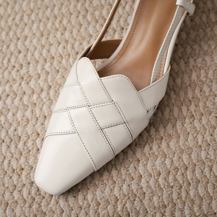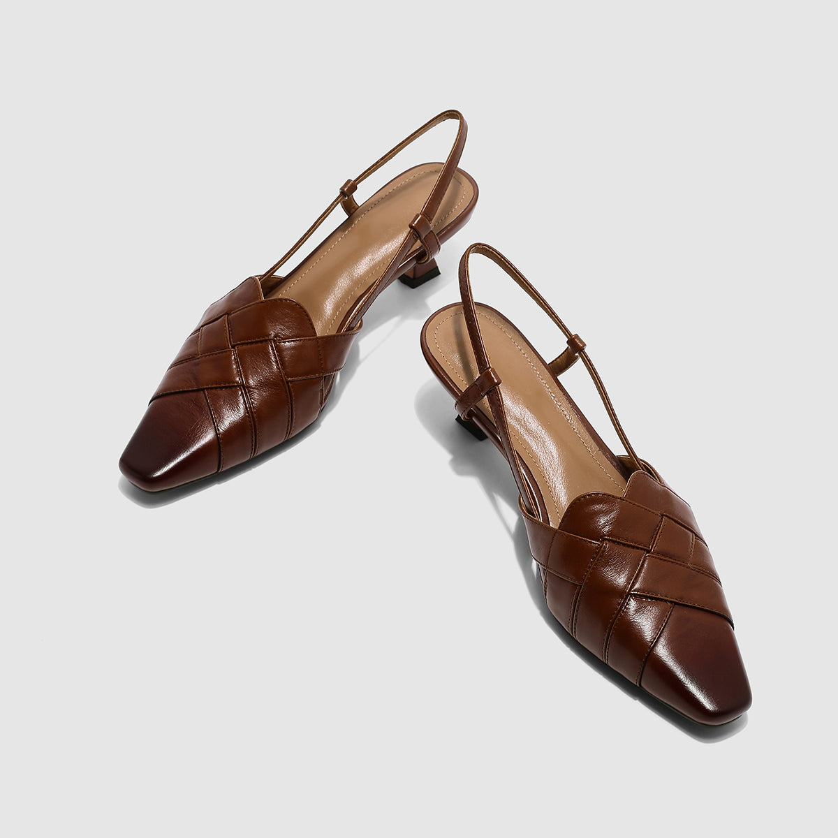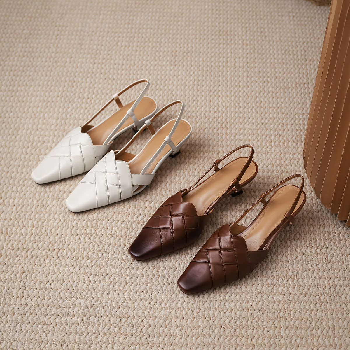 The LuxeWeave SlingLuxe is an elegant women's sandal that combines artisanal craftsmanship with modern comfort. Featuring a handwoven cowhide upper, this sophisticated design offers breathability through its pigskin lining and natural sheepskin insole. The 4.5cm kitten heel and flexible TPR sole provide stable elevation for all-day wear, while the closed square toe offers refined coverage.