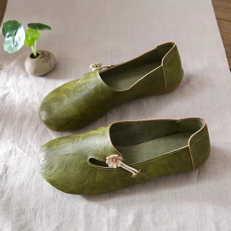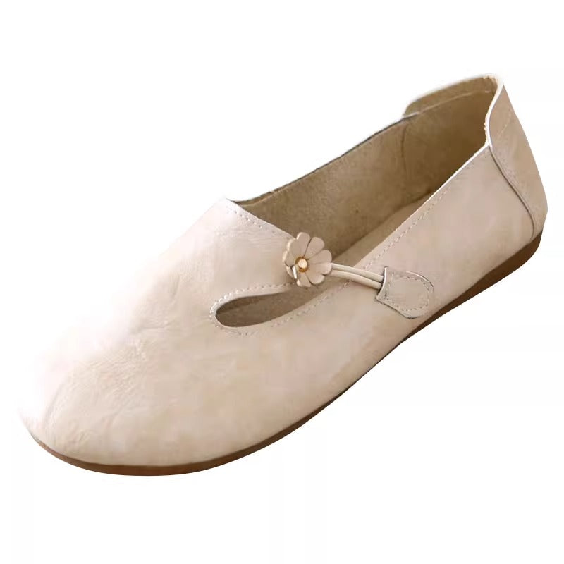 Women's Literary Style Moral Girl Flower Decoration Comfortable Slip-on Flat Shoes