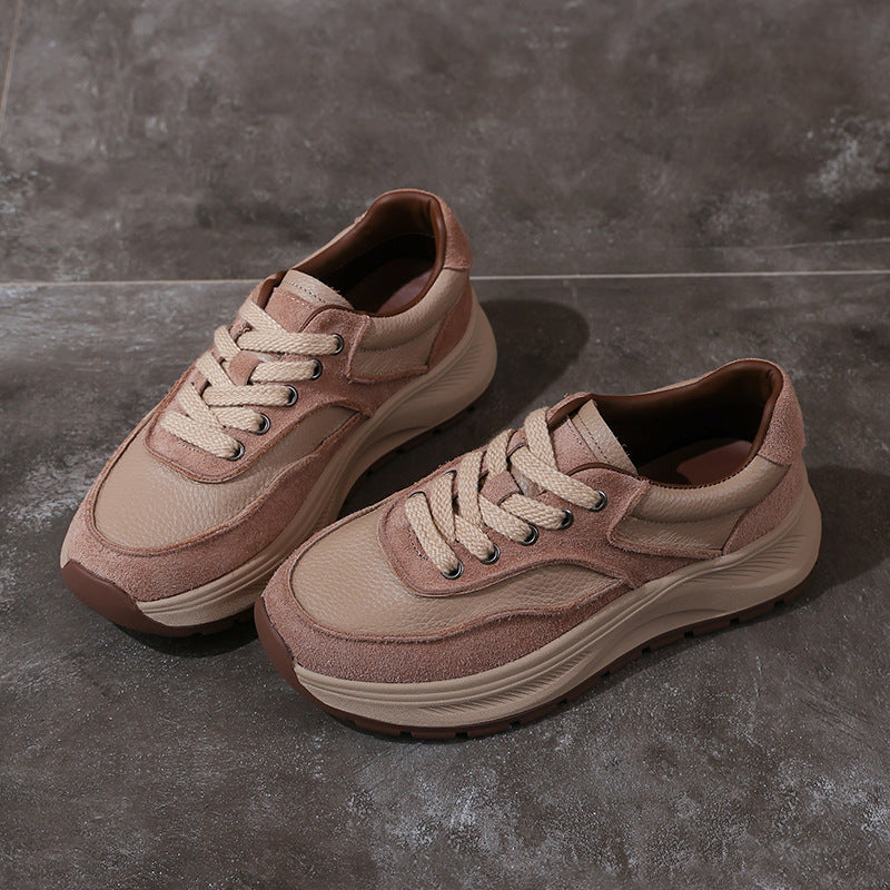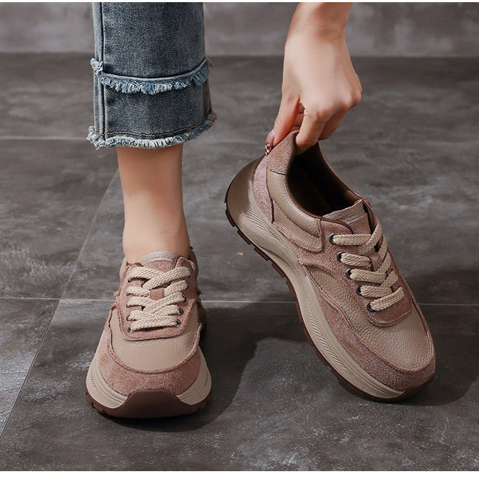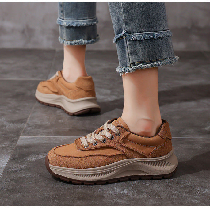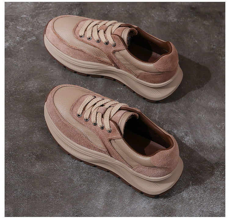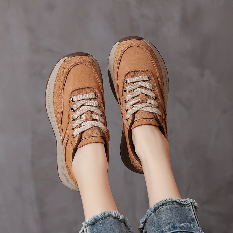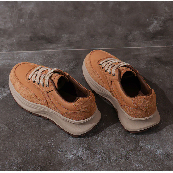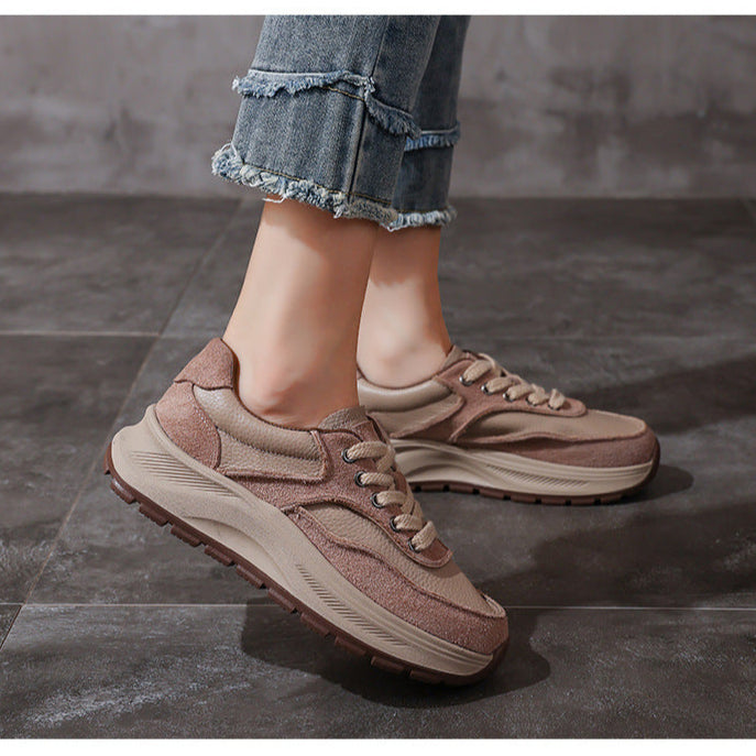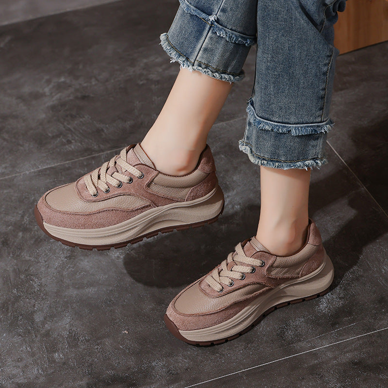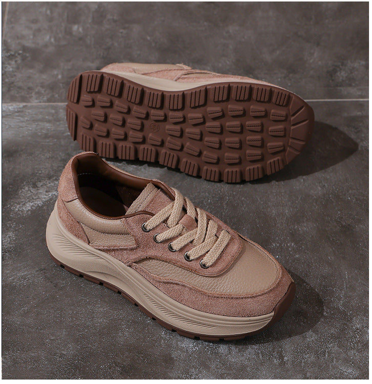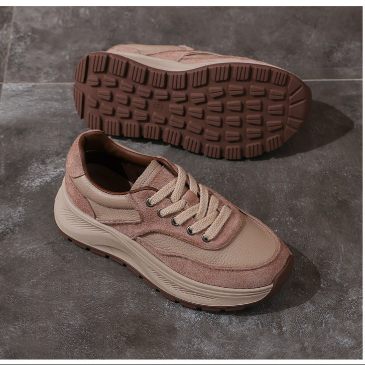 Women's Non-Slip Leather Platform Sneakers – Retro Chunky Sole Design