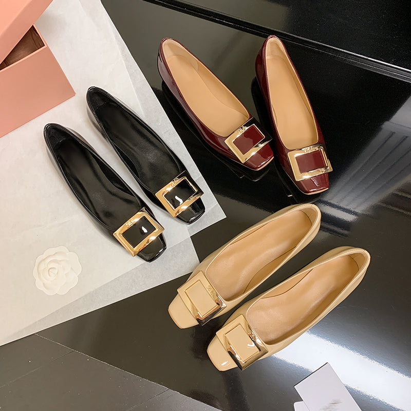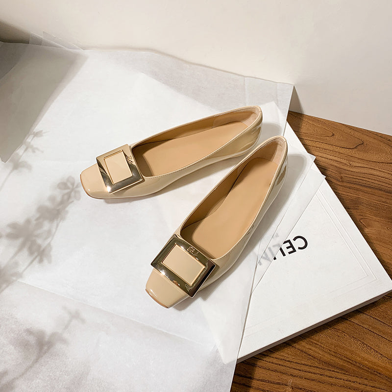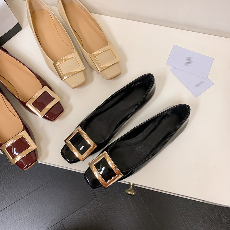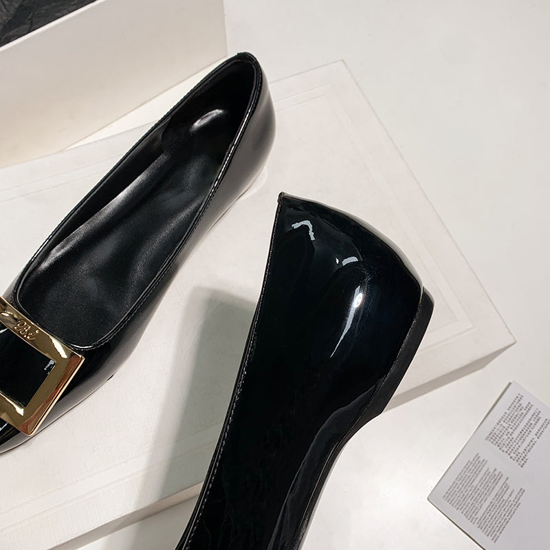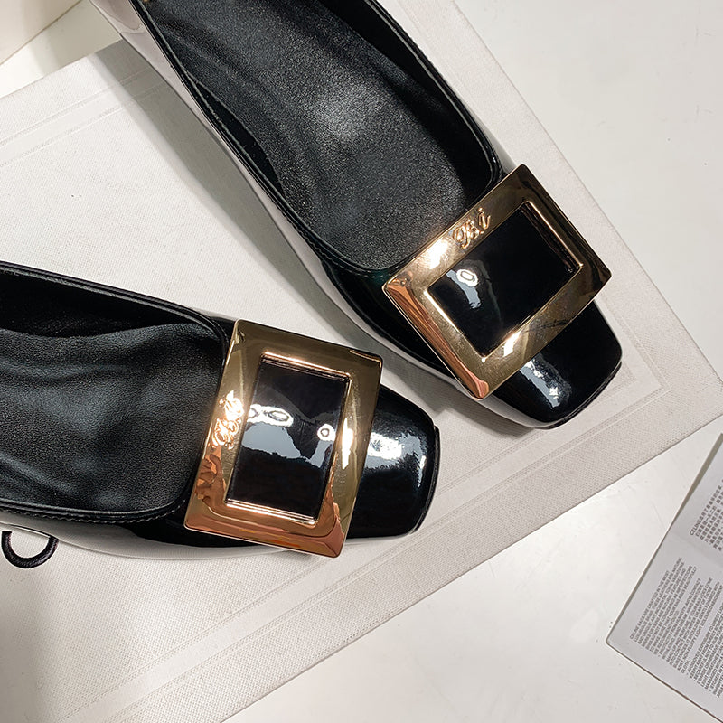 Women's Patent Leather Ballet Shoes Square Metal Buckle Decoration