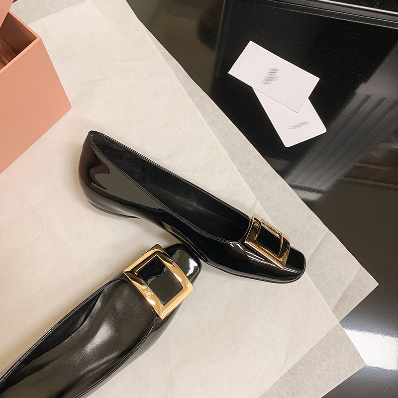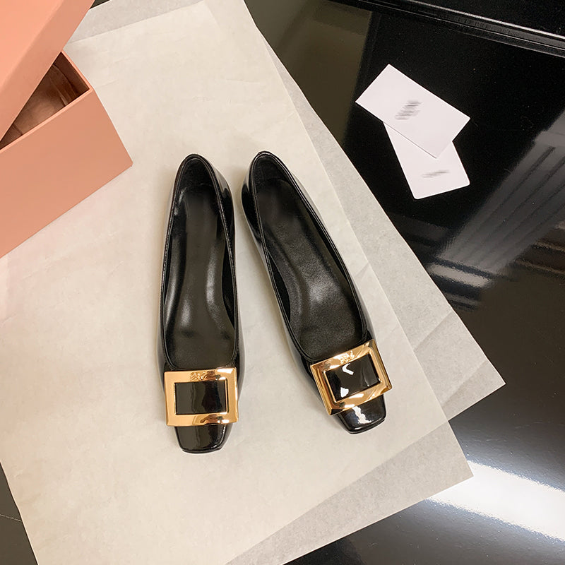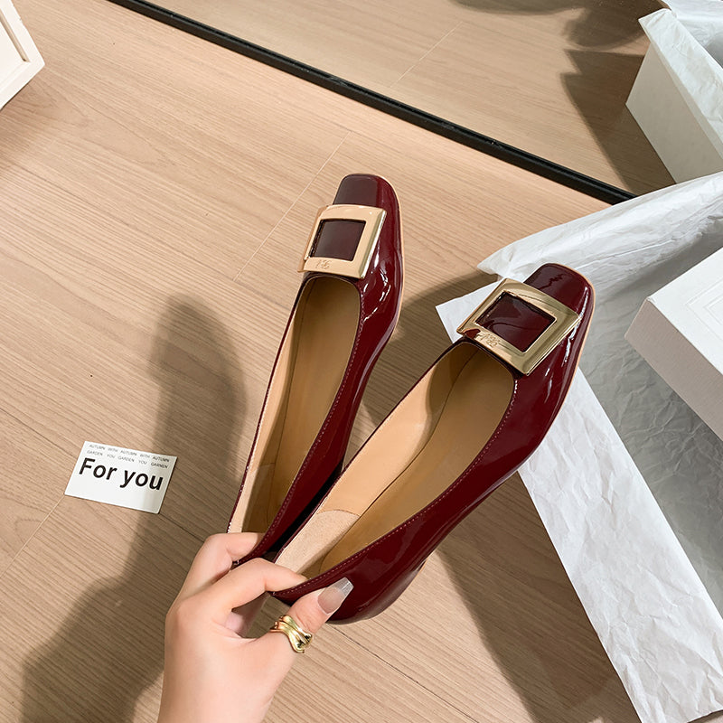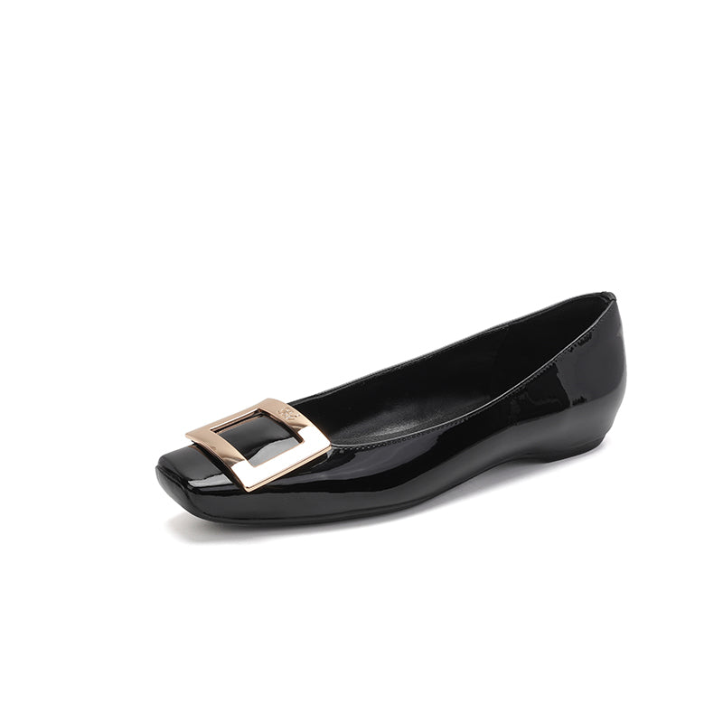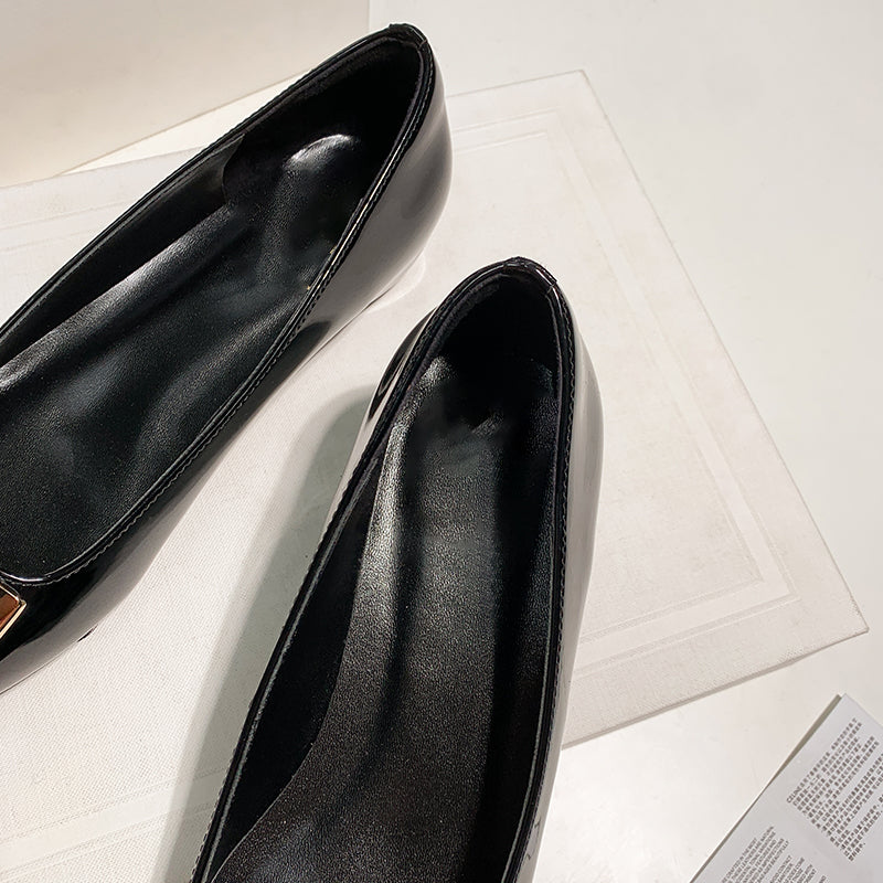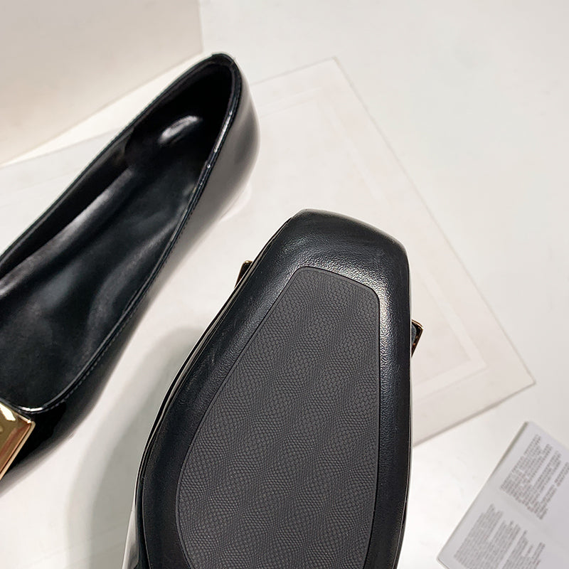 Women's Patent Leather Ballet Shoes Square Metal Buckle Decoration