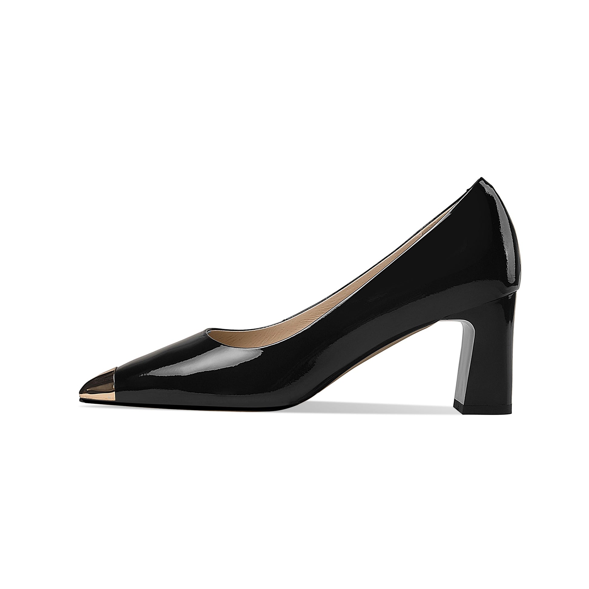 The ExecutivePoint PumpLuxe is a professional women's pump designed for boardroom confidence and all-day comfort. Crafted from high-shine patent cowhide, this sophisticated style features a breathable pigskin lining and soft sheepskin insole for premium comfort. The 7cm block heel and flexible TPR sole provide stable elevation, while the sharp pointed toe elongates the silhouette.