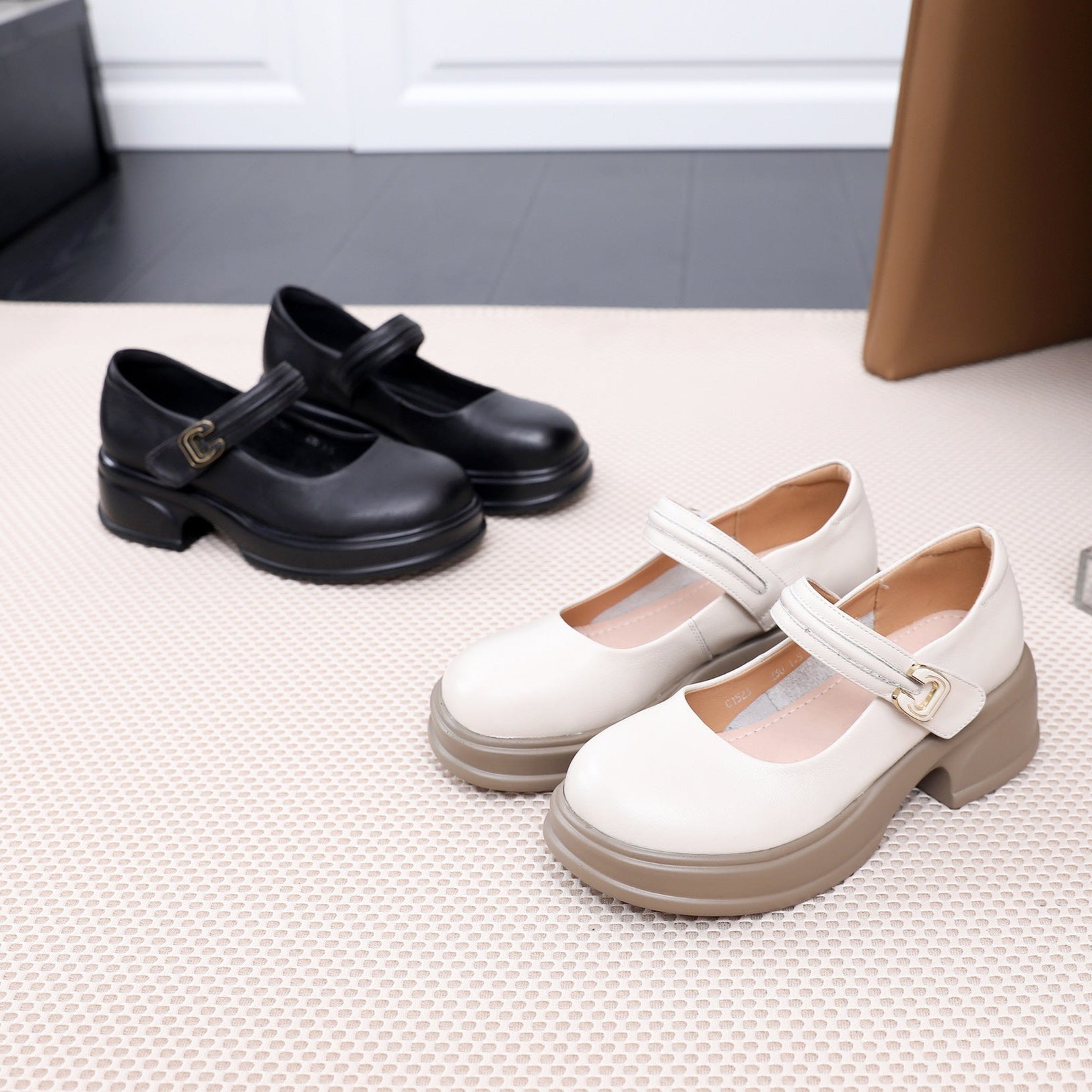 Women's Platform Leather Mary Jane Heels – Chunky Heel Velcro Strap Shoes