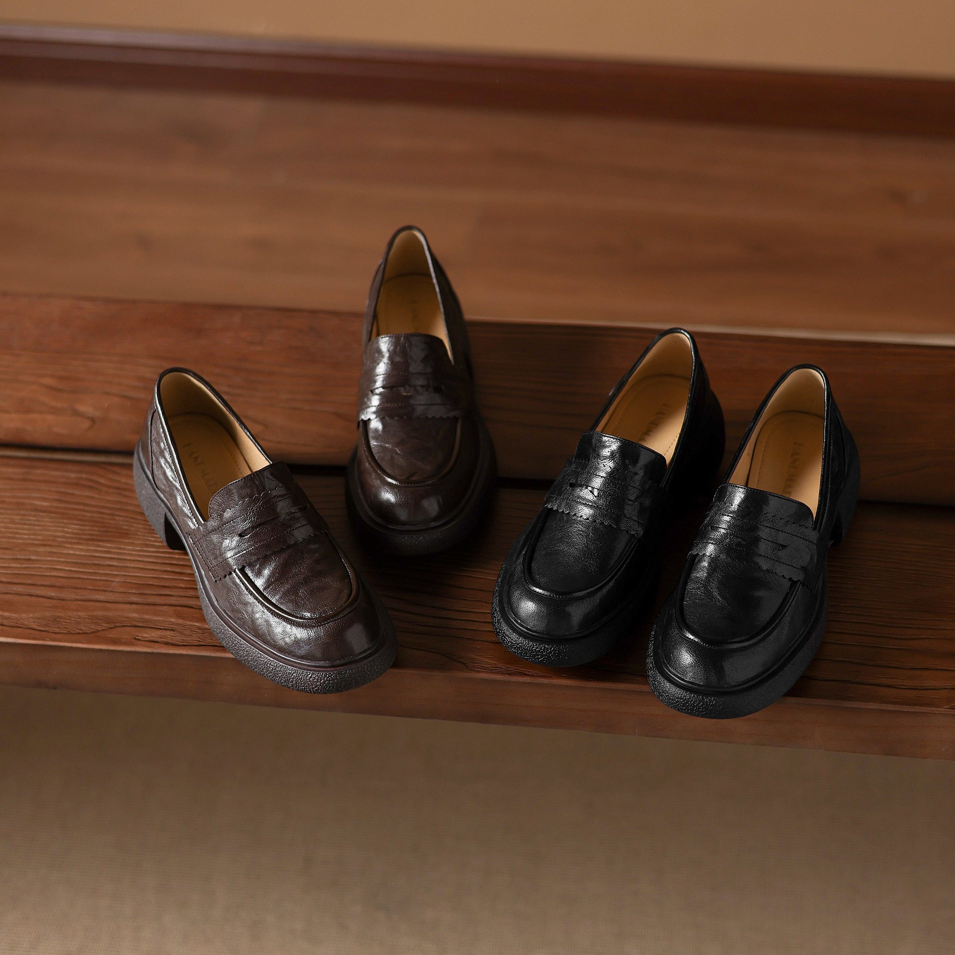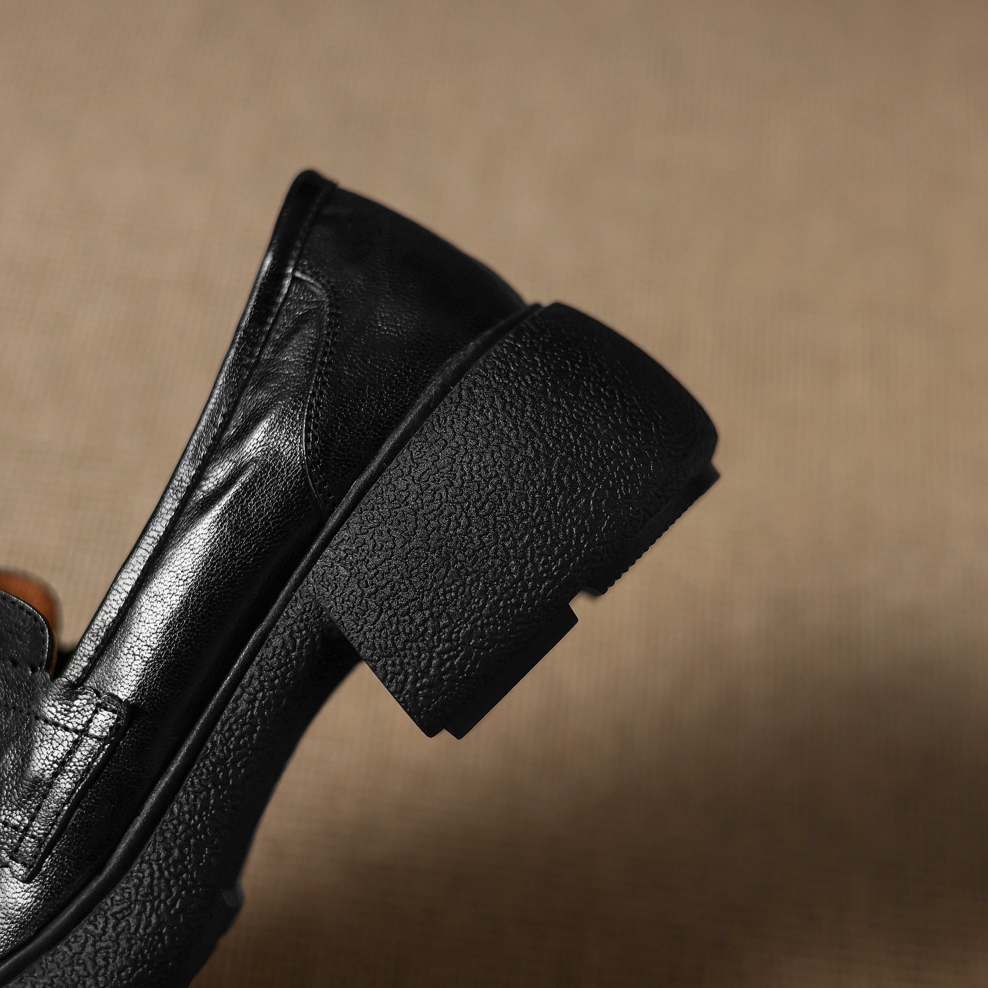 Women's Platform Sheepskin Loafers – Block Heel Slip-On Style