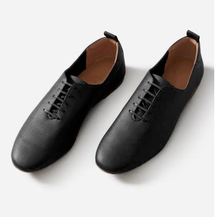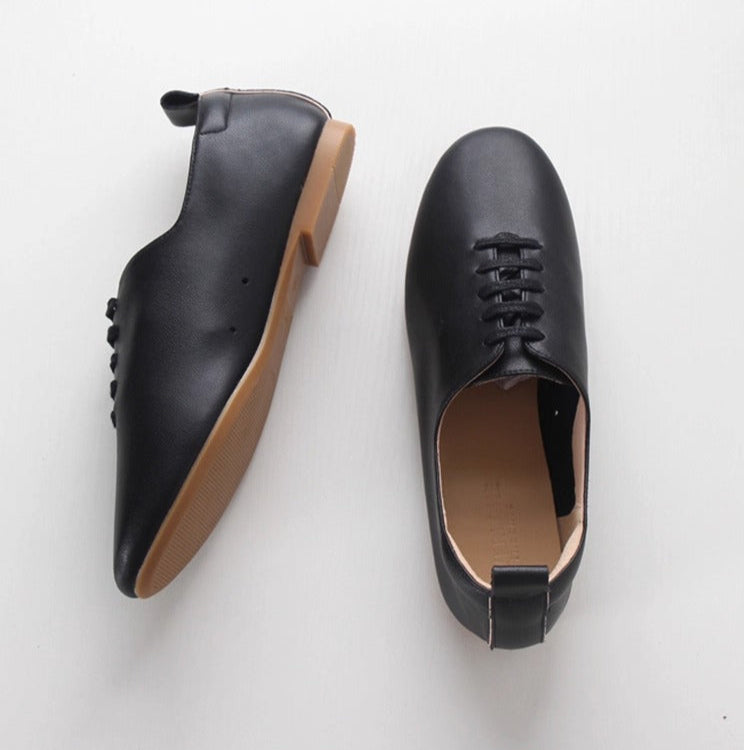 Women's Preppy Round Toe Leather Flats – Comfortable Soft Sole