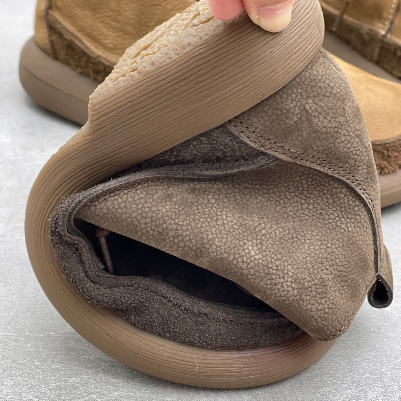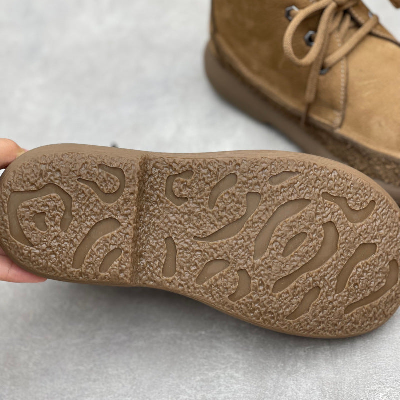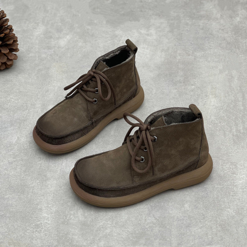 Women's Retro Leather Patchwork Boots – Lace-Up Soft Short Ankle Shoes