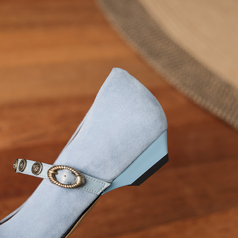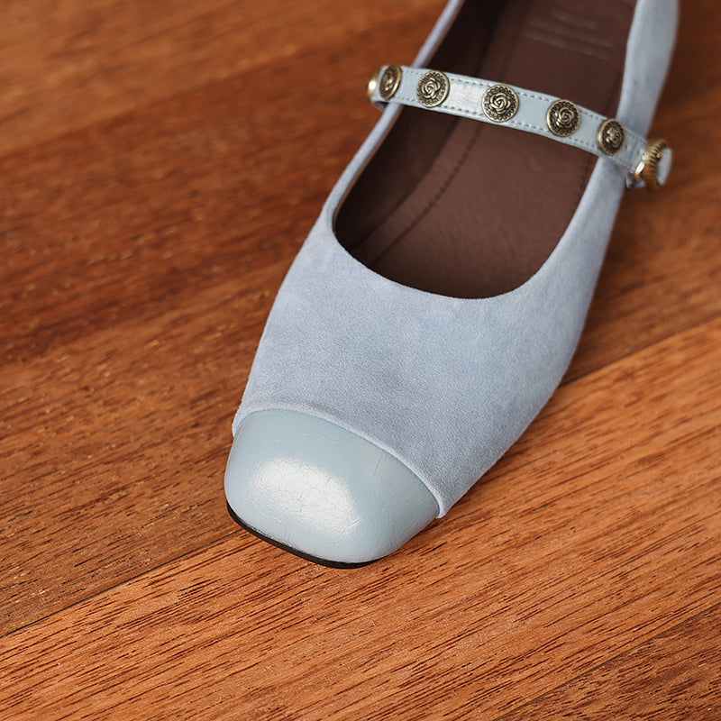 Women's Retro Patchwork Suede Buckle Up Low Heel Mary Jane Shoes