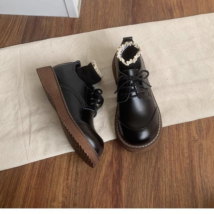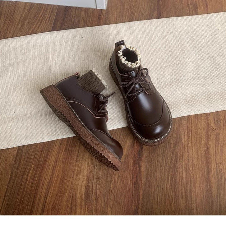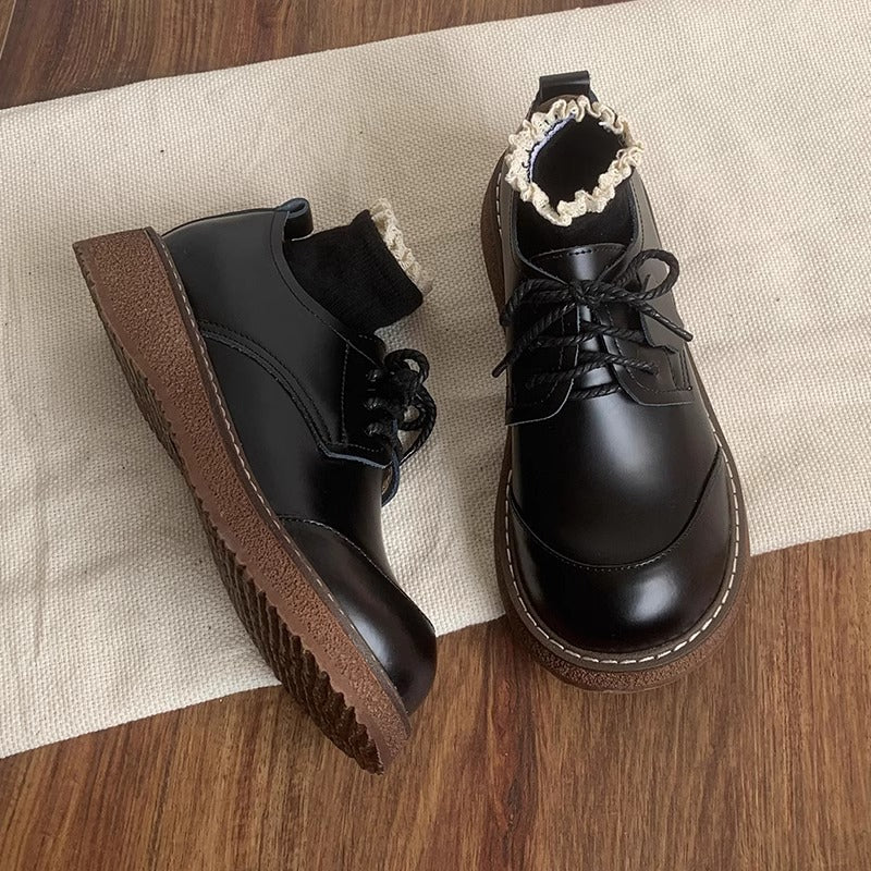 Women's Round Toe British Scholastic Style Derby Shoes