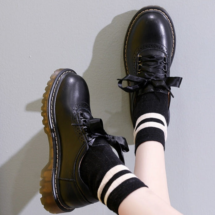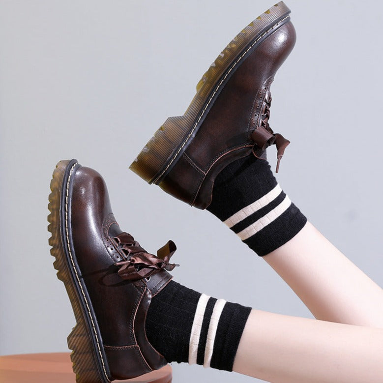 These retro lace-up flats are sure to add a touch of comfort and style to any outfit. With their round toe design, they provide both retro charm and modern comfort. Show off your unique fashion sense with these quirky oxfords!