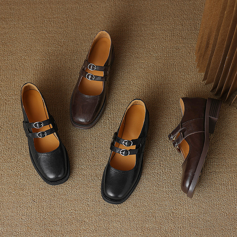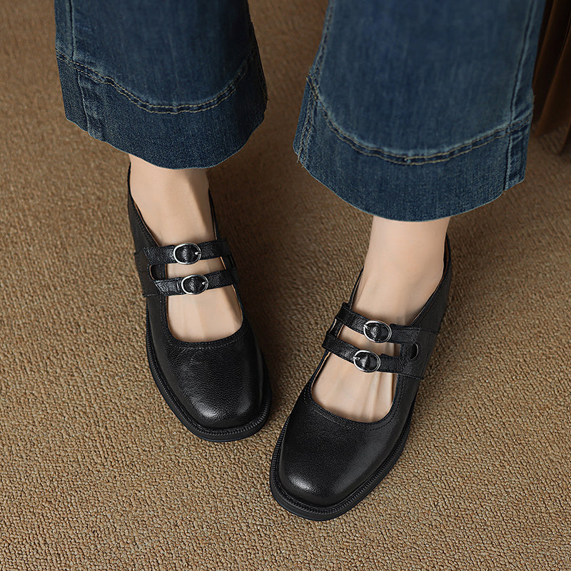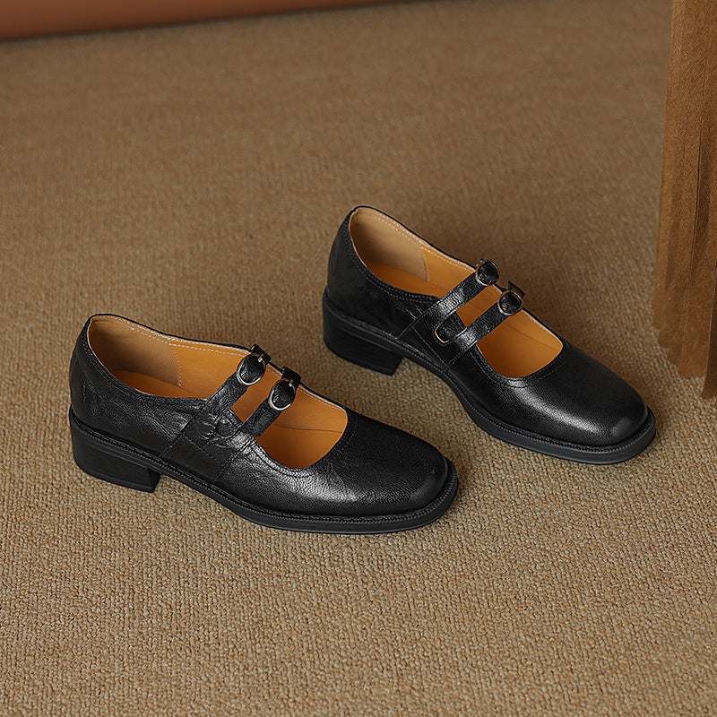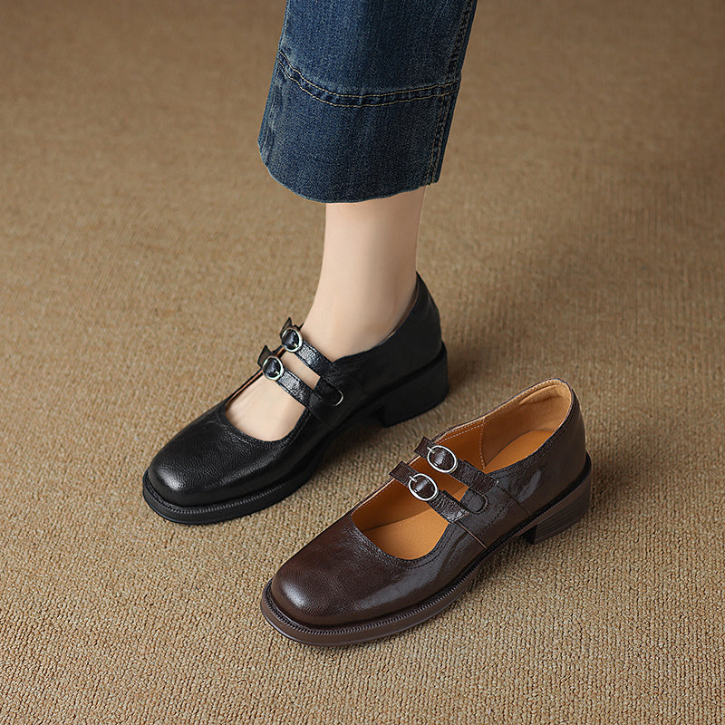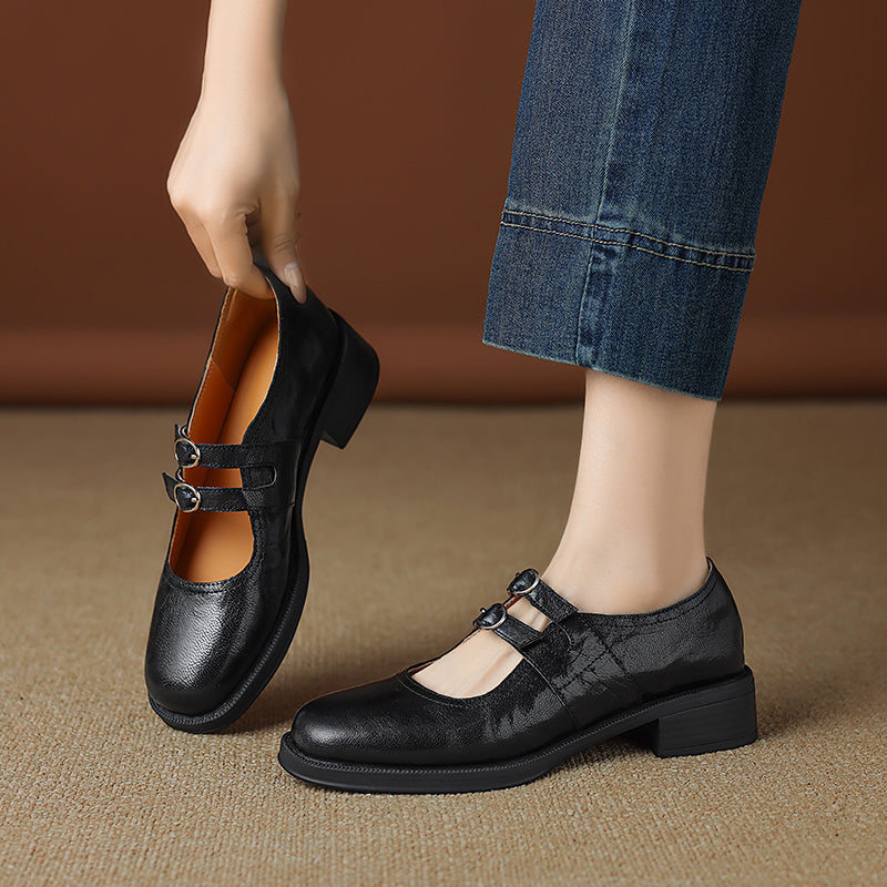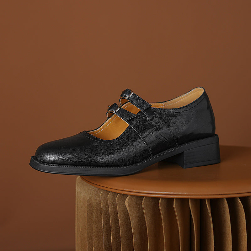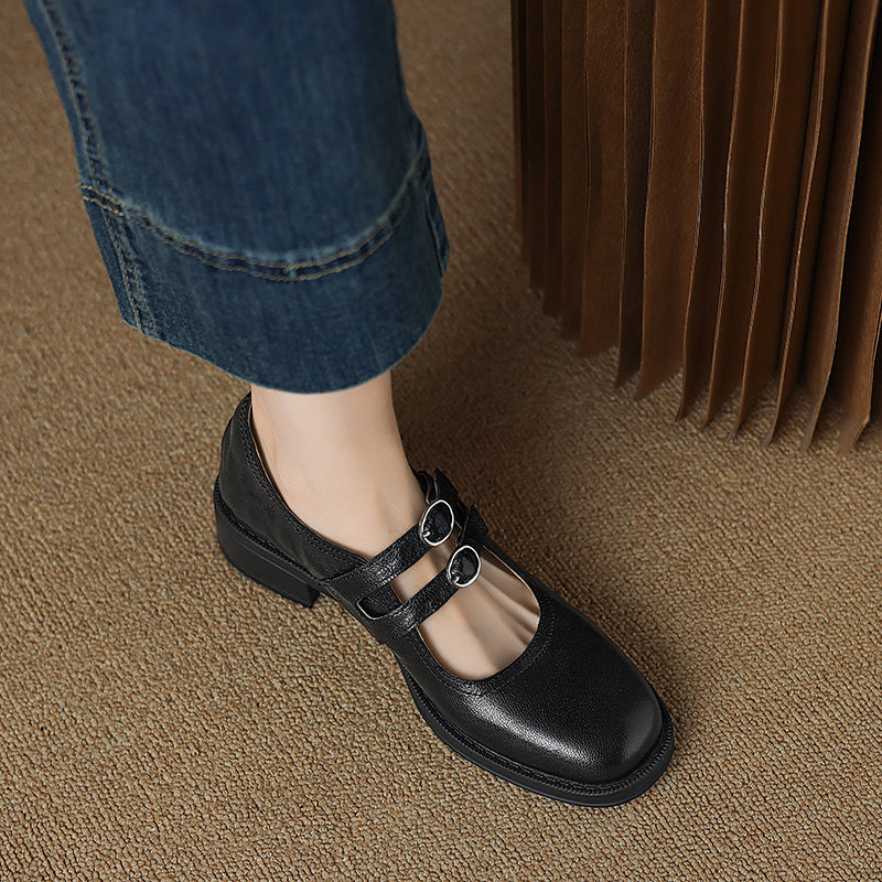 Step into timeless elegance with these handcrafted Mary Jane shoes, featuring premium sheepskin leather and a walkable 4.5cm block heel. The double buckle detail adds a contemporary twist to this enduring silhouette, perfect for transitional seasons.