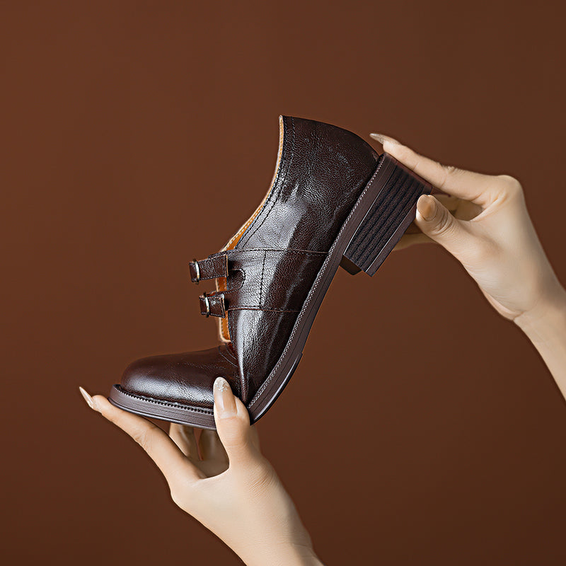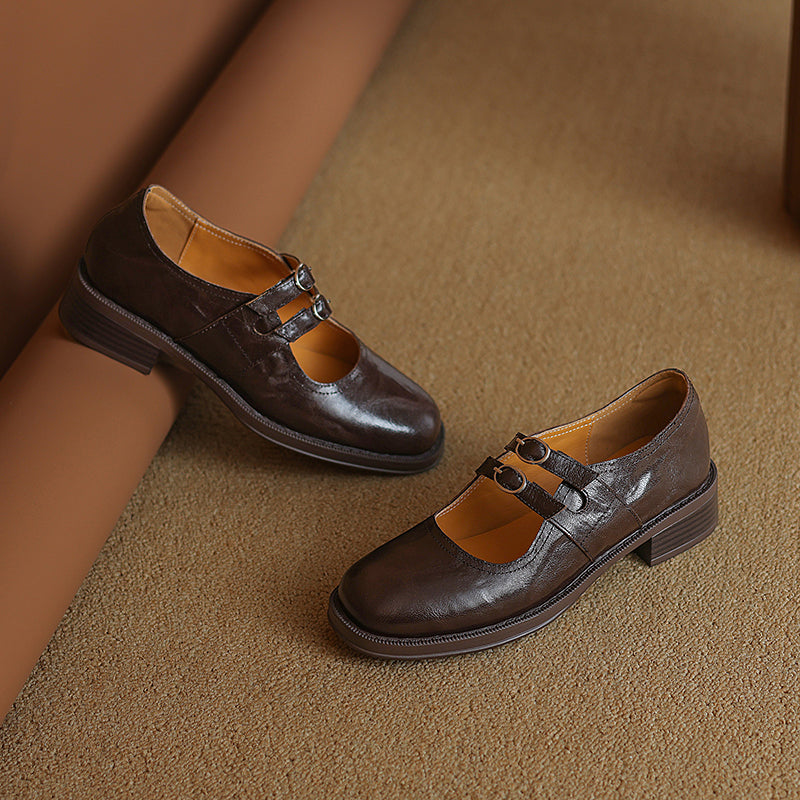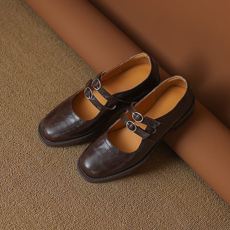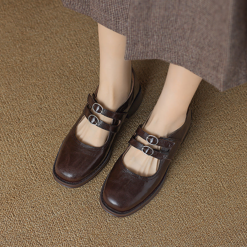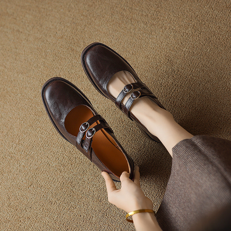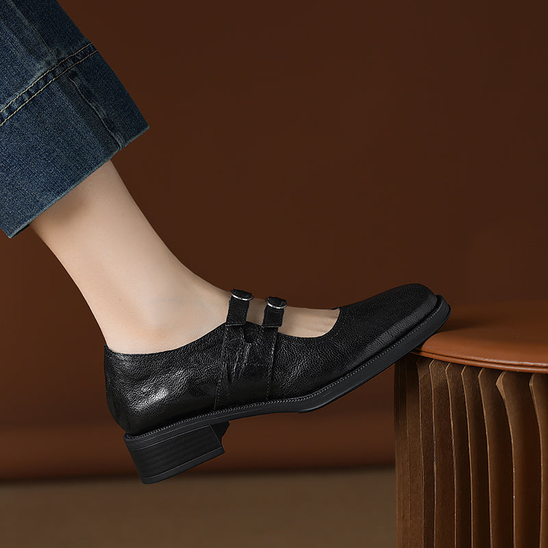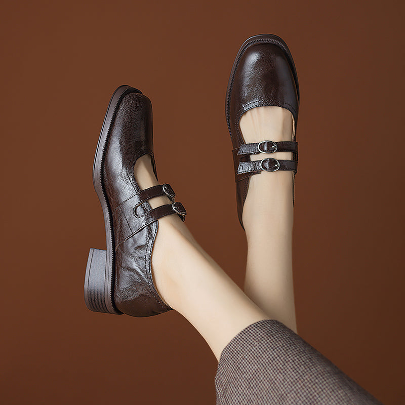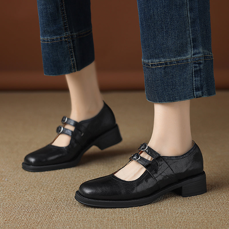 Step into timeless elegance with these handcrafted Mary Jane shoes, featuring premium sheepskin leather and a walkable 4.5cm block heel. The double buckle detail adds a contemporary twist to this enduring silhouette, perfect for transitional seasons.