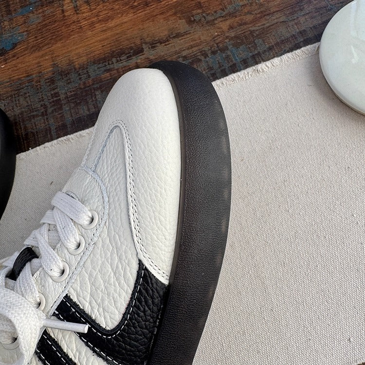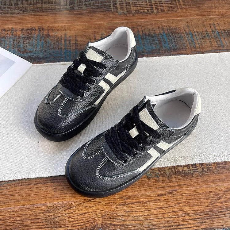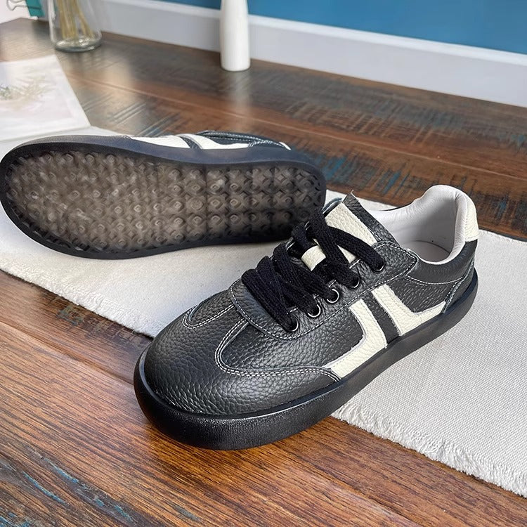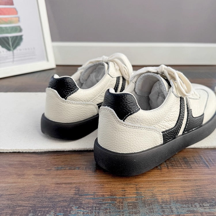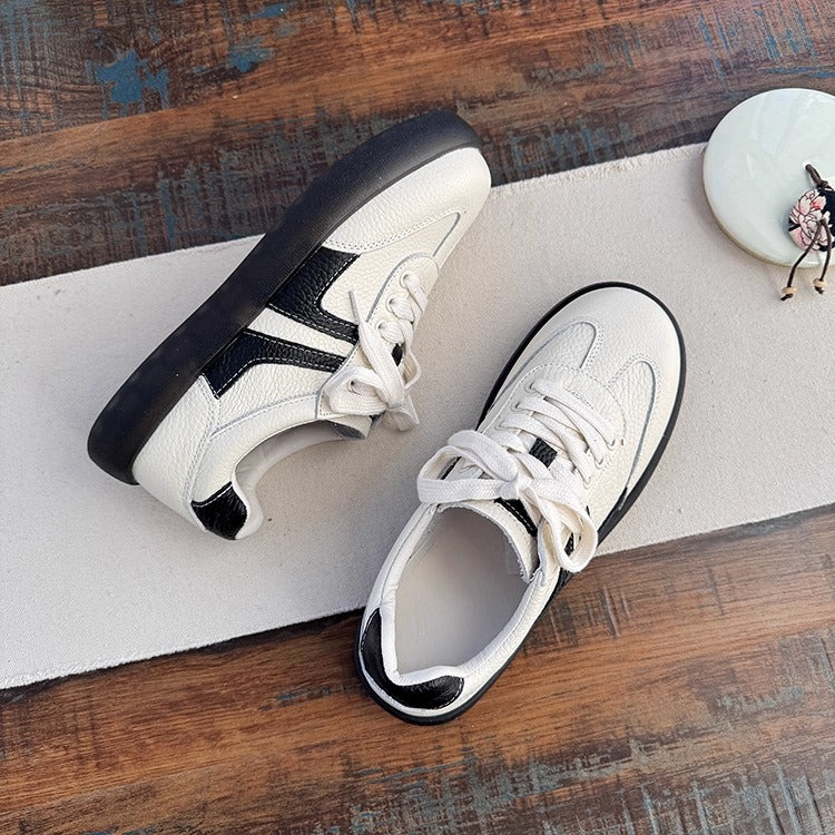 Women's Soft Leather Lace-Up Sneakers – Casual & Comfortable Style Tennis Shoes