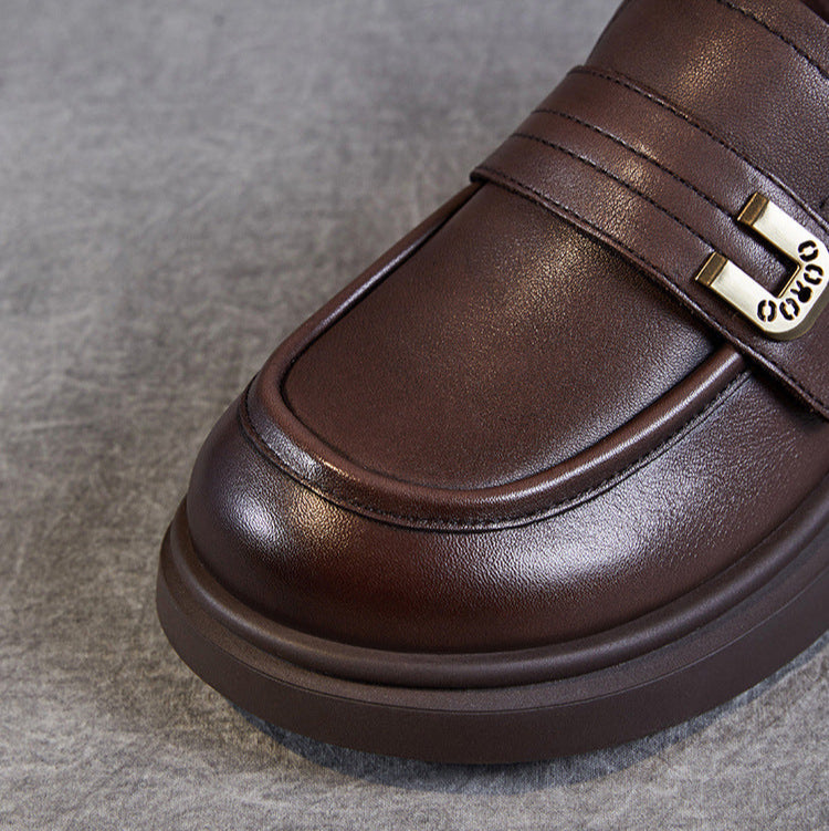 Women's Soft Leather Low Heel Loafers – Comfortable Everyday Slip-On Shoes