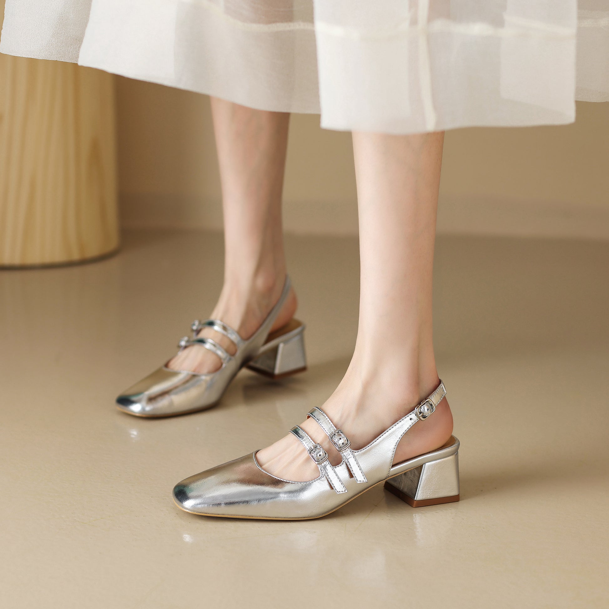 The ChicStrap MaryJane is an elegant women's sandal that combines vintage charm with contemporary style. Featuring a premium cowhide upper, this sophisticated design showcases double adjustable straps with refined buckles for a secure fit. The soft pigskin lining and breathable sheepskin insole provide cloud-like comfort, while the 4.5cm block heel and flexible TPR sole deliver stable support for all-day wear.