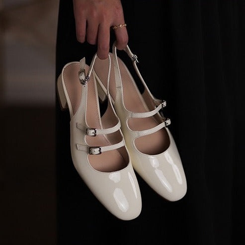 Elegant Leather Mary Jane Low Heel Sandals – Slingback Summer Shoes for Women