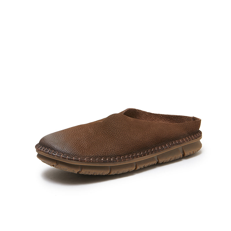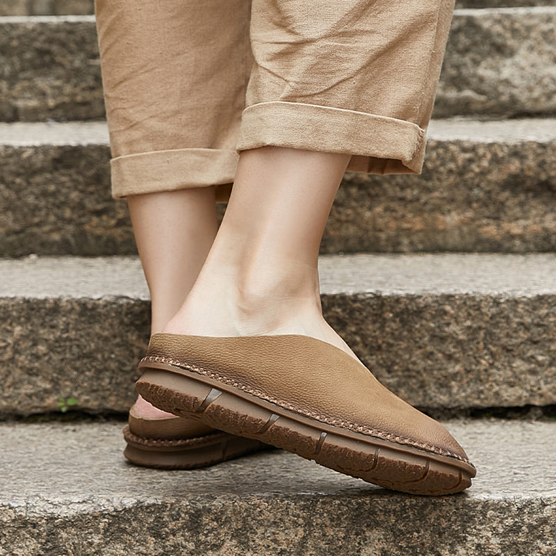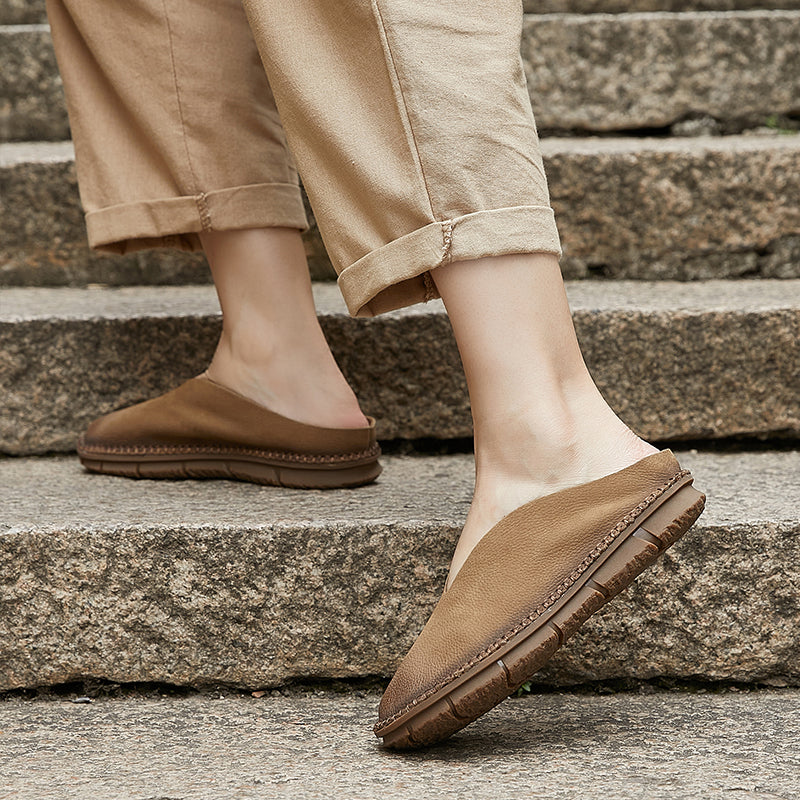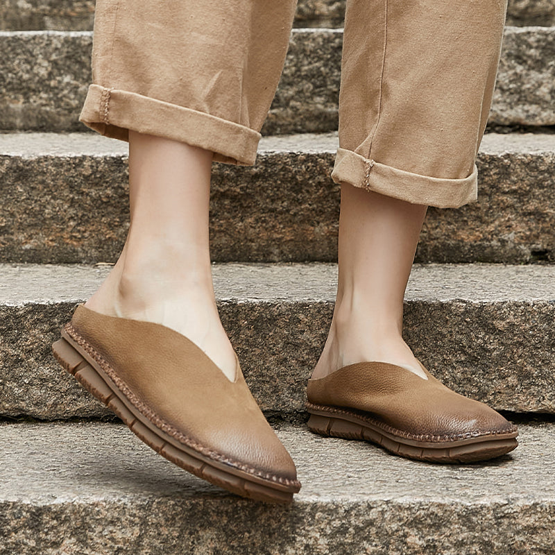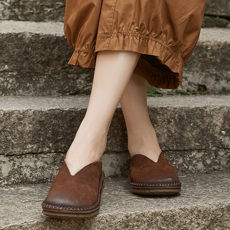 Women's V-Cut Soft Leather Flat Mules – Retro Minimalist Style