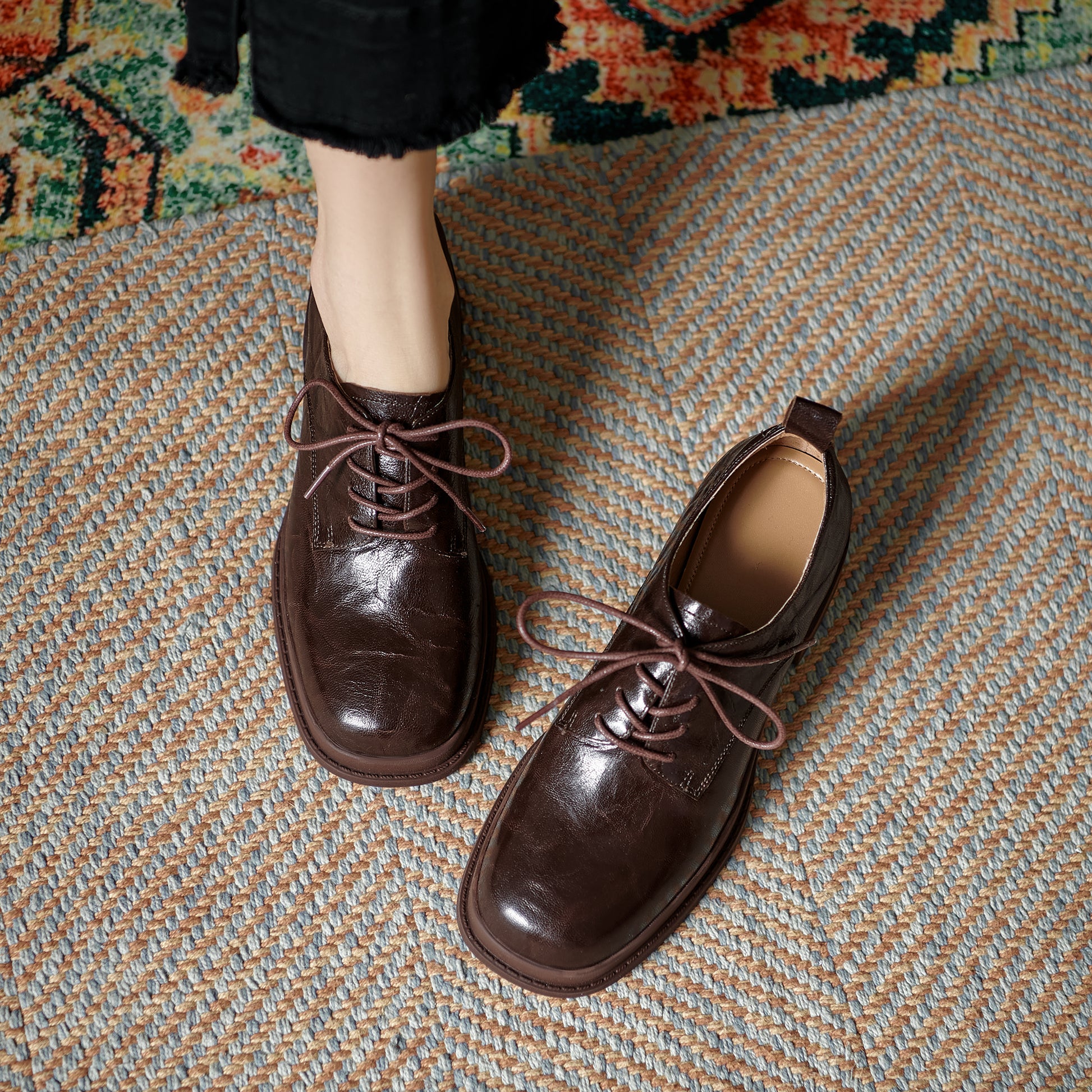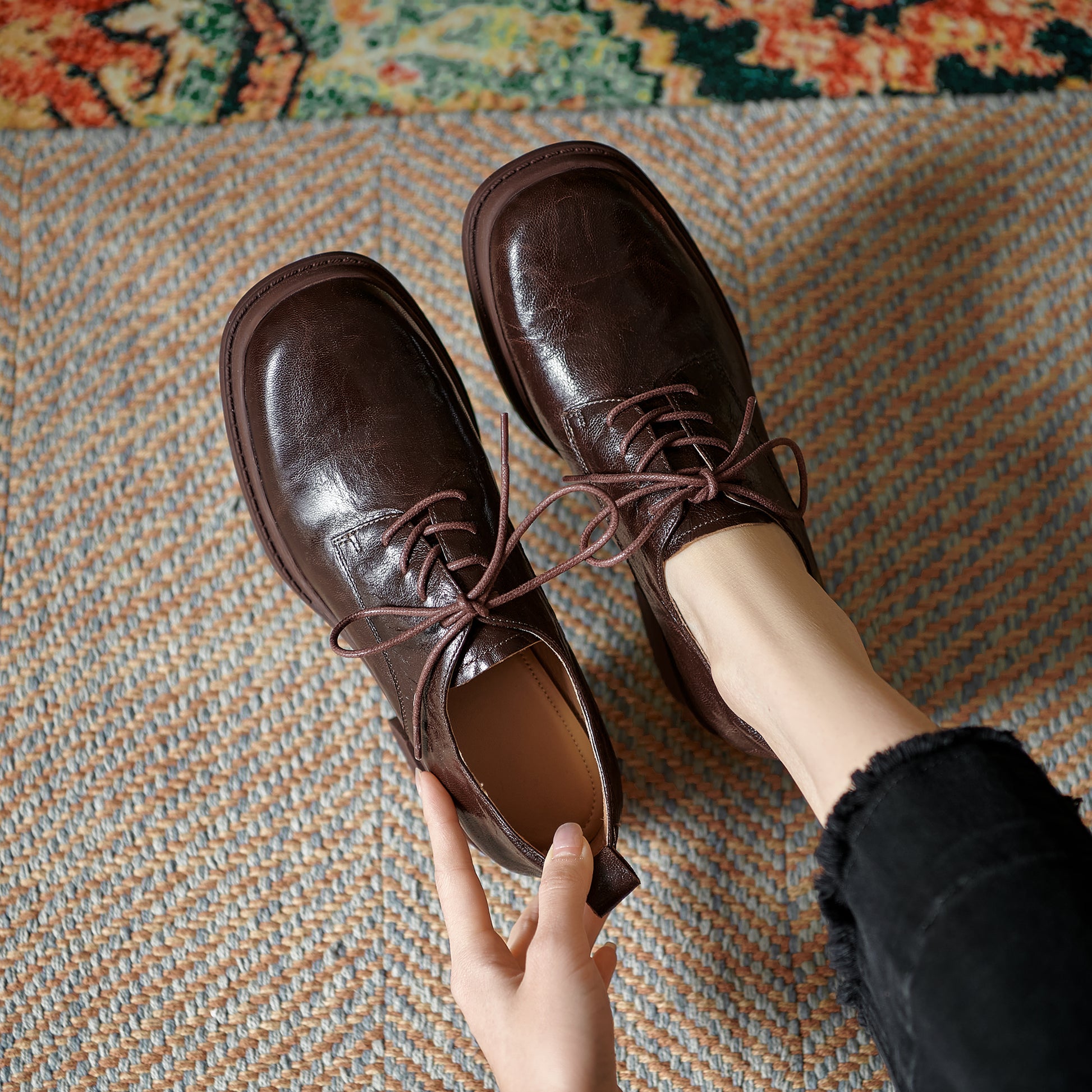 The ScholarStep OxfordLuxe is a refined women's lace-up that blends academic heritage with modern comfort. Handcrafted from buttery-soft lambskin, this intellectual-chic design features a breathable pigskin lining and plush sheepskin insole for all-day comfort. The 4.5cm block heel and flexible TPR sole provide scholarly elevation, while the round toe maintains classic proportions.