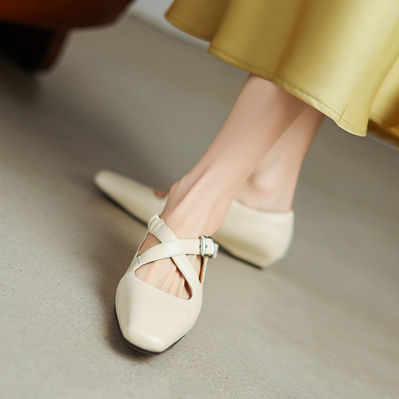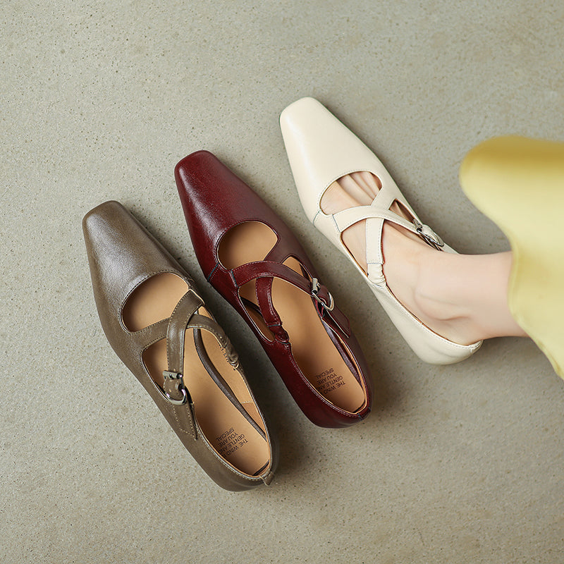 The VintageCross MaryJane is a charming women's shoe that blends vintage inspiration with modern comfort. Handcrafted from durable cowhide, this elegant design features a breathable pigskin lining and supportive cowhide insole for all-day wear. The 2.5cm low heel and flexible TPR sole provide subtle elevation, while the square toe and cross buckle strap create nostalgic appeal.