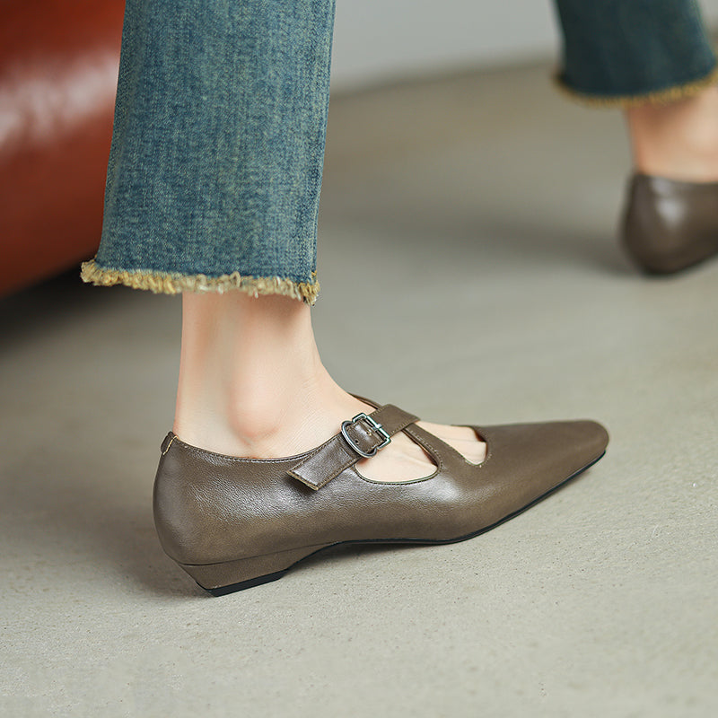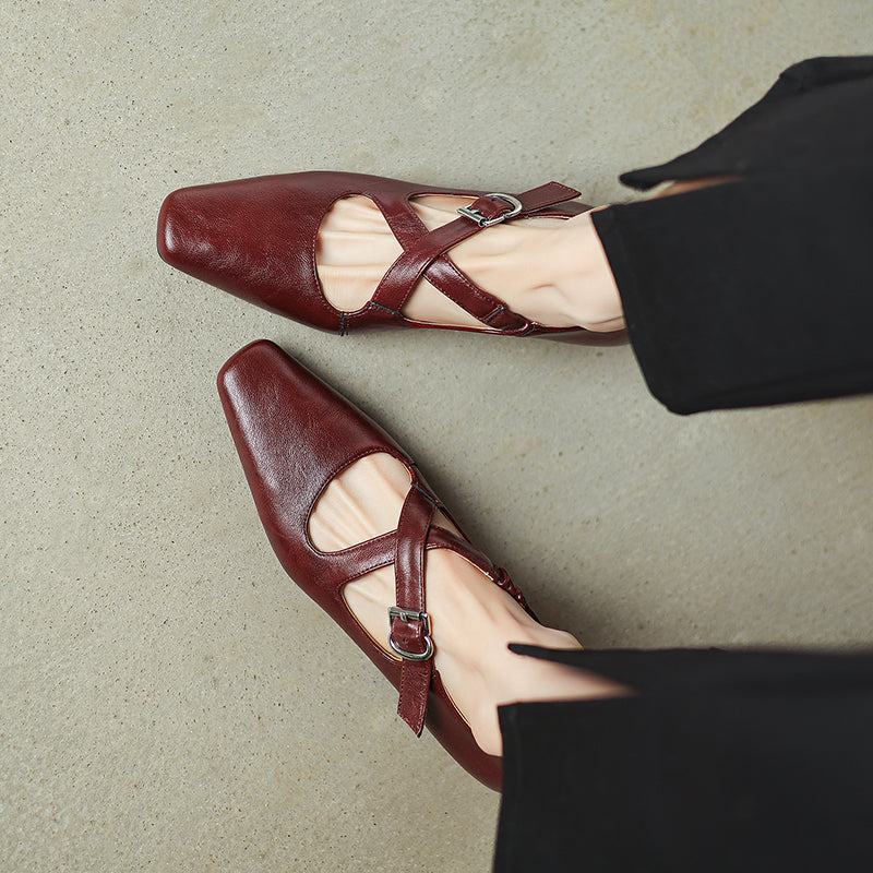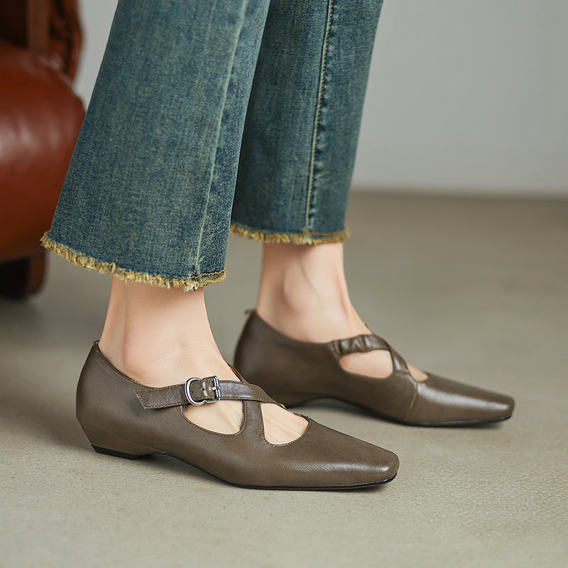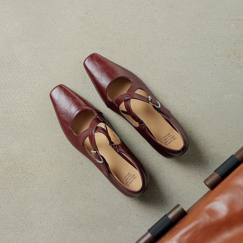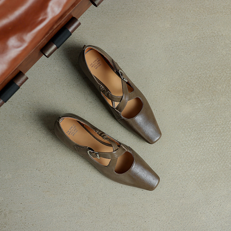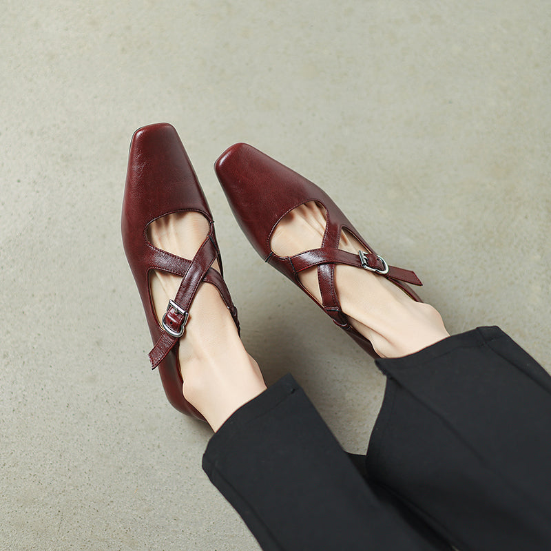 Womens Vintage Handmade Cross Buckle With Mary Jane Low Heels