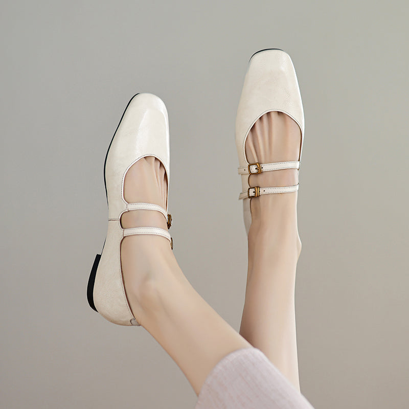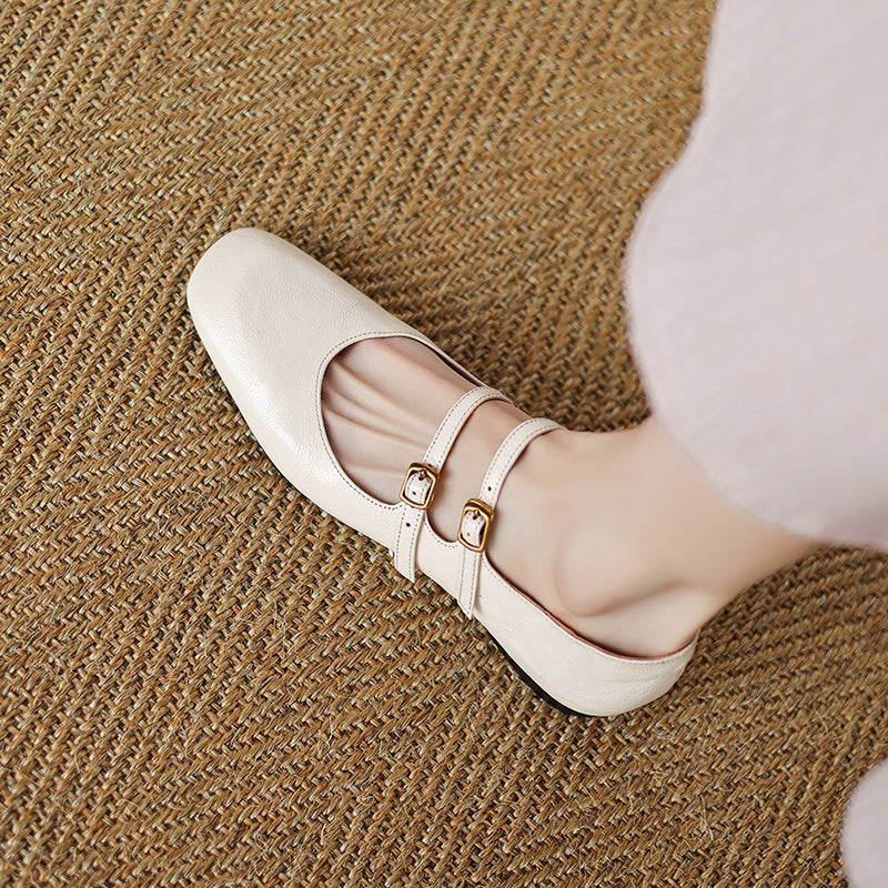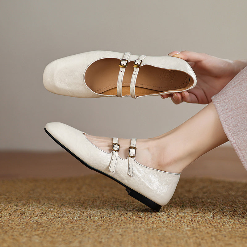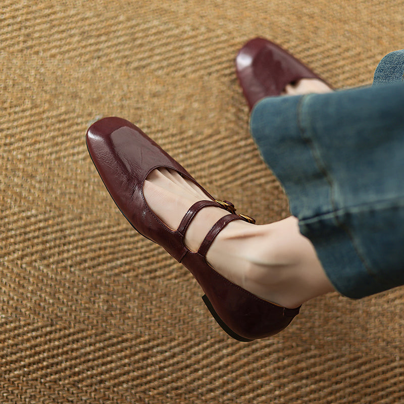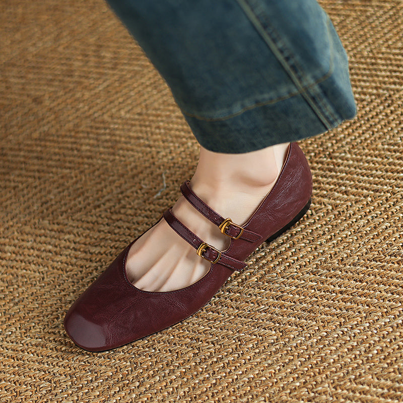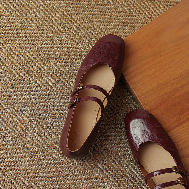Womens Vintage Handmade Double Buckle Ballet Mary Jane Shoes
