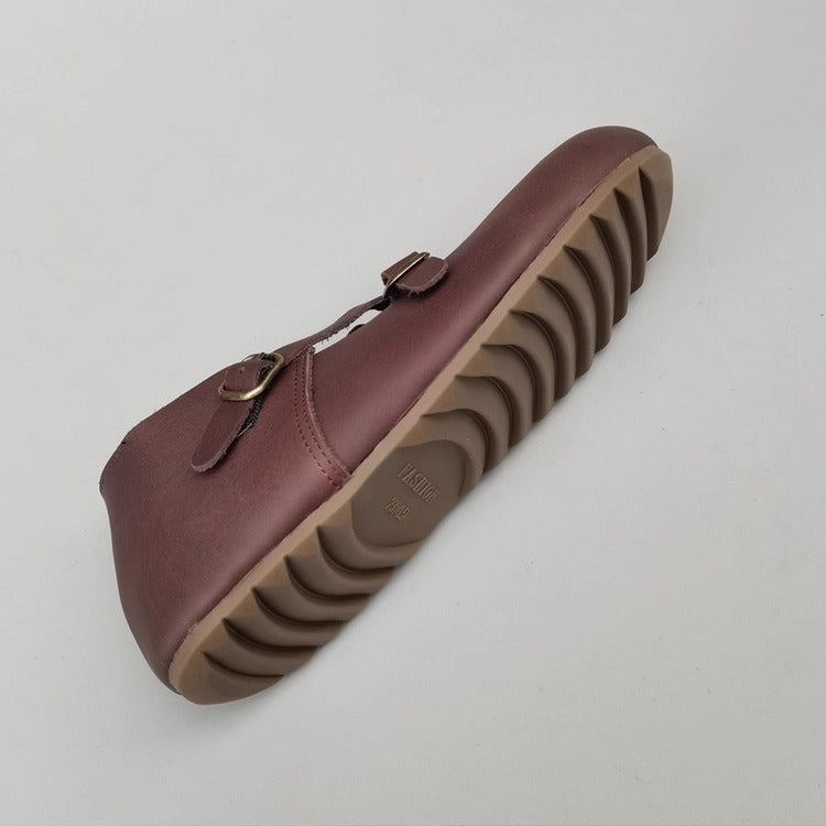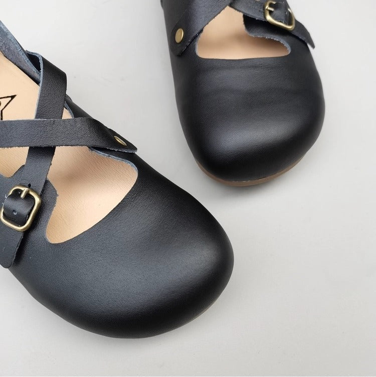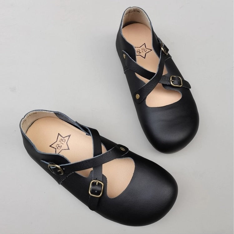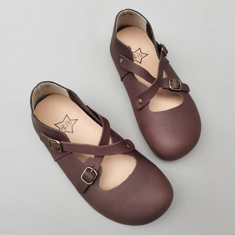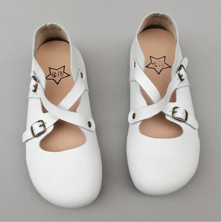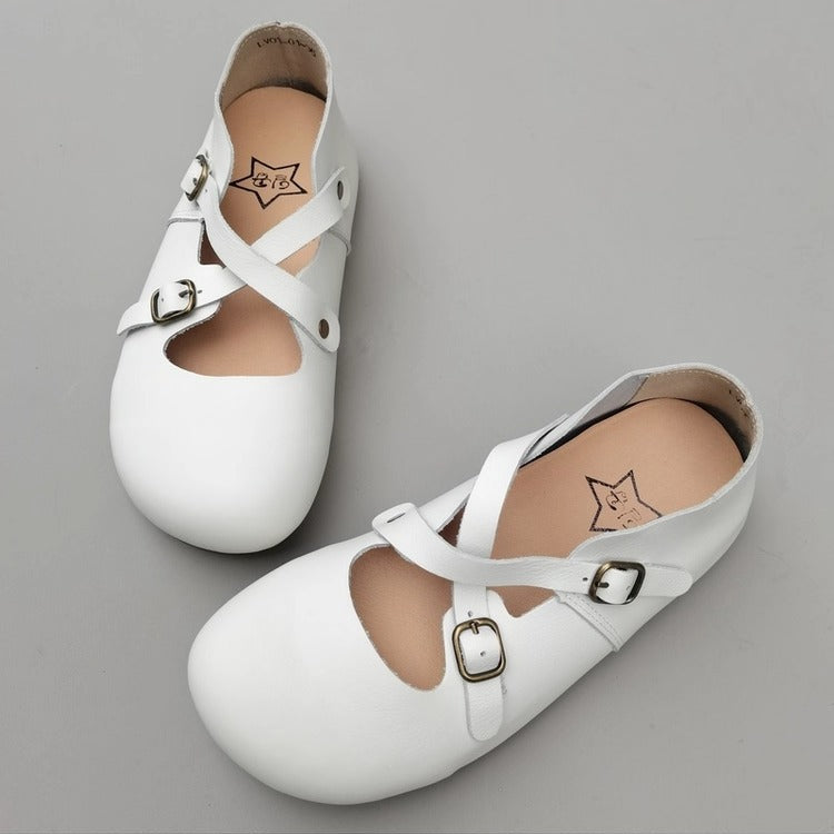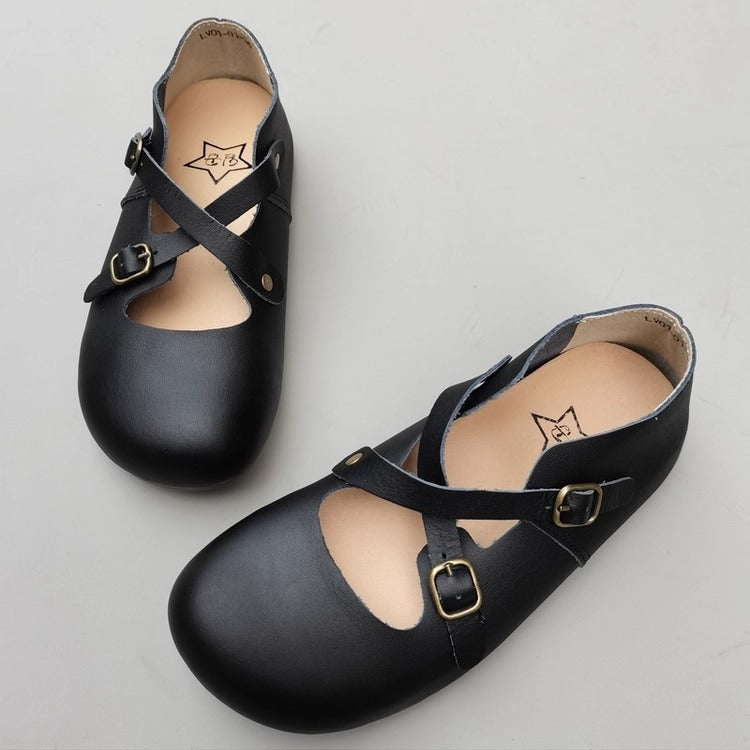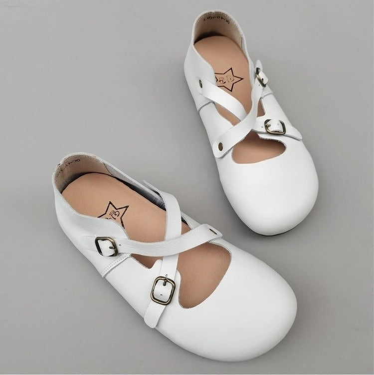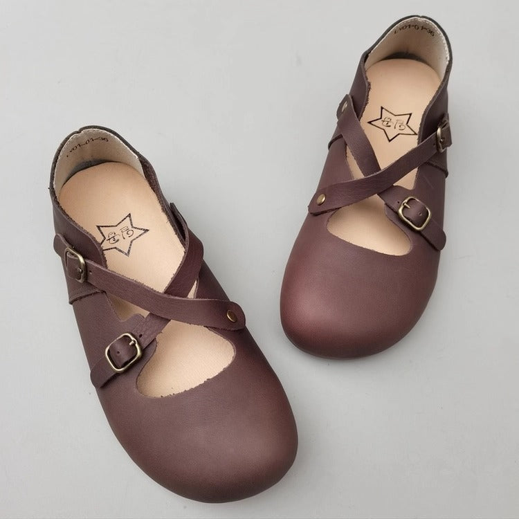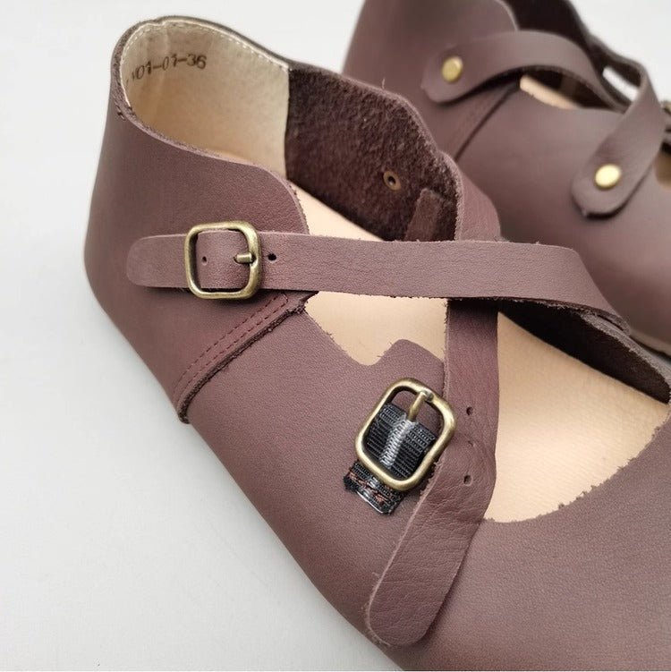 Women's Vintage Handmade Leather Shoes – Cross Strap, Buckle & Soft Sole